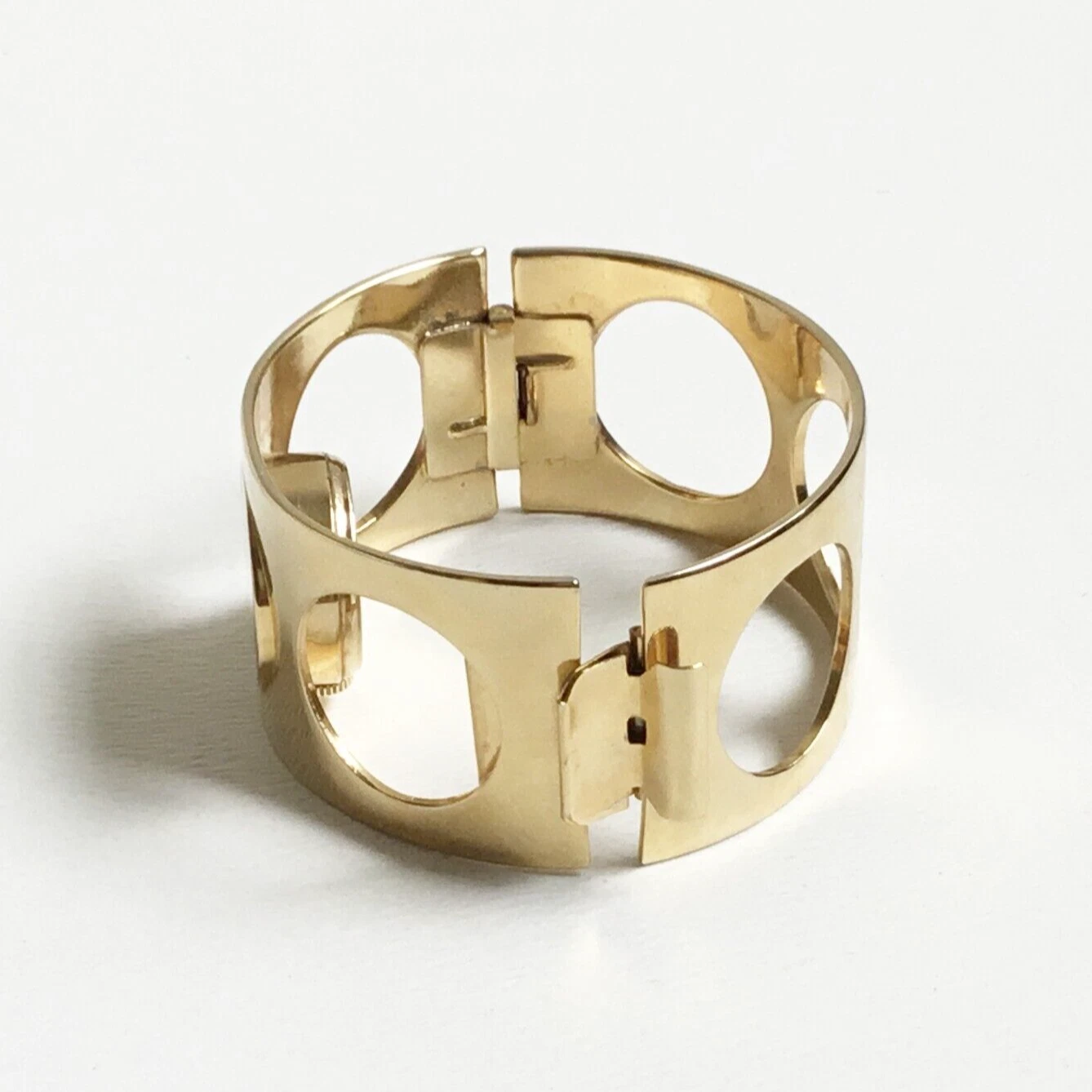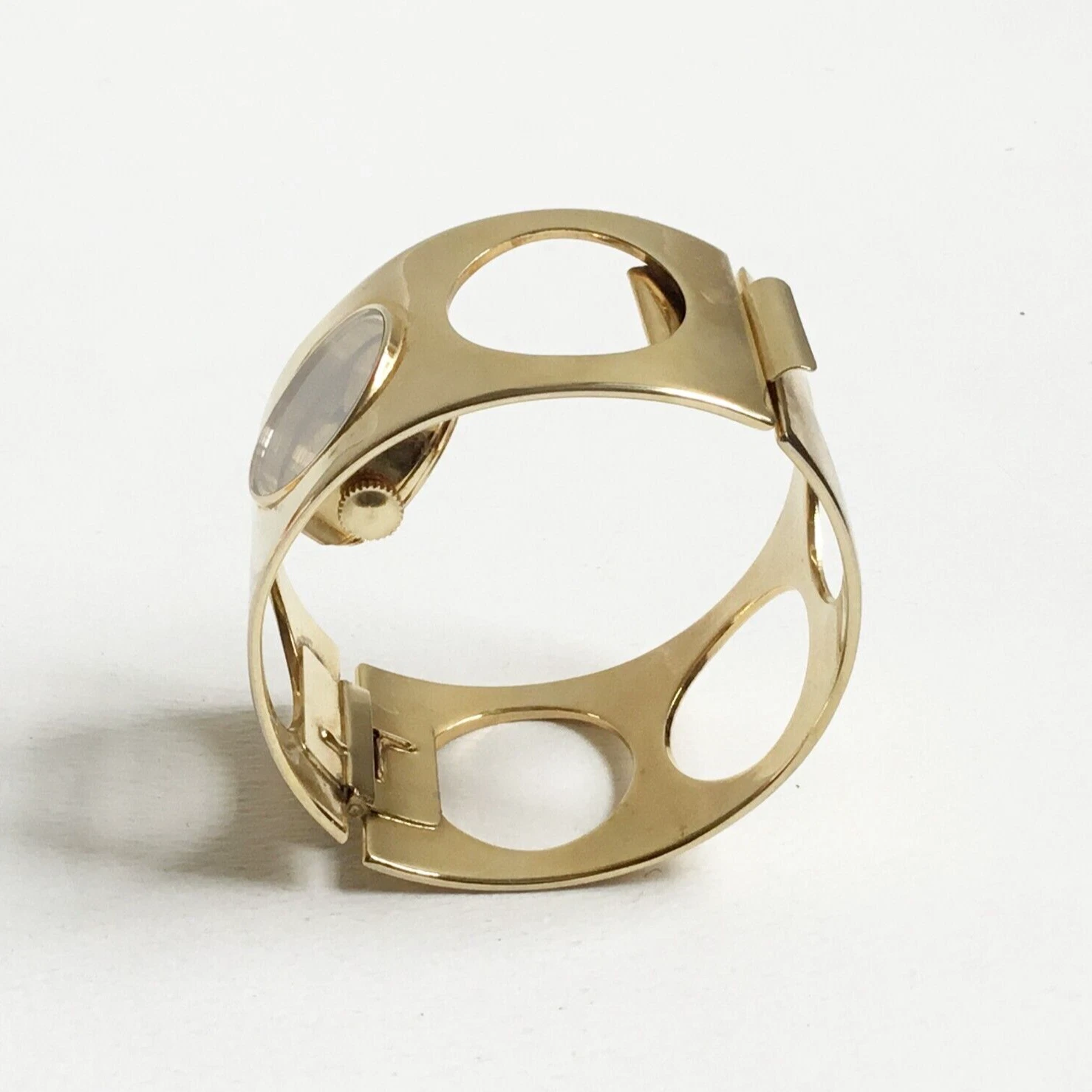 Vintage Marcel Boucher Cutout Hinged Cuff Bracelet Manual Space Age Watch