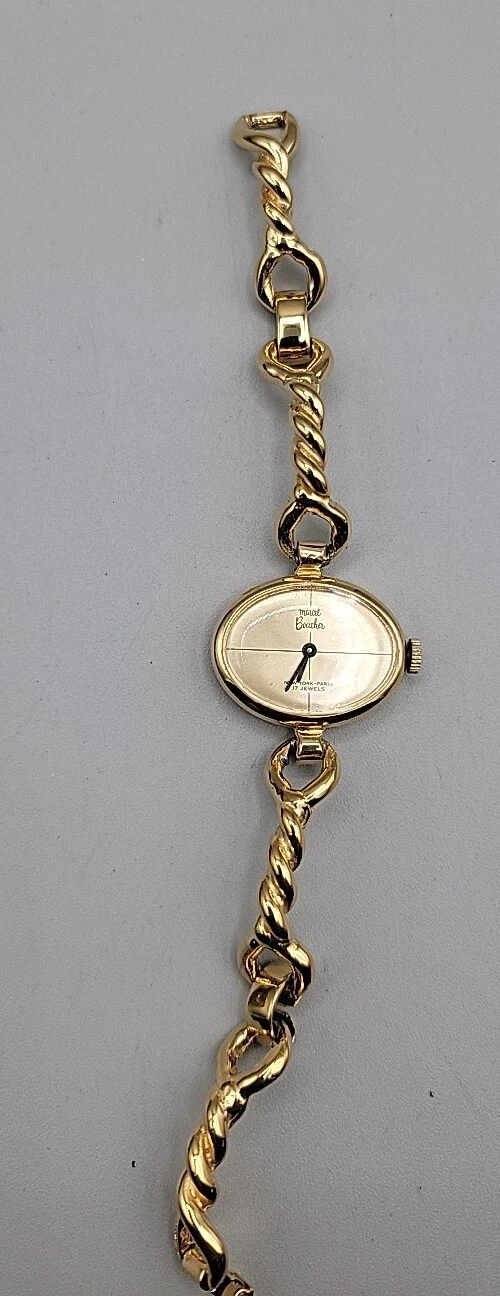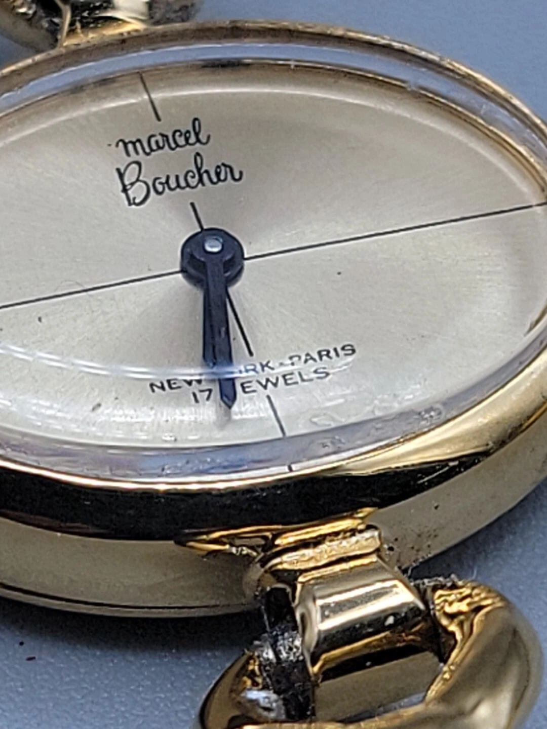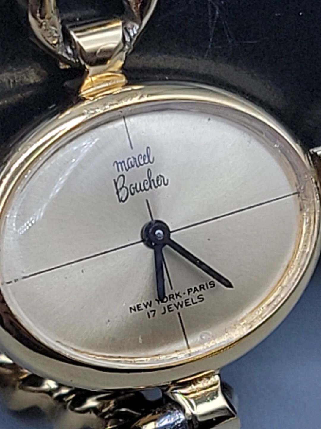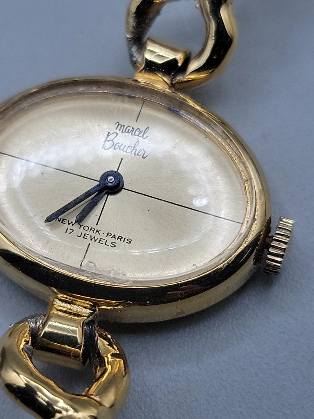 Marcel Boucher Ladies Wind Watch 7" Gold Tone Bracelet Band 35mm Dial Vintage