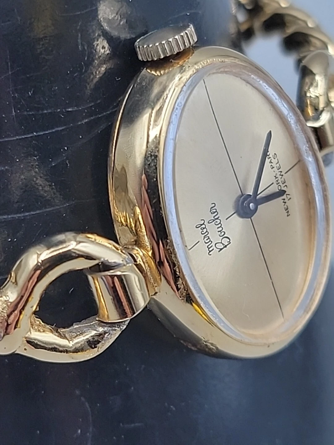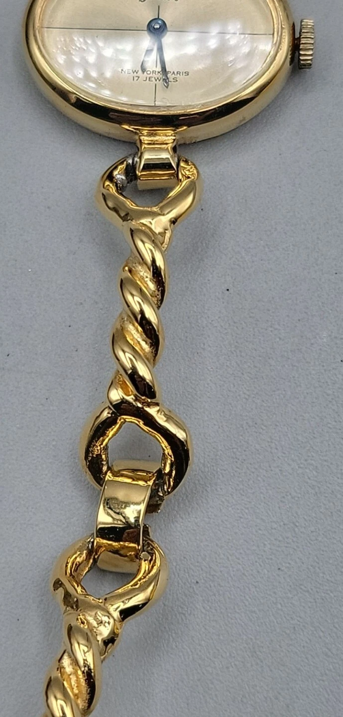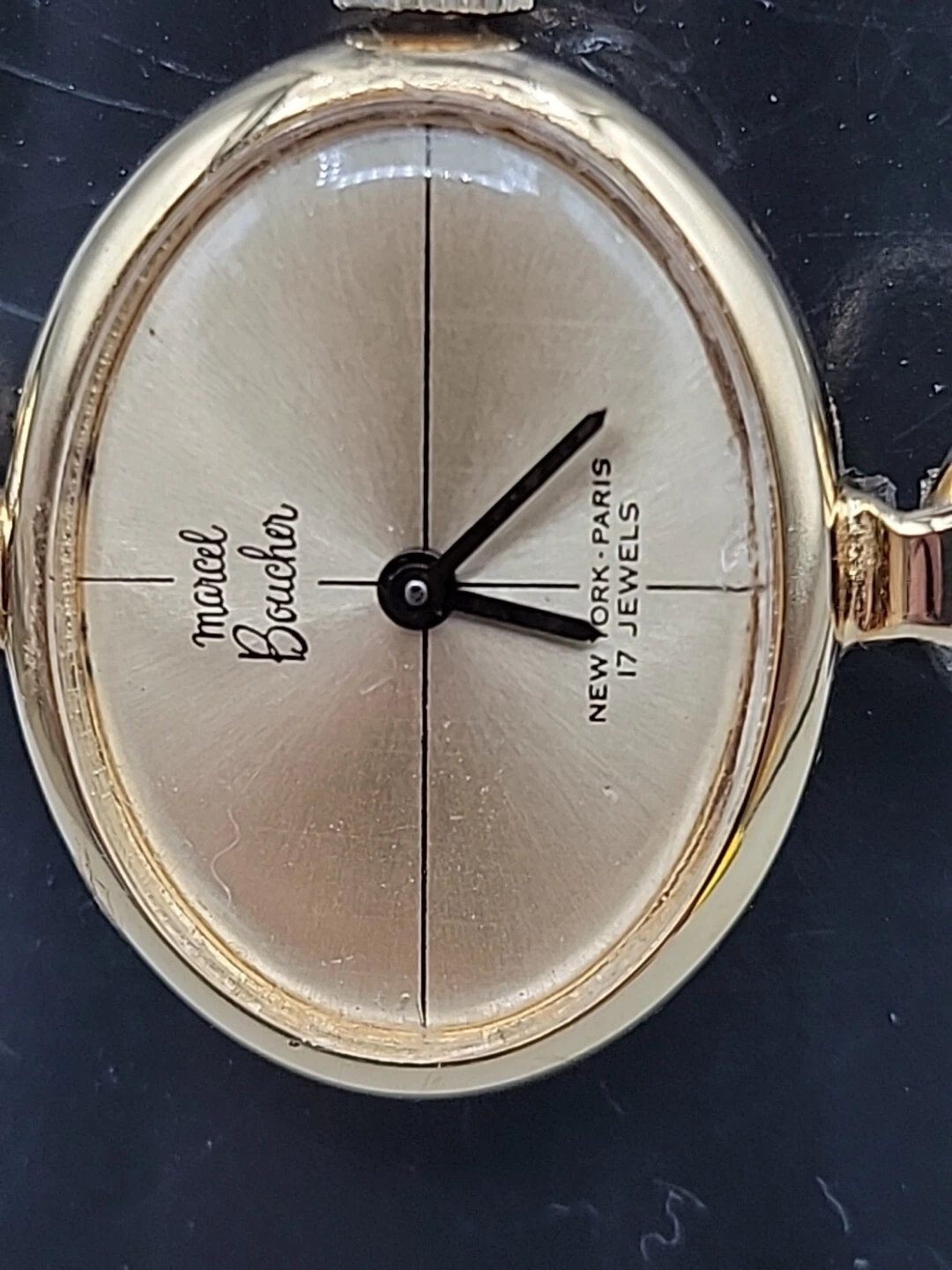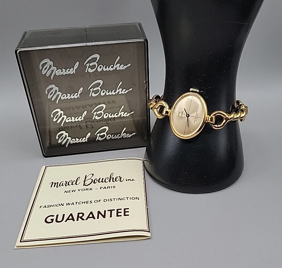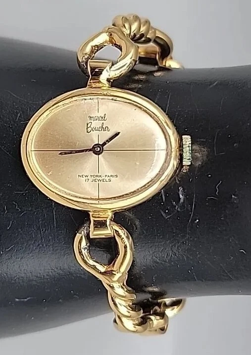 Marcel Boucher Ladies Wind Watch 7" Gold Tone Bracelet Band 35mm Dial Vintage