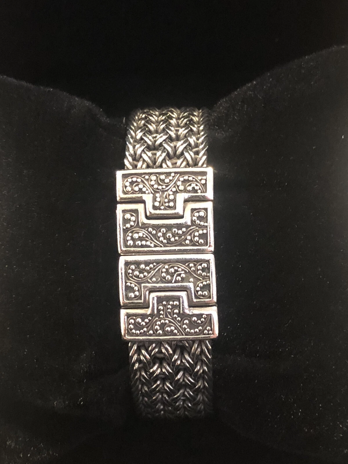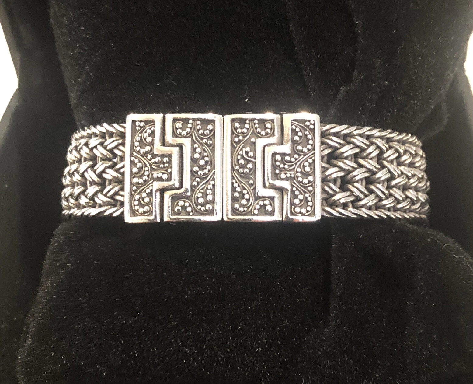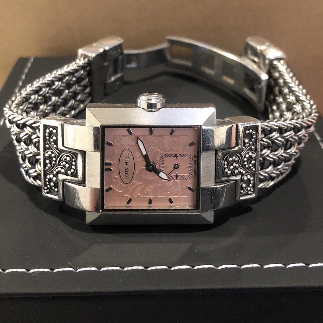 Lois Hill Watch Sterling Silver Thai Flat Weave Bracelet Band Pink Face Watch