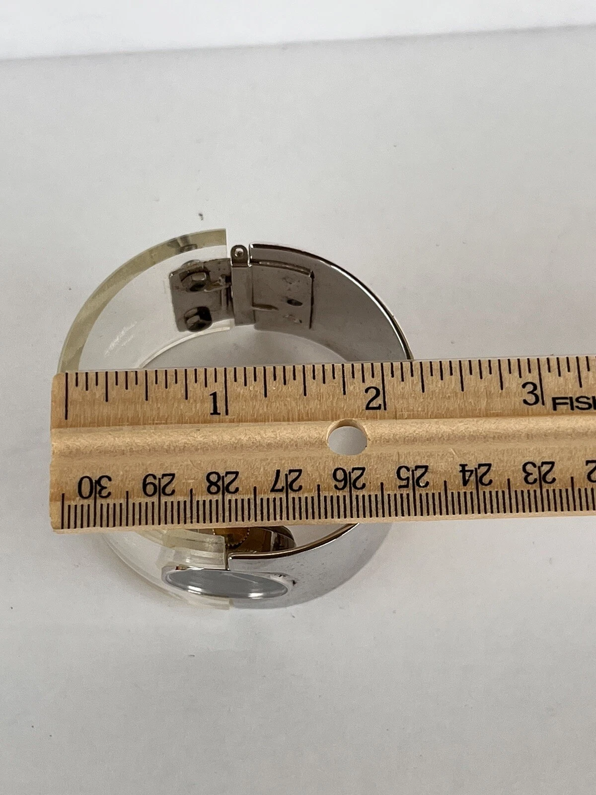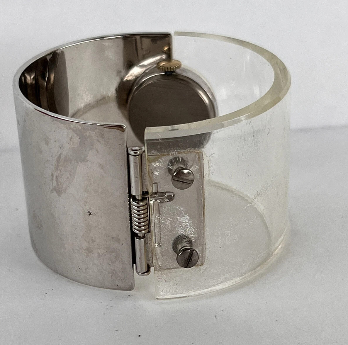 AS IS - MARCEL BOUCHER Silver & Clear Lucite Cuff Watch Iconic 70s Fashion