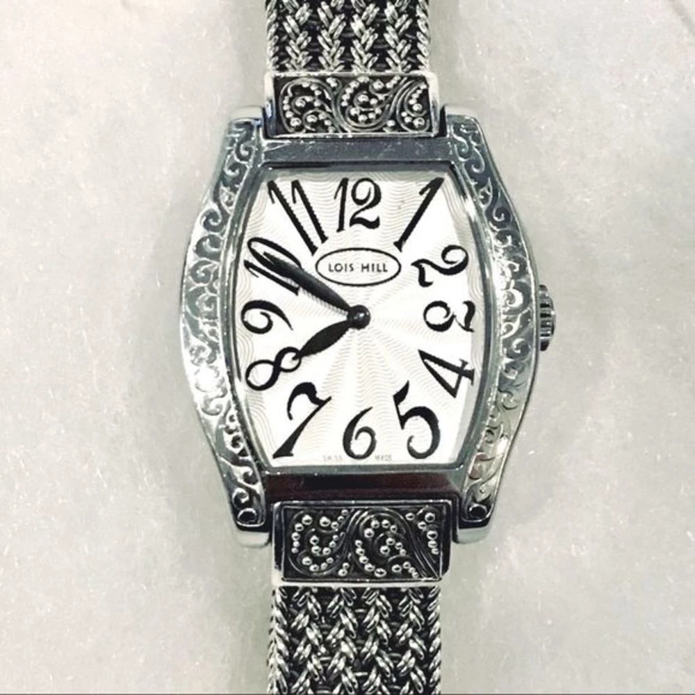 LOIS HILL STERLING SILVER SWISS TONNEAU WATCH RARE