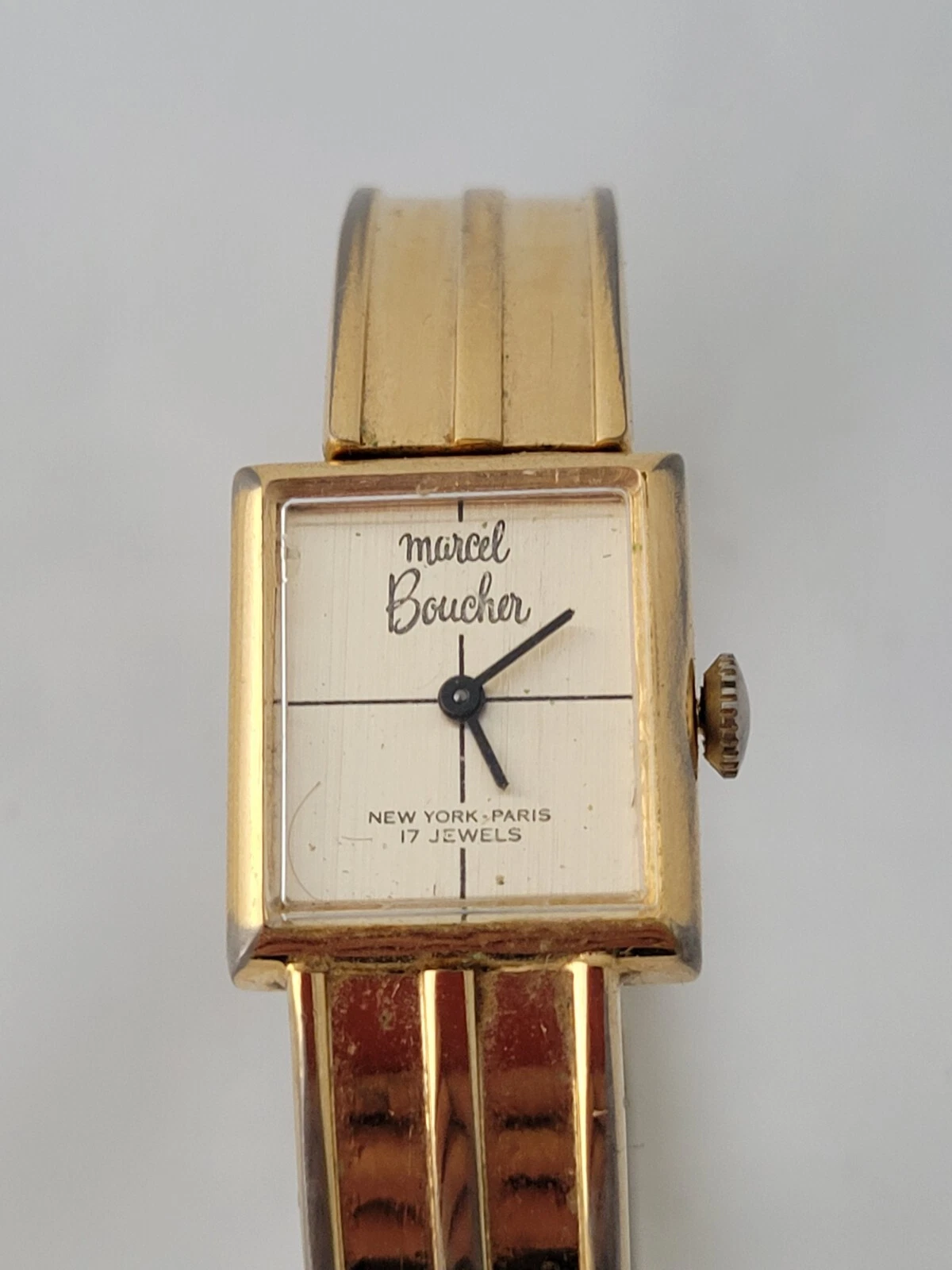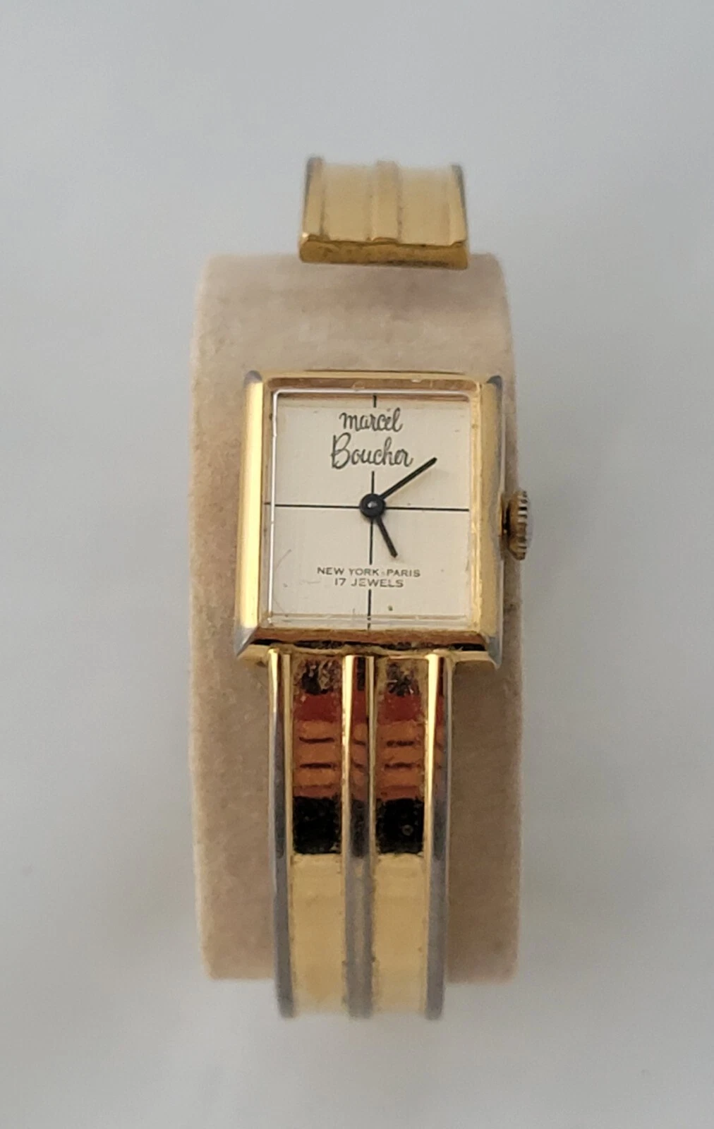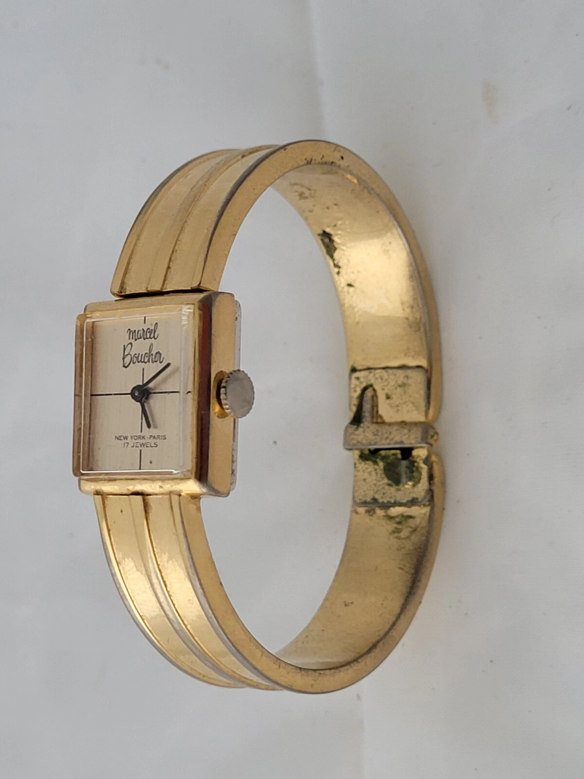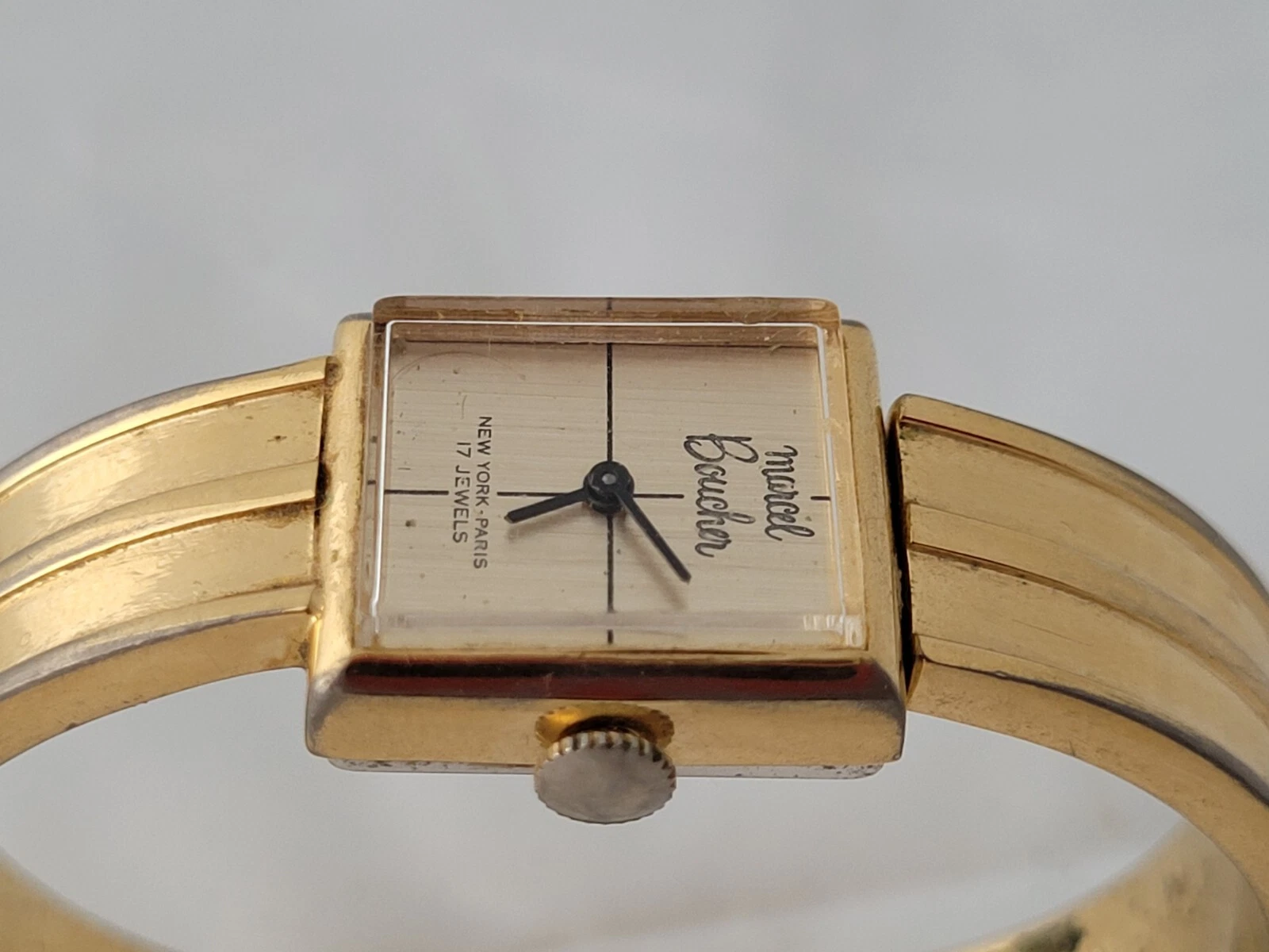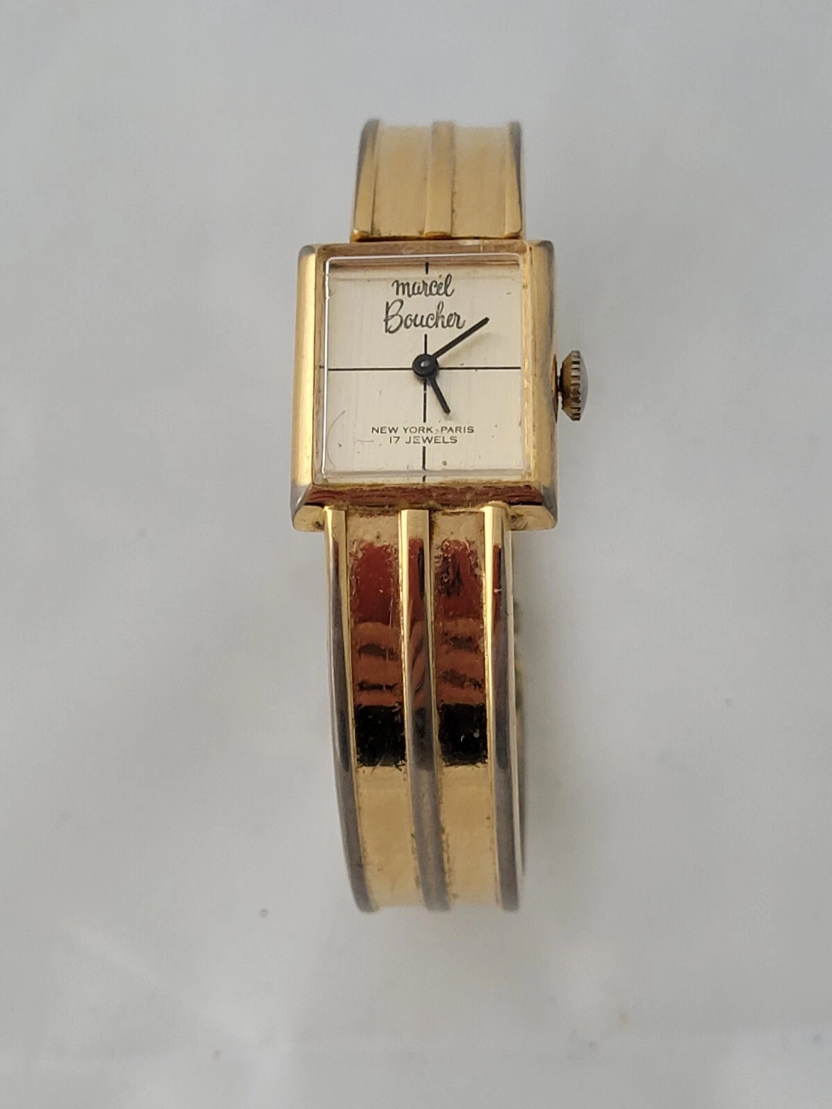 Vintage Modern 1970's Marcel Boucher 17 Jewels Windup Spring Cuff Ladies Watch