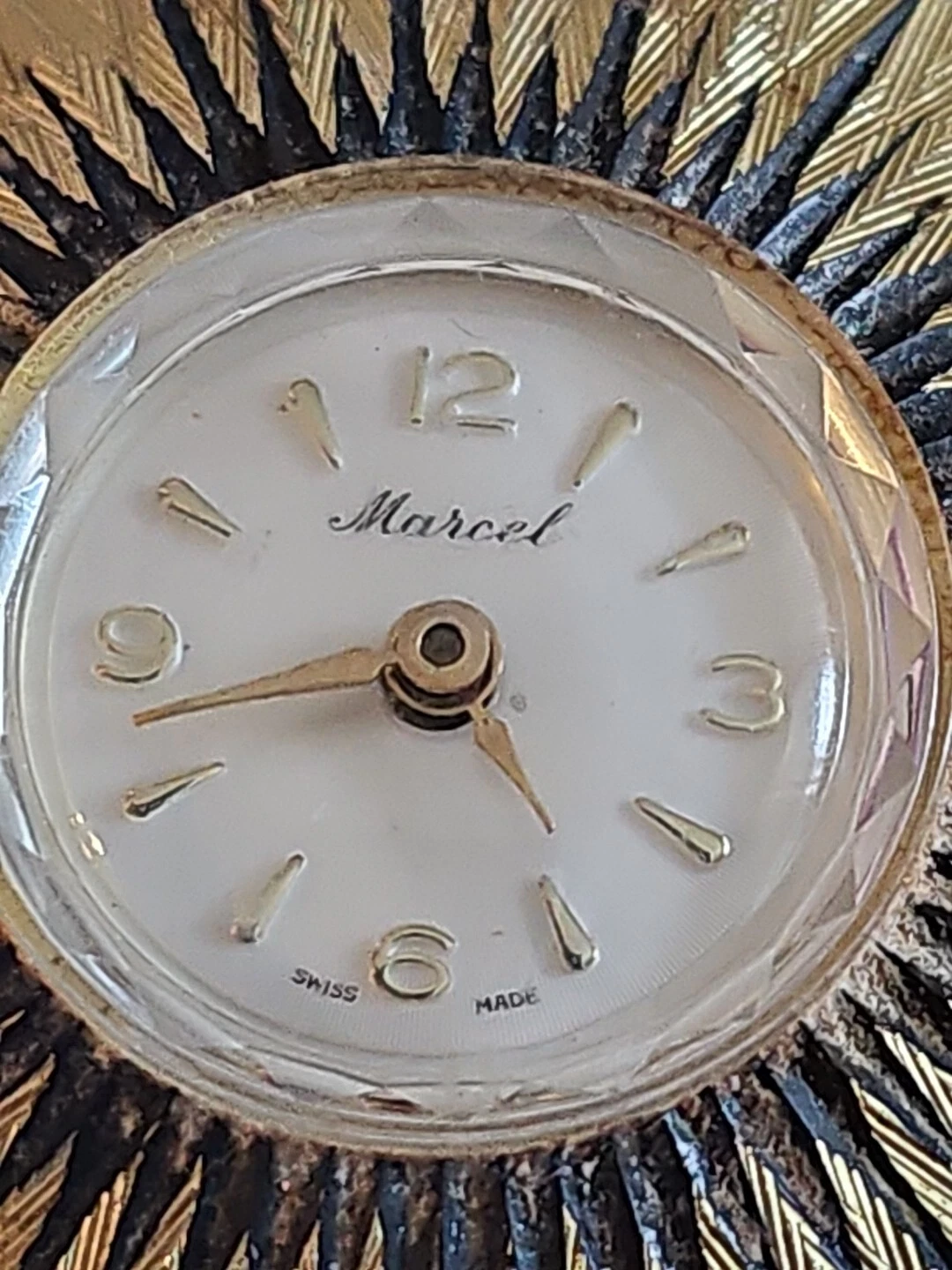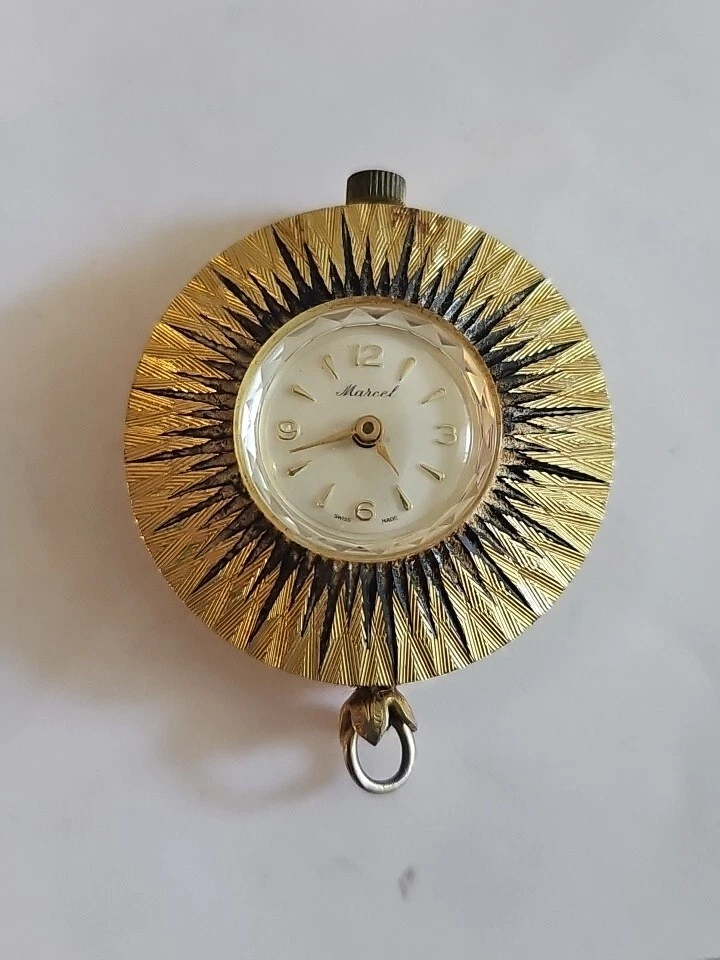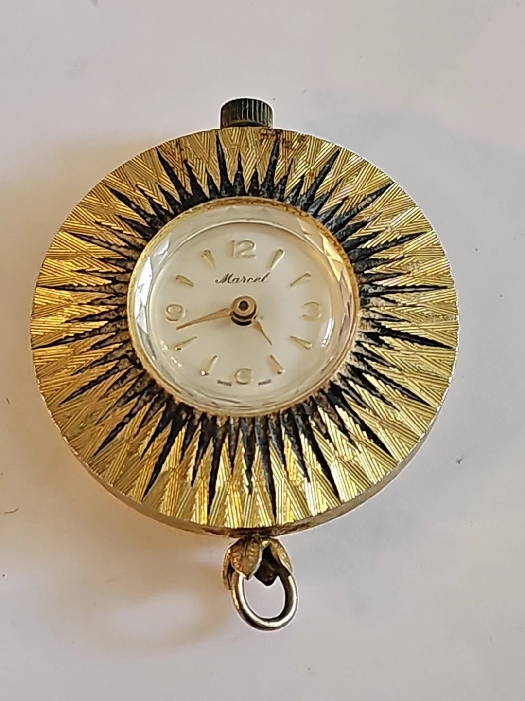 Vintage Marcel SWISS Womens Disk Gold Tone Pendant Wind Up Mechanical Watch 8661