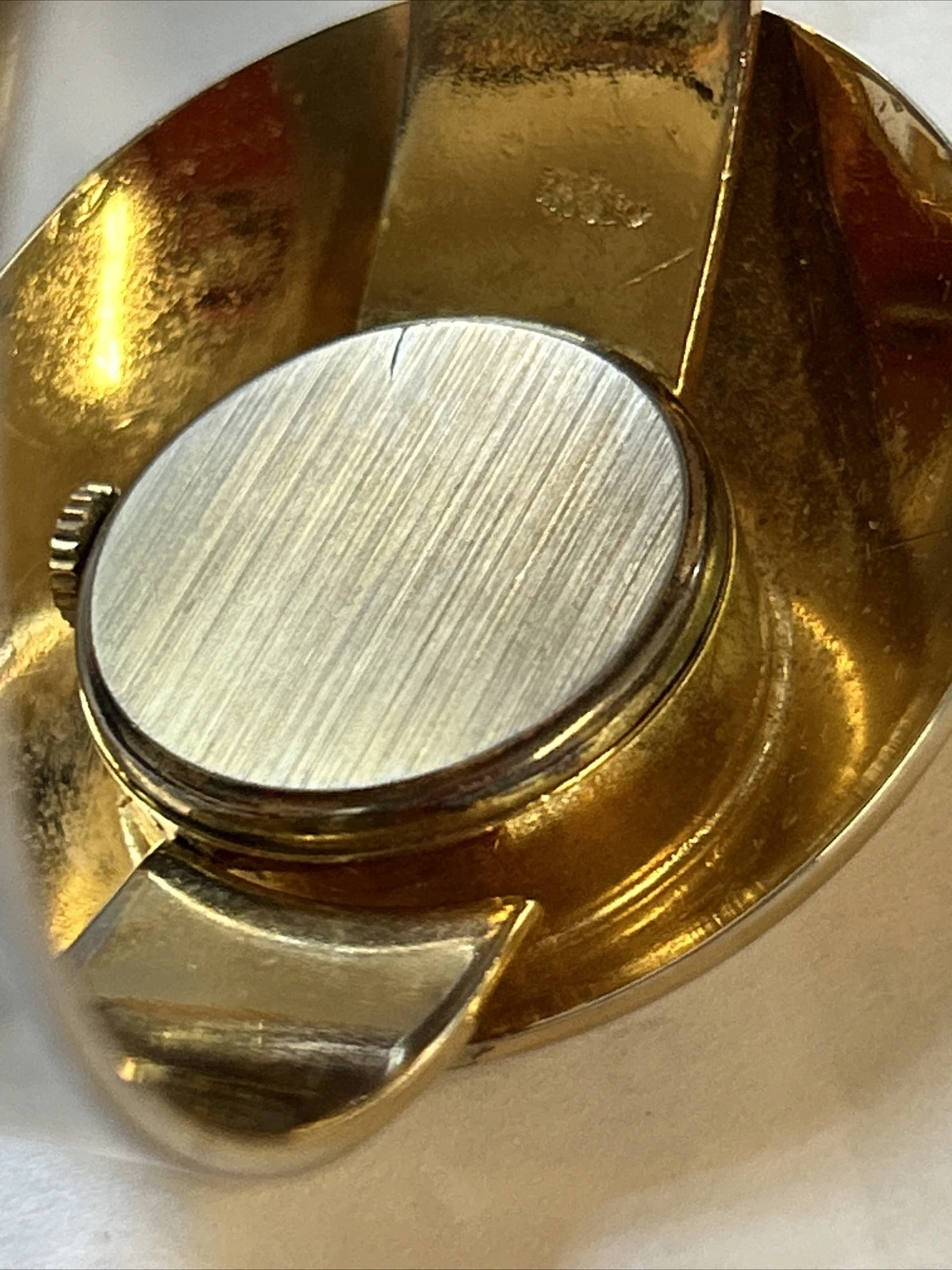 Vtg MARCEL BOUCHER NY Gold CUFF Bracelet  Watch LARGE 17 Jewel Modernist