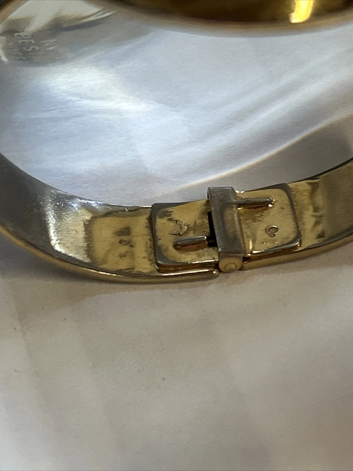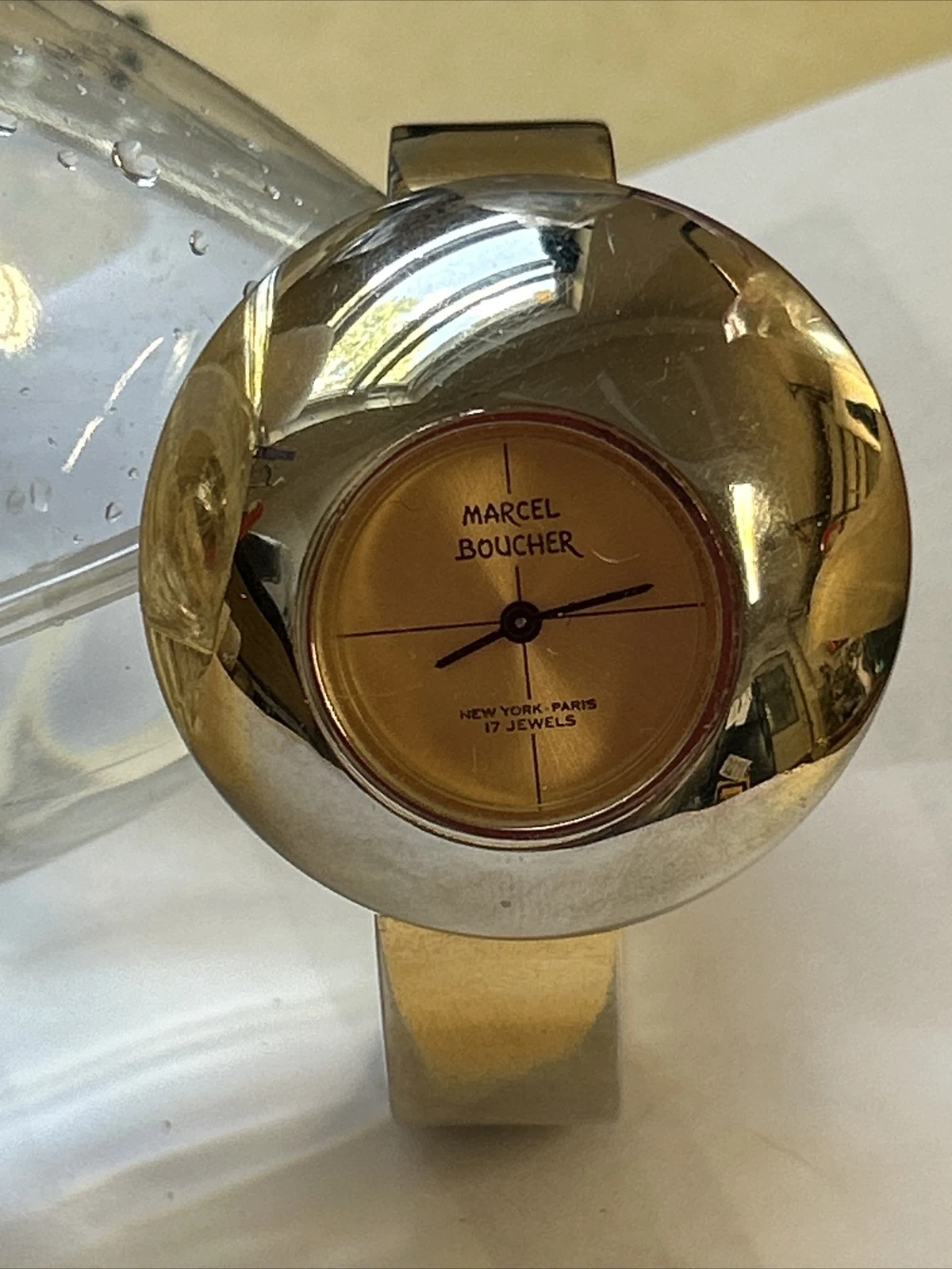 Vtg MARCEL BOUCHER NY Gold CUFF Bracelet Watch LARGE 17 Jewel Modernist