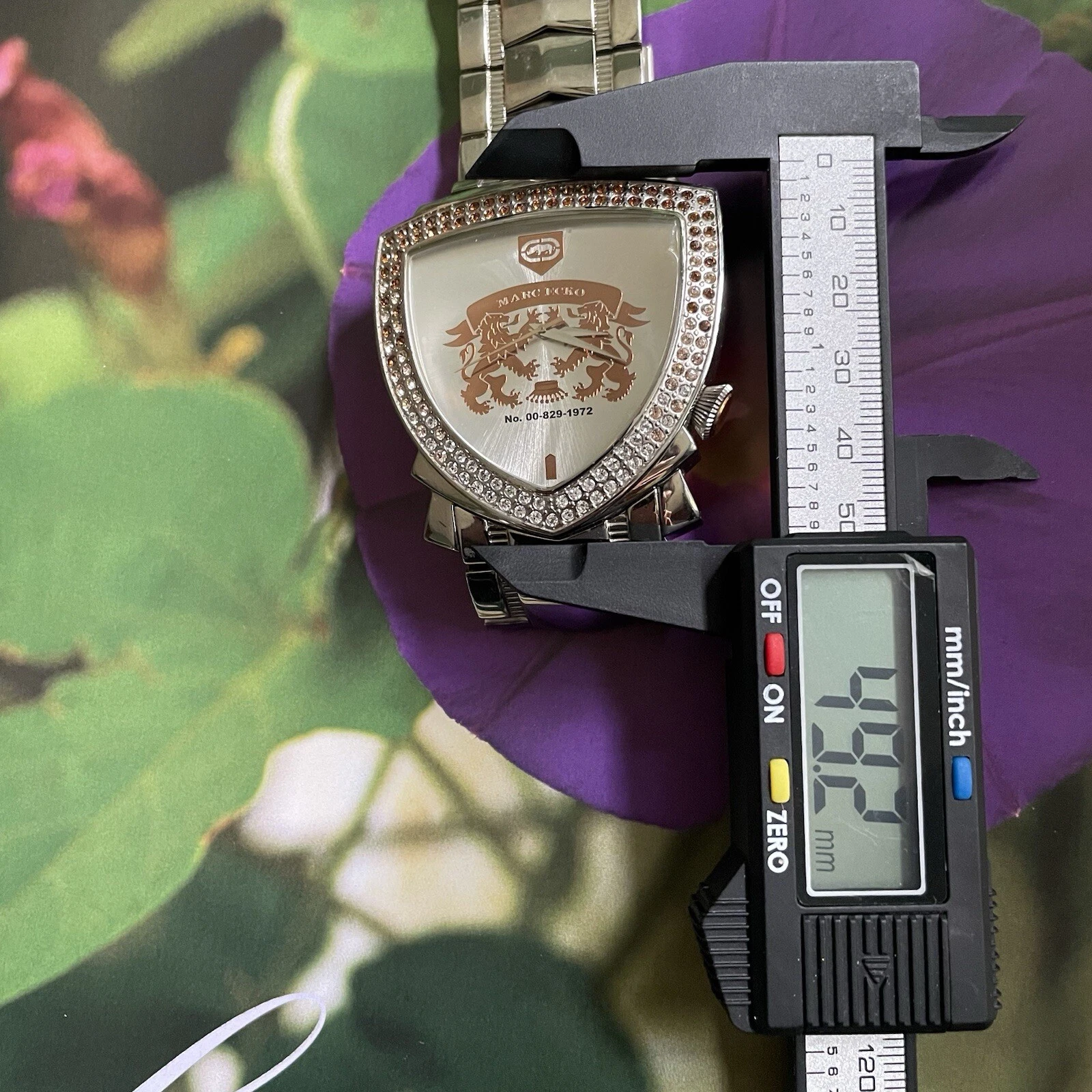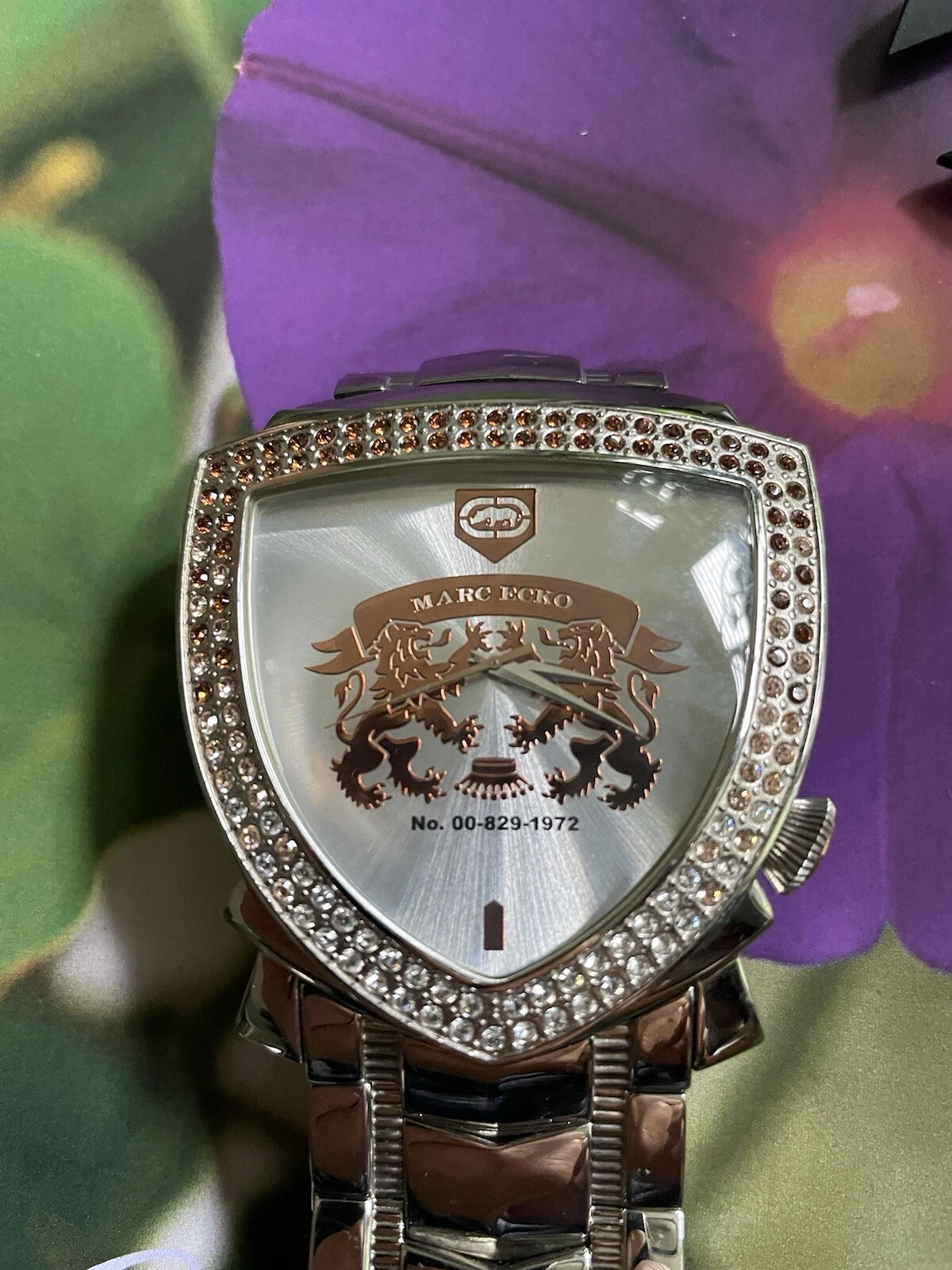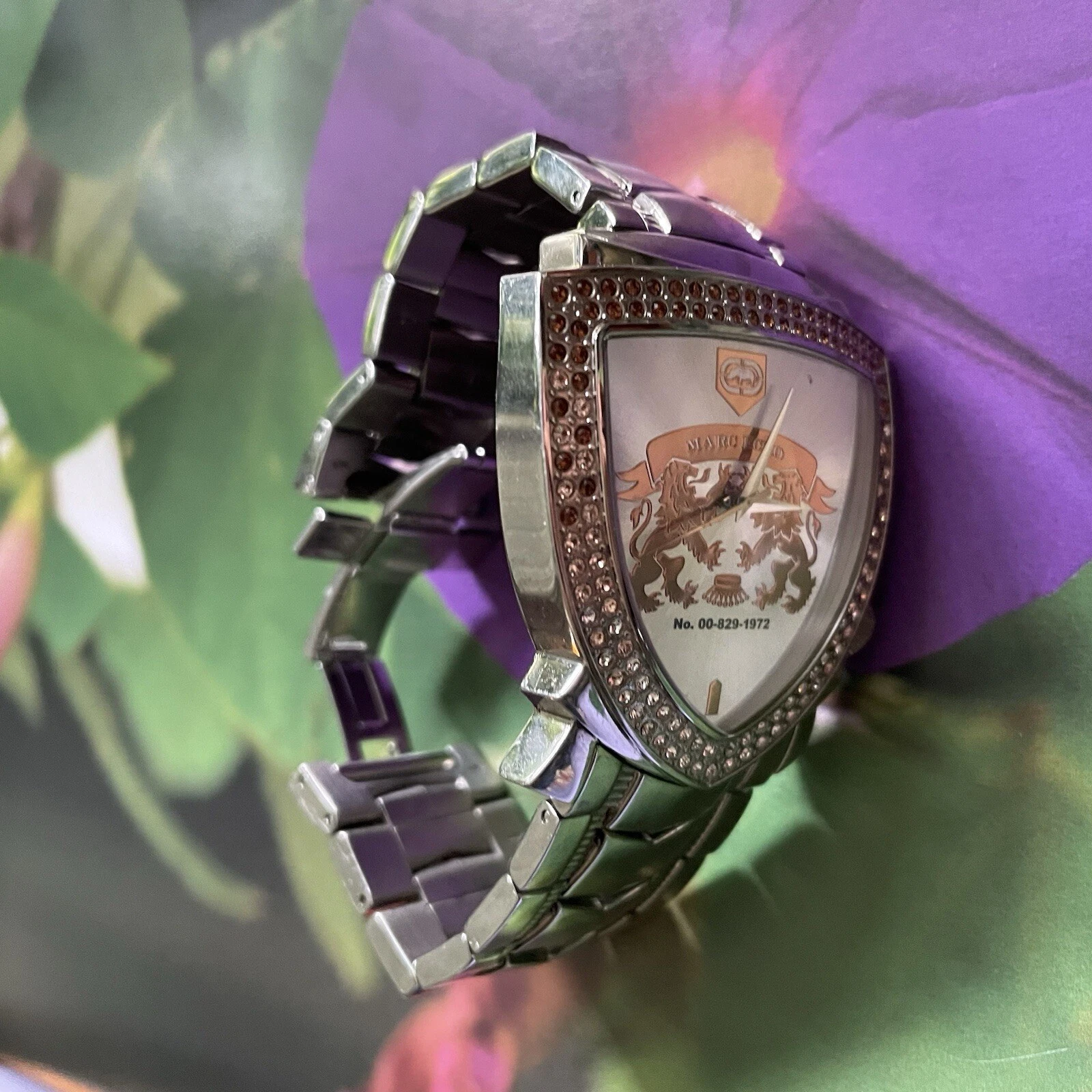 Vintage Marc Ecko Heavy Triangle Crystal Crest Watch E12501G1 Working 6.7”