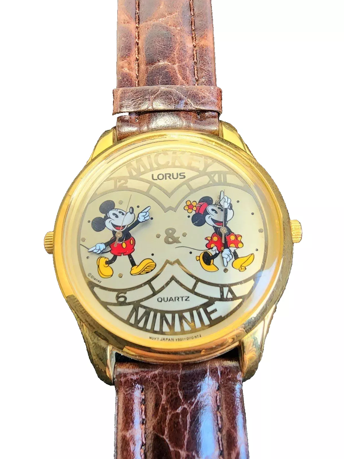 RARE Vintage Lorus Disney Mickey & Minnie Mouse Dual Time Zone Wristwatch