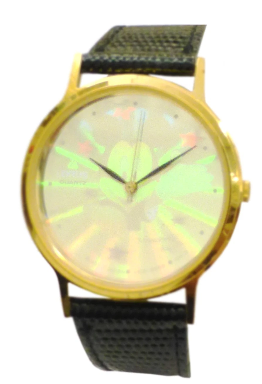 Collectible Lorus Mickey Hologram Dial Watch With Black Leather Band