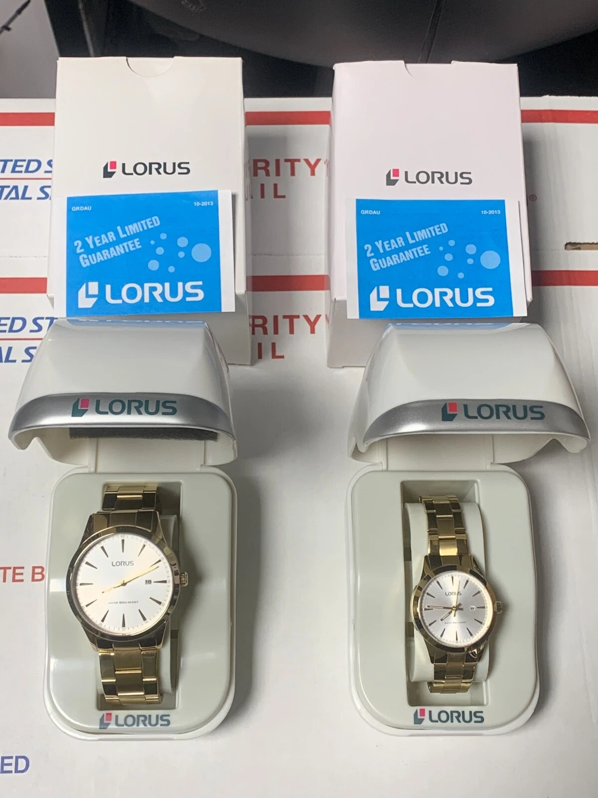 Lorus Watch Women and Men bundle Day Date gold NEW old stock New Batteries inc