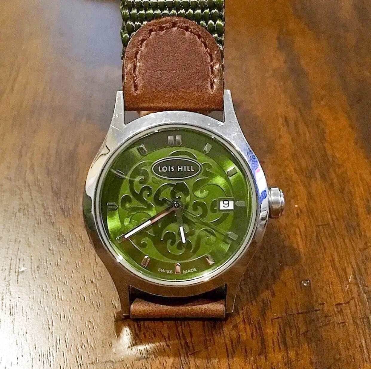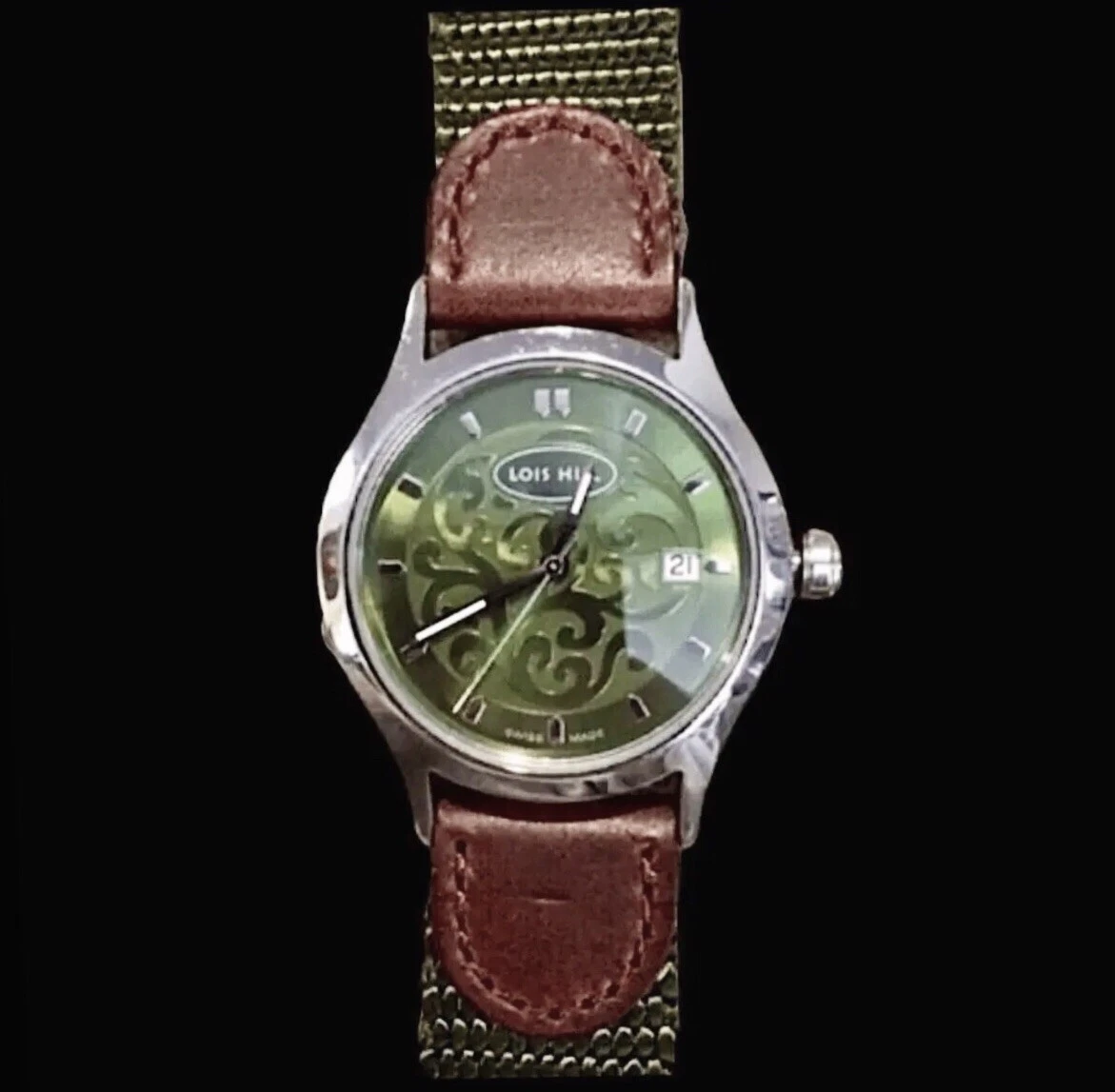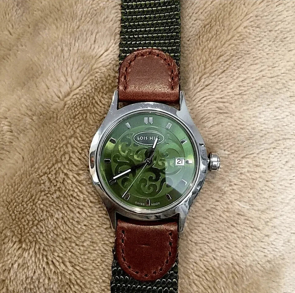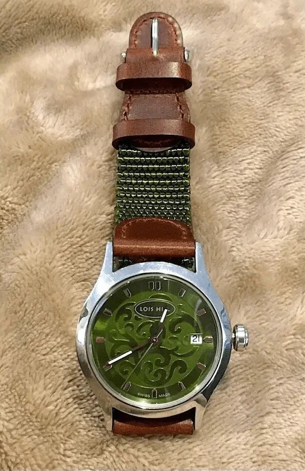LOIS HILL Round Green Watch Leather Band RARE UNISEX