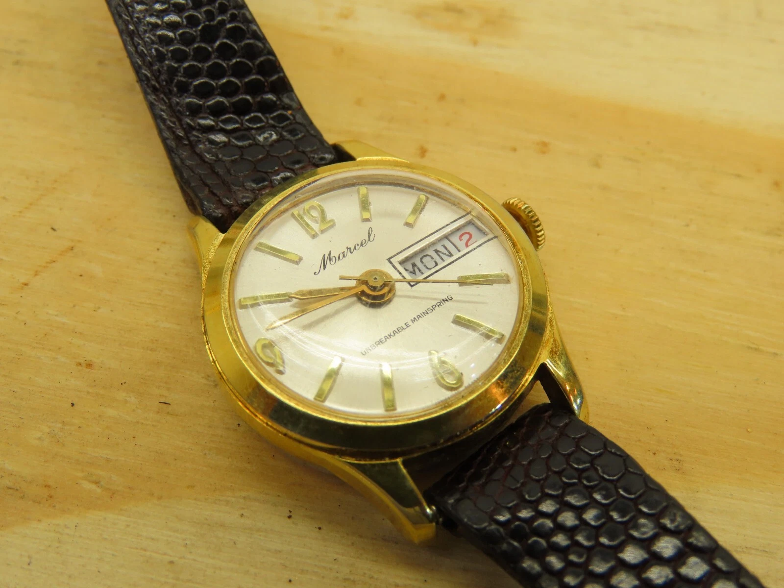 Vintage Marcel Calendar Wristwatch Swiss Genuine Lizard Strap