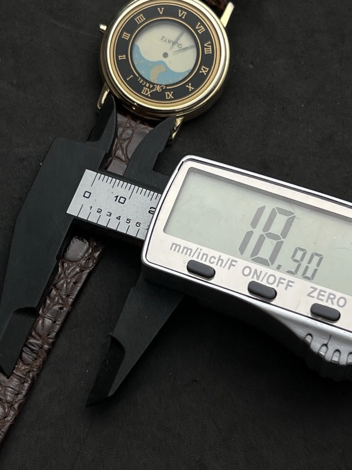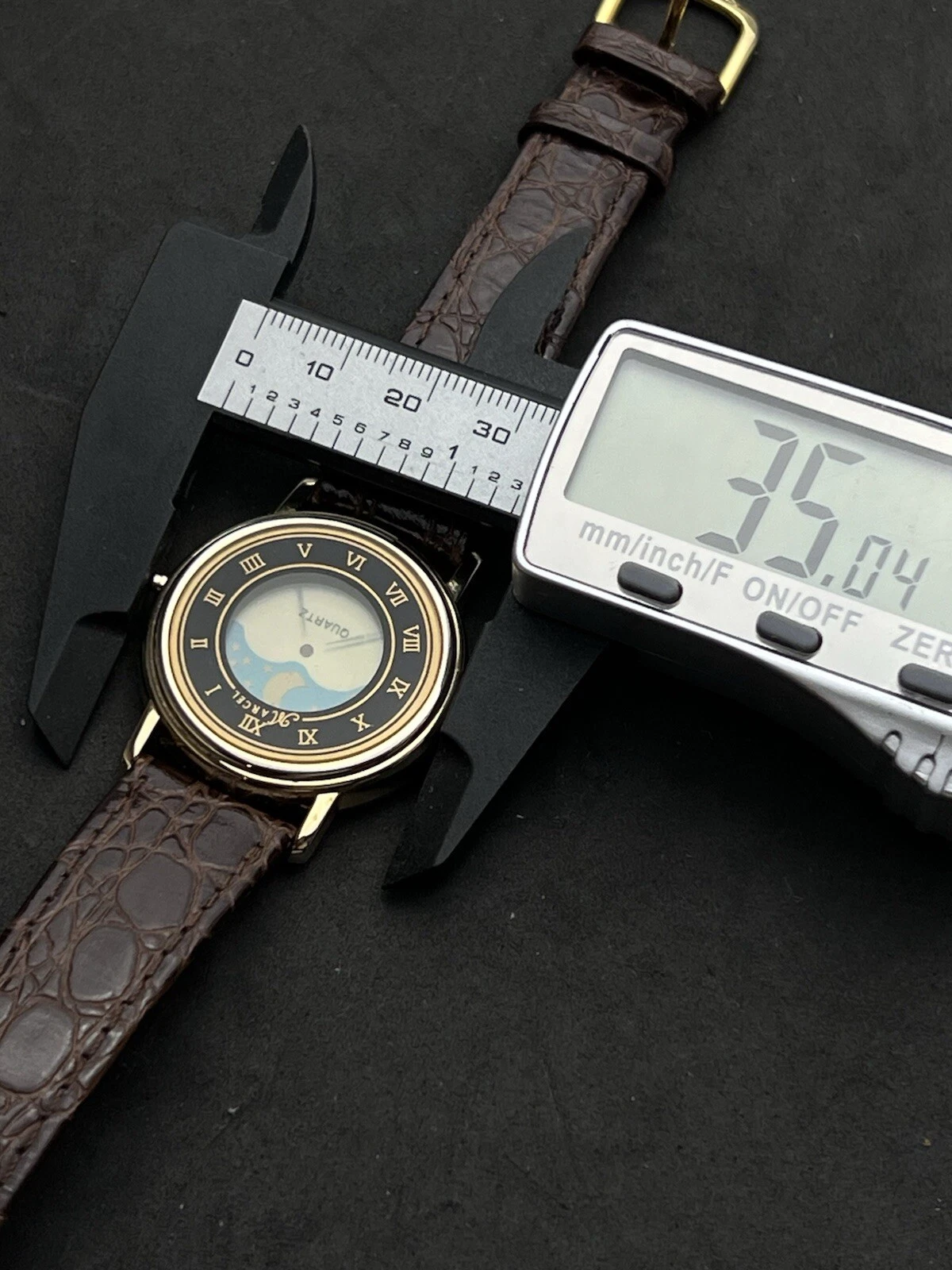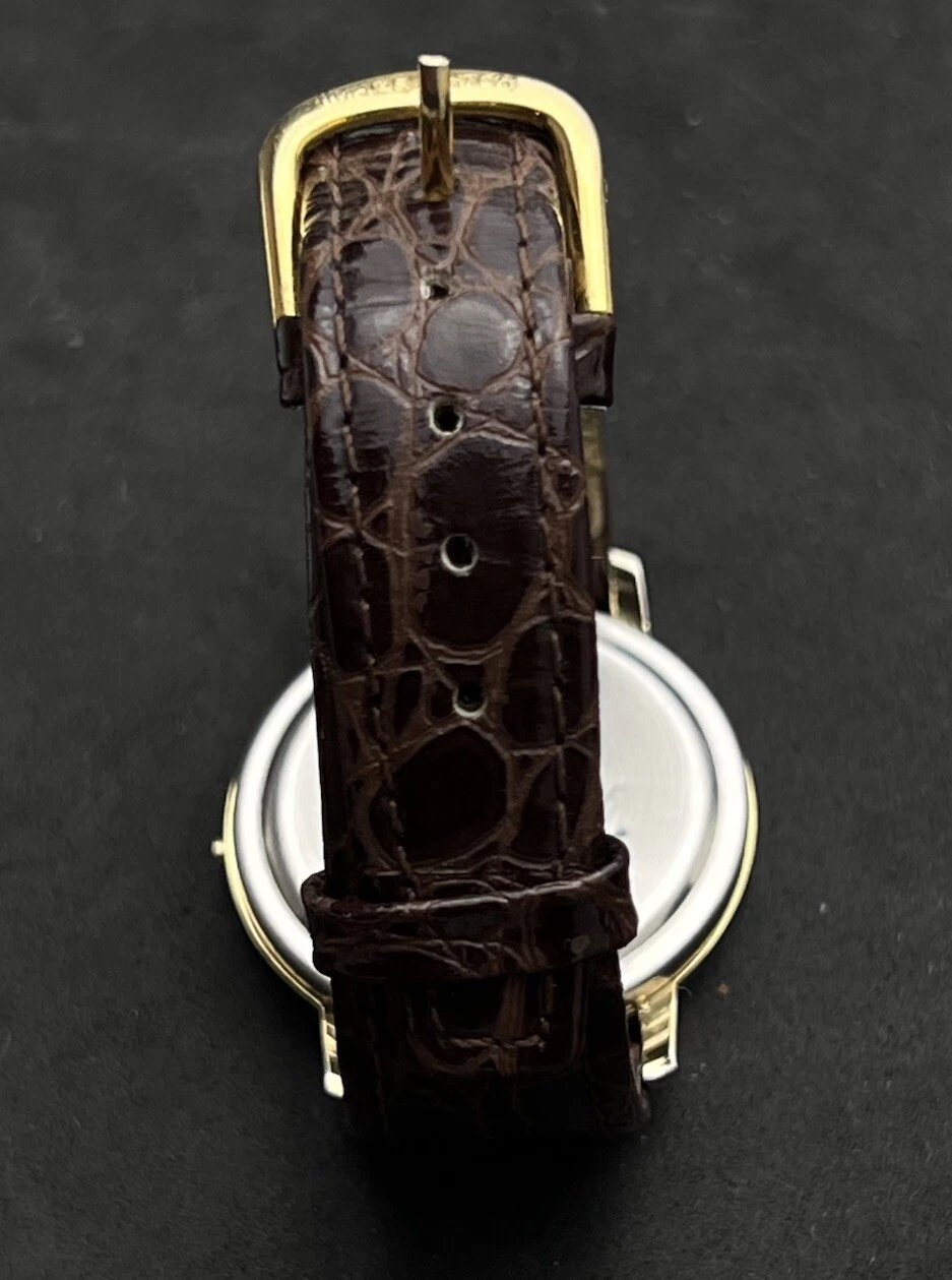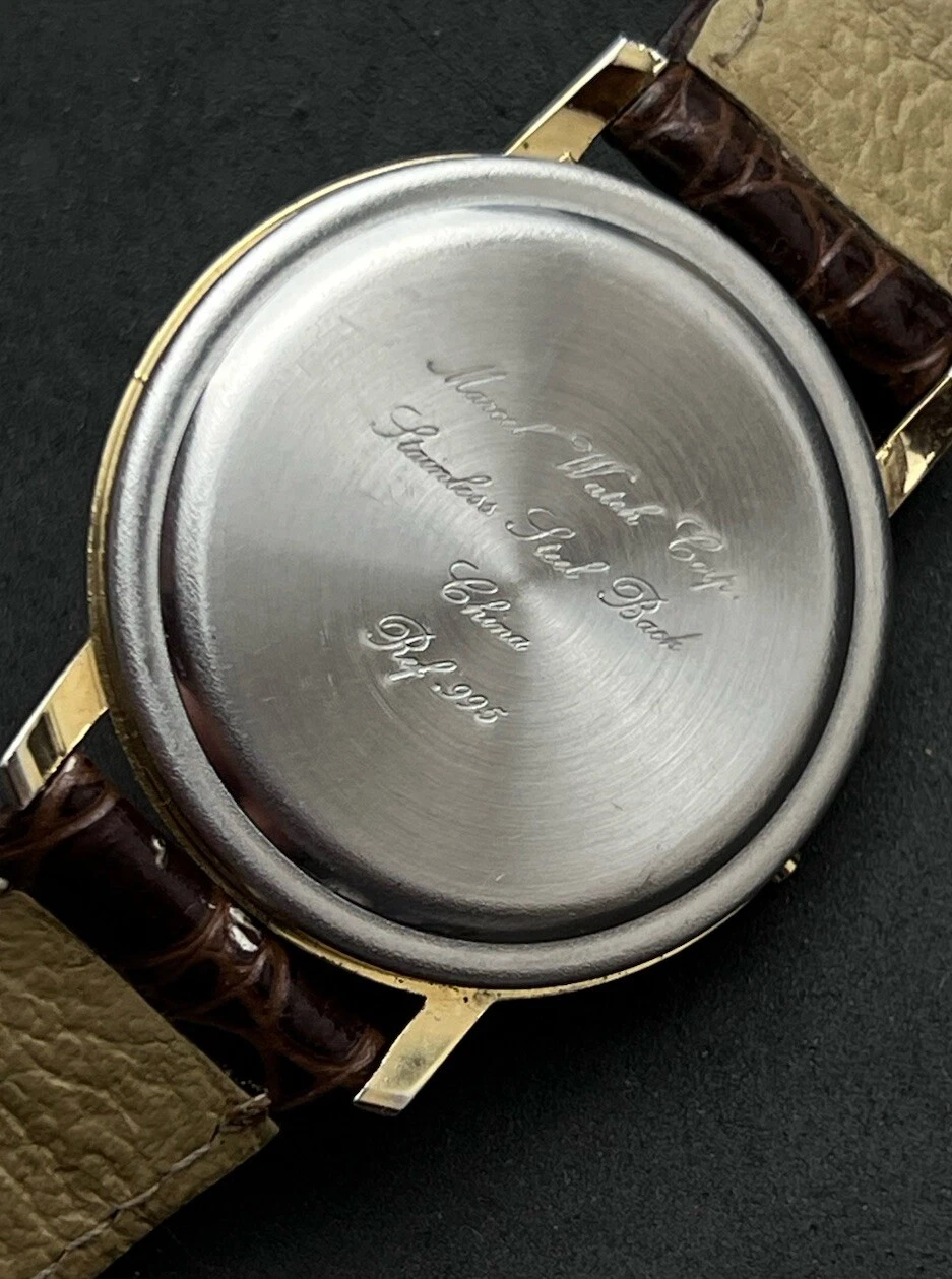 Vintage New MARCEL Digital Hands Men’s 36mm Quartz Watch Gold Case Brown Leather