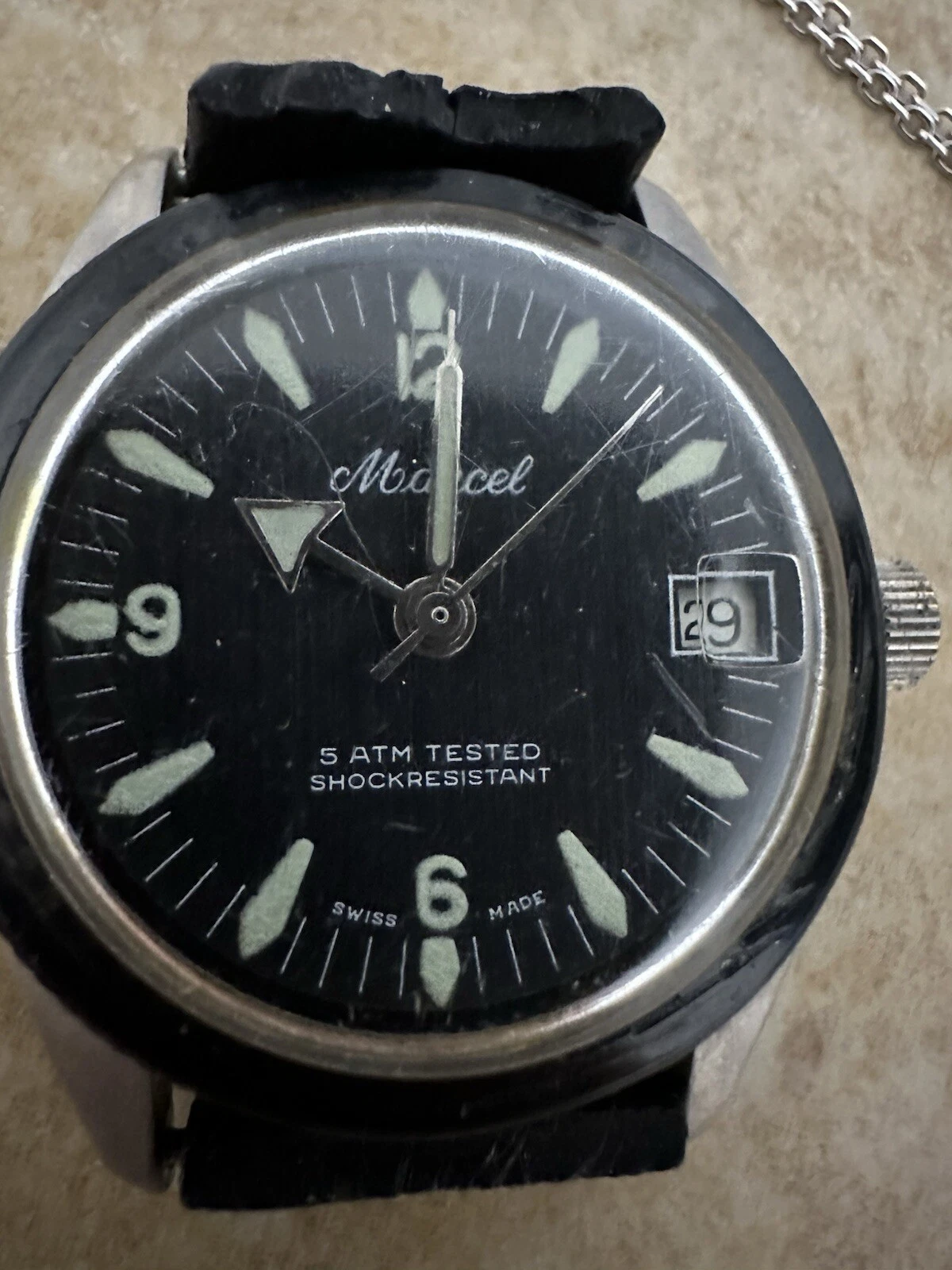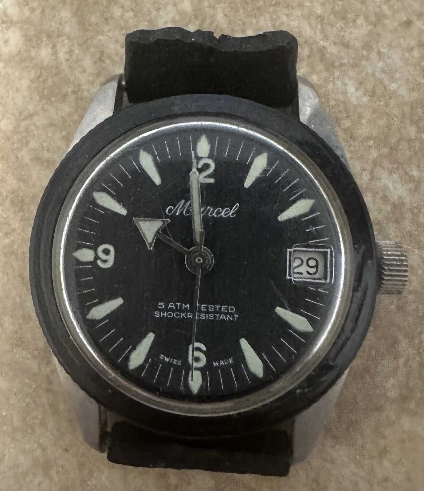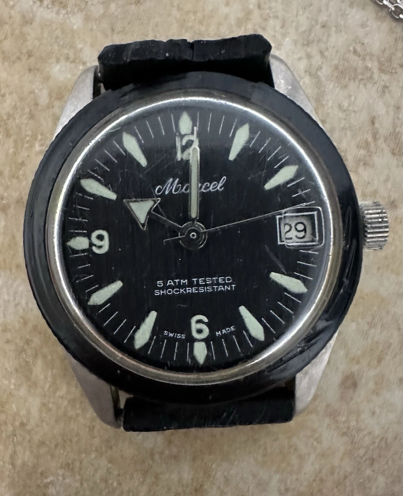 VINTAGE MARCEL SWISS MECHANICAL MENS DIVERS WATCH DATE FUNCTION~ Needs Service
