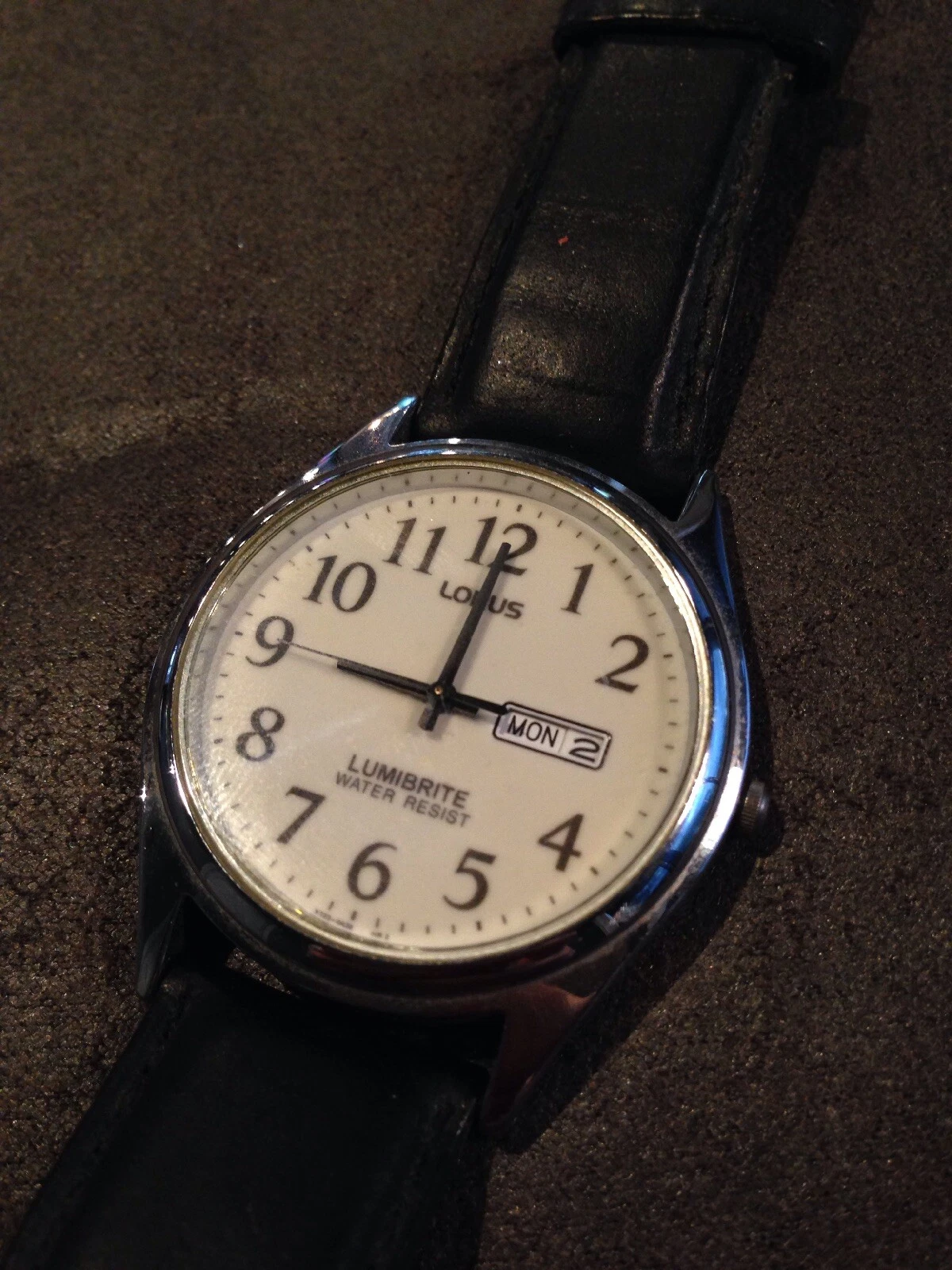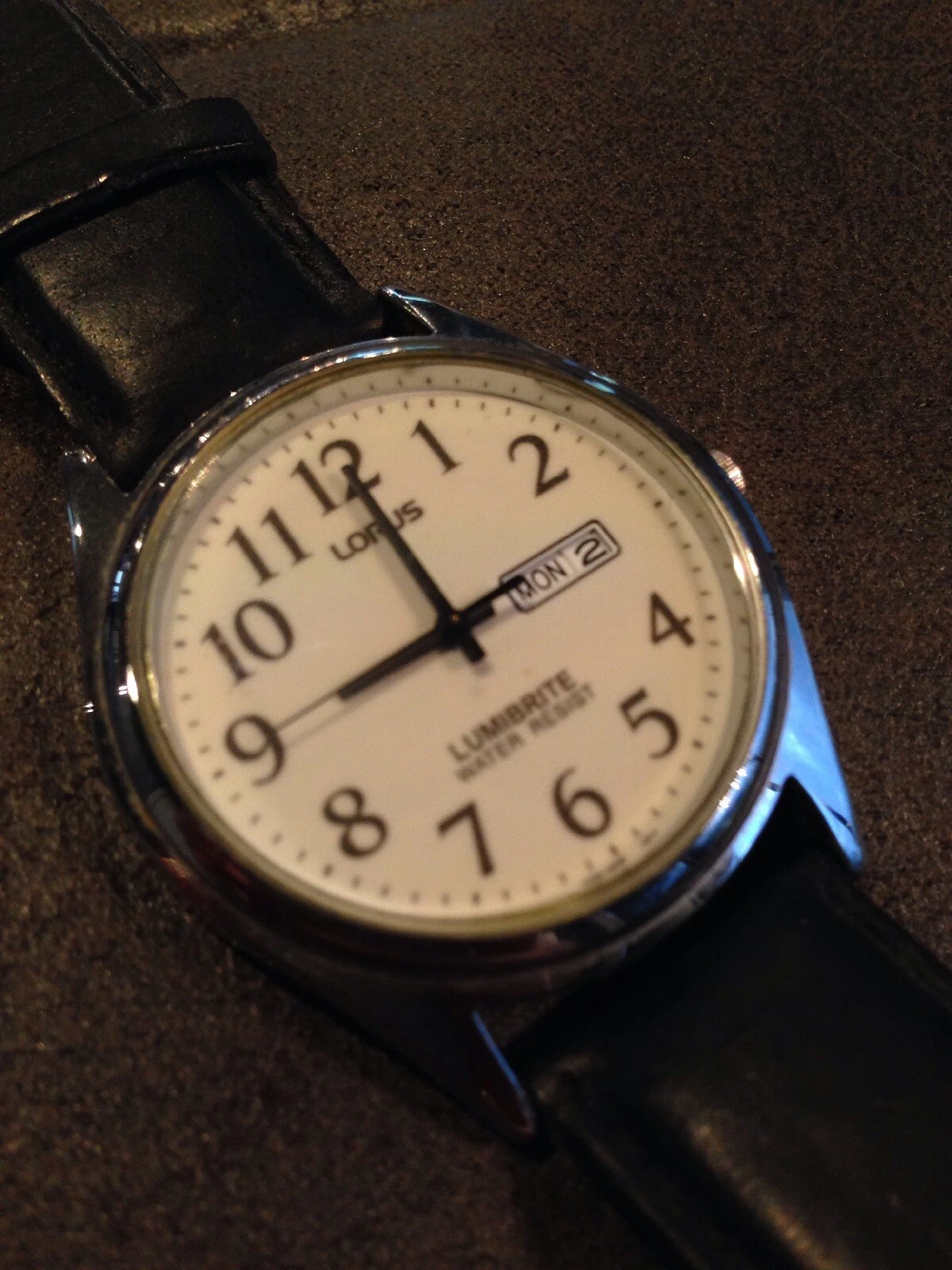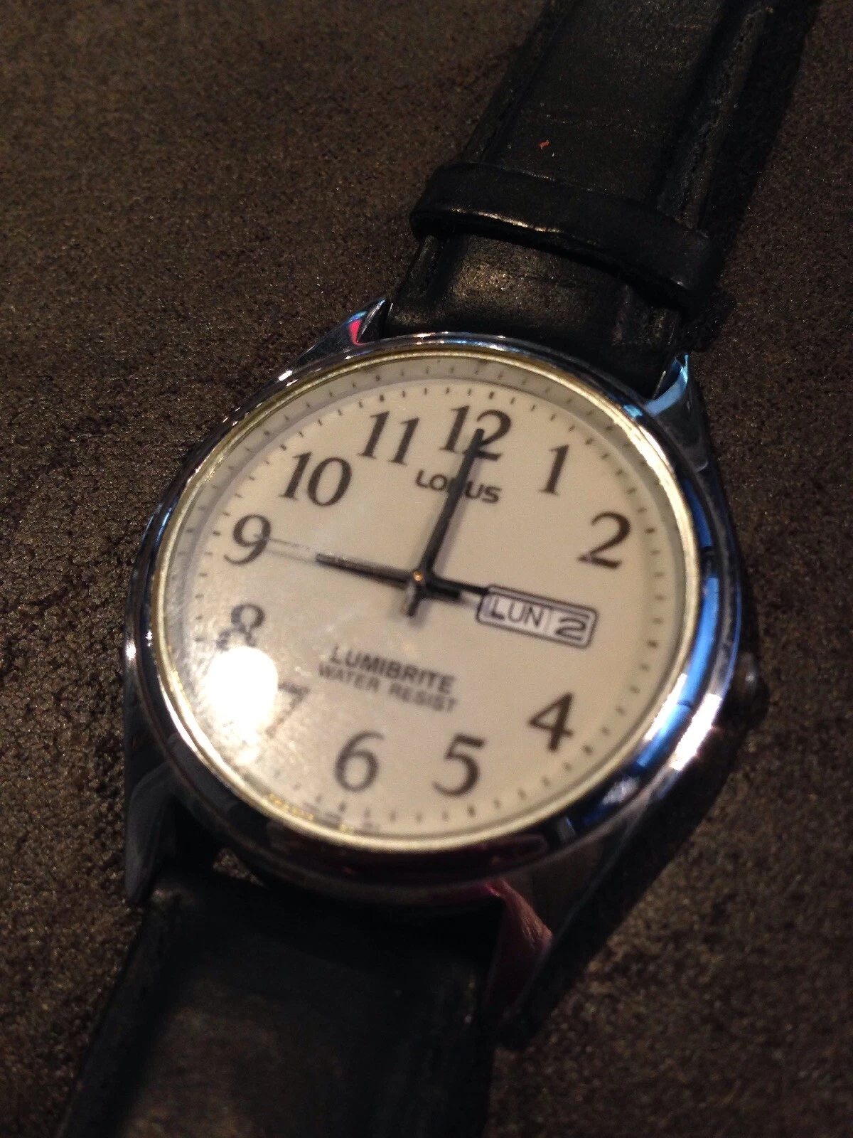 Vintage Lorus mens watch English & Spanish Day Of Week Japan Mvt Lumibrite Round
