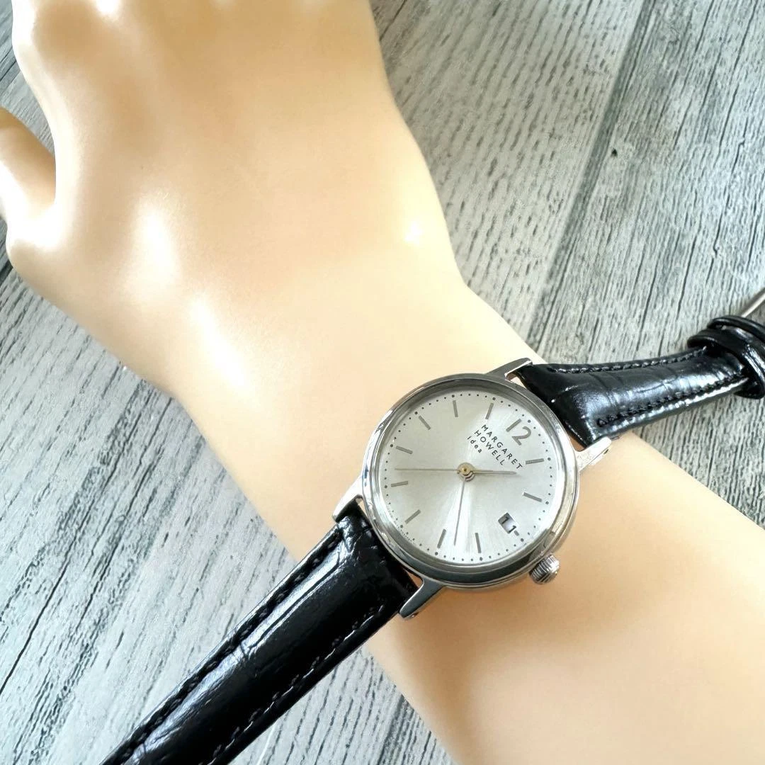MARGARET HOWELL Silver Ladies Analog Watch Round Face Date Popular Model Used