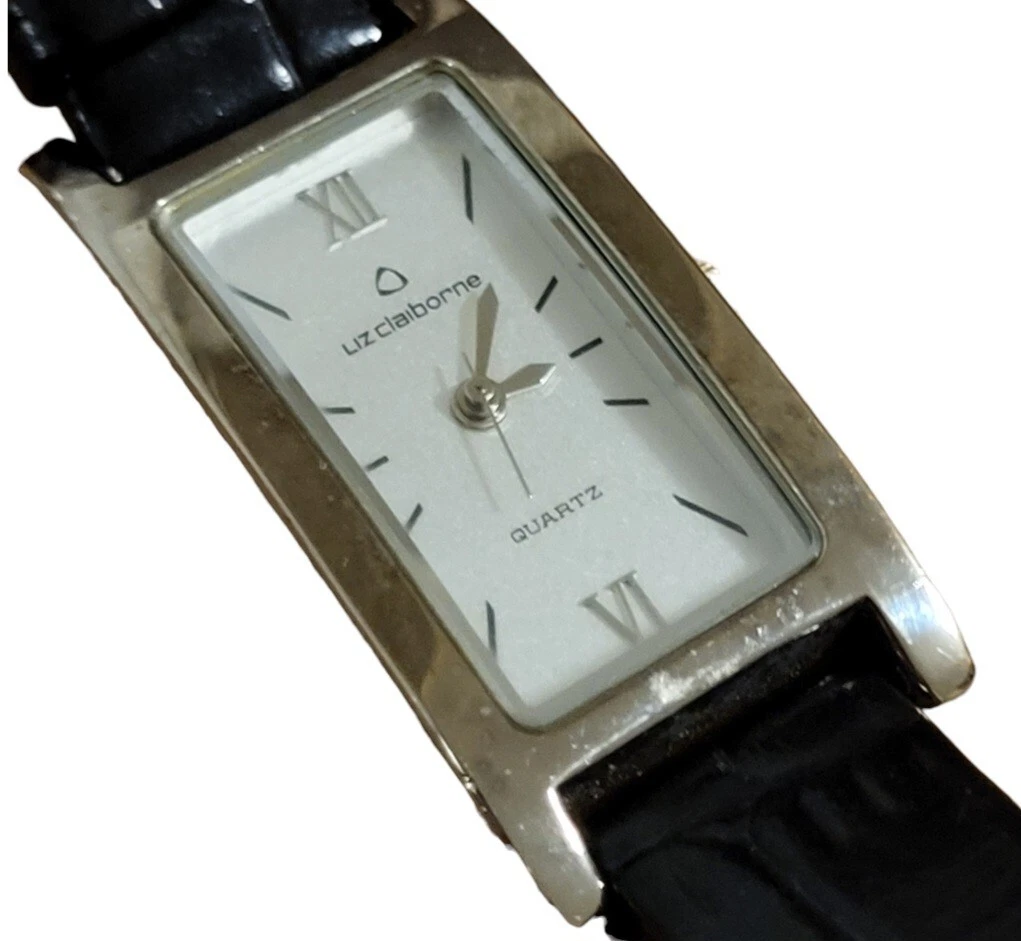 Liz Claiborne Women's Silver-Tone Leather Tank Watch Quartz S.Steel LC/1031 753H