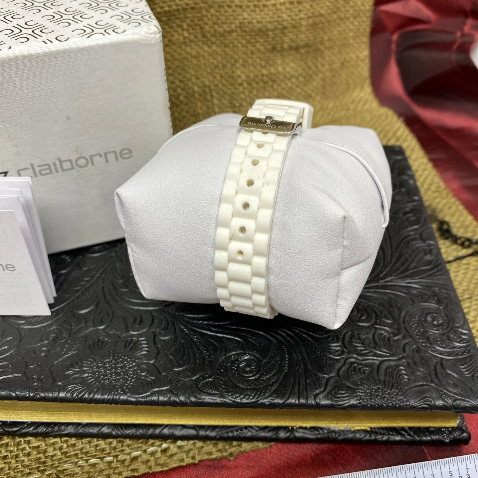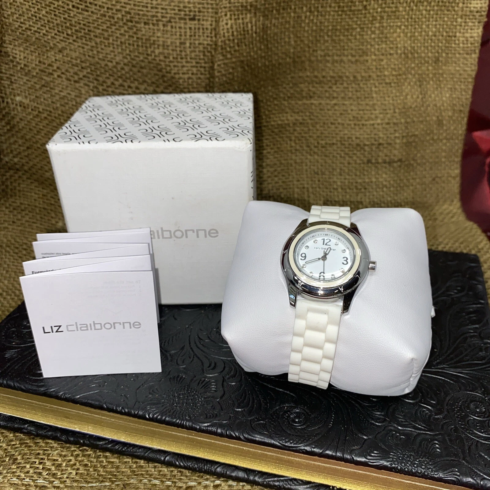 Vintage EUC Battery New Liz Claiborne Womans White Watch Box Papers See Back Pic
