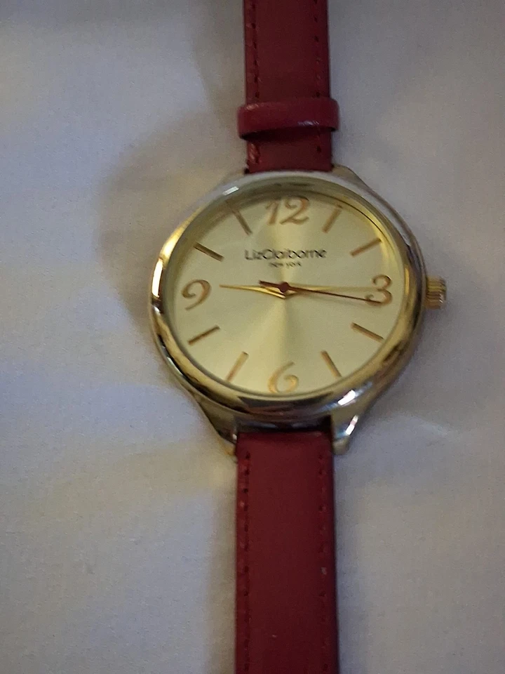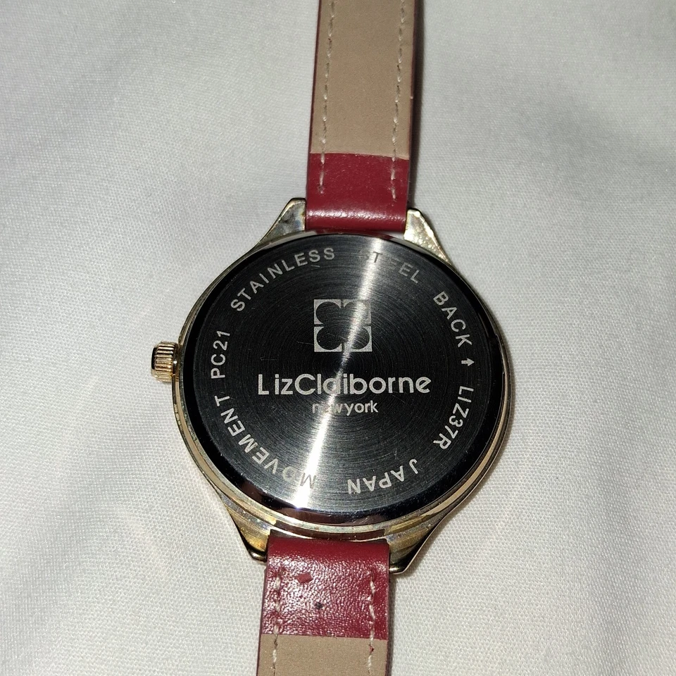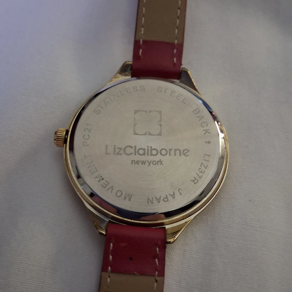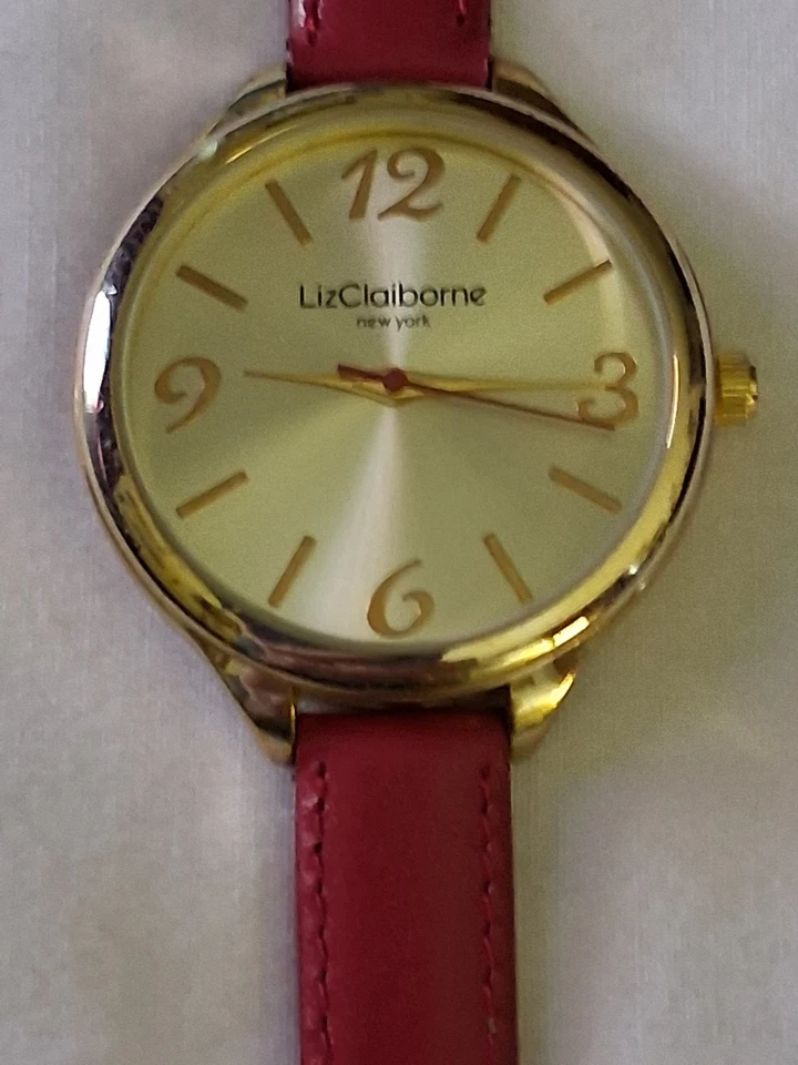 Womens LIZ CLAIBORNE watch ROSE GOLD Dial Pink Leather Band needs battery