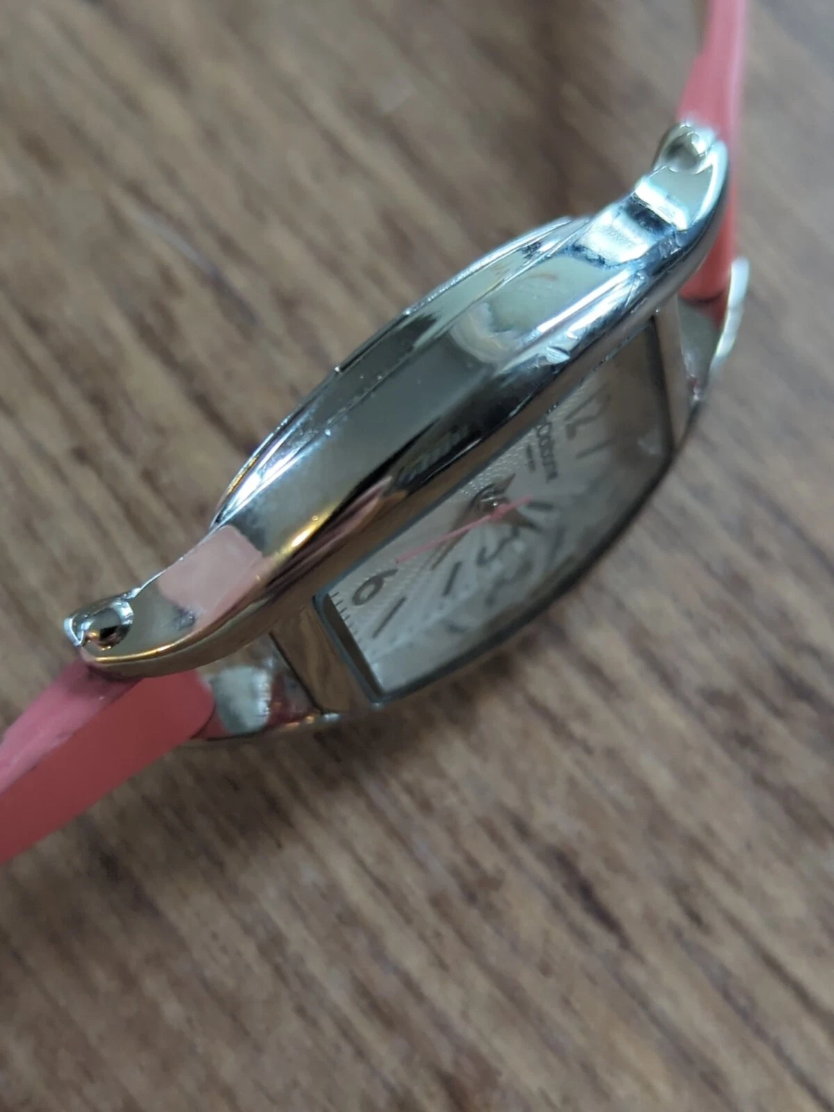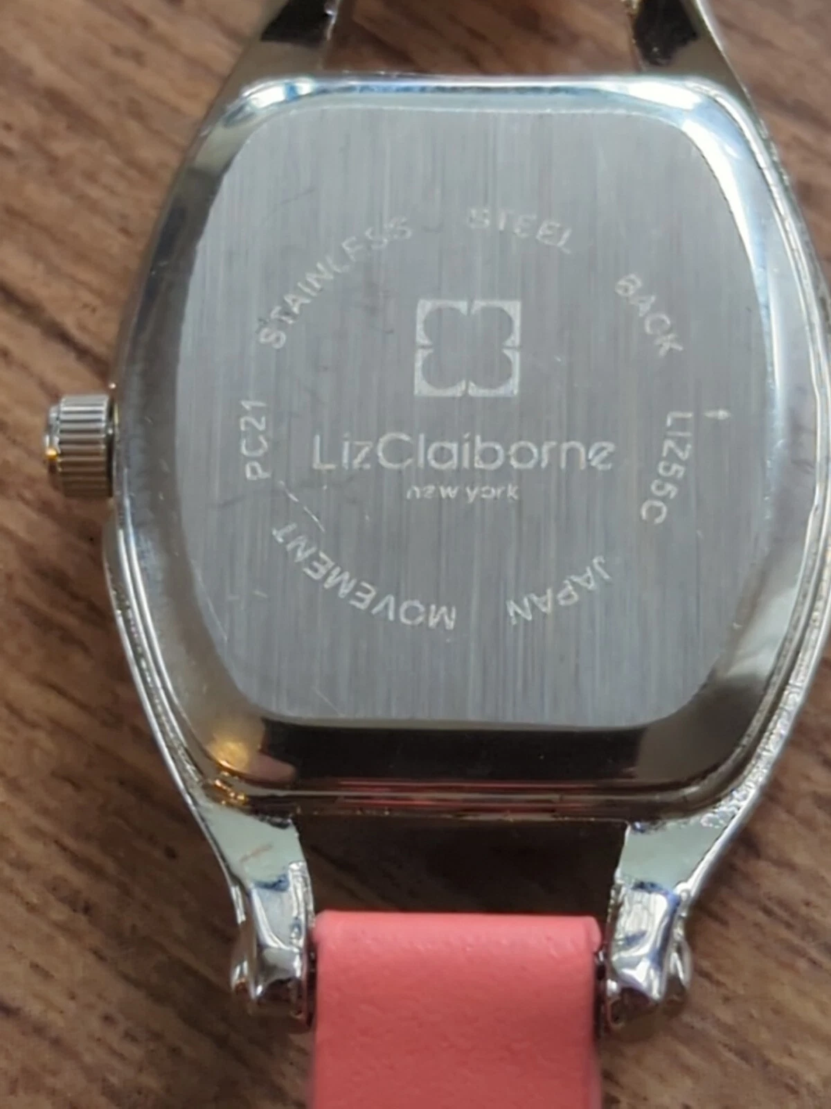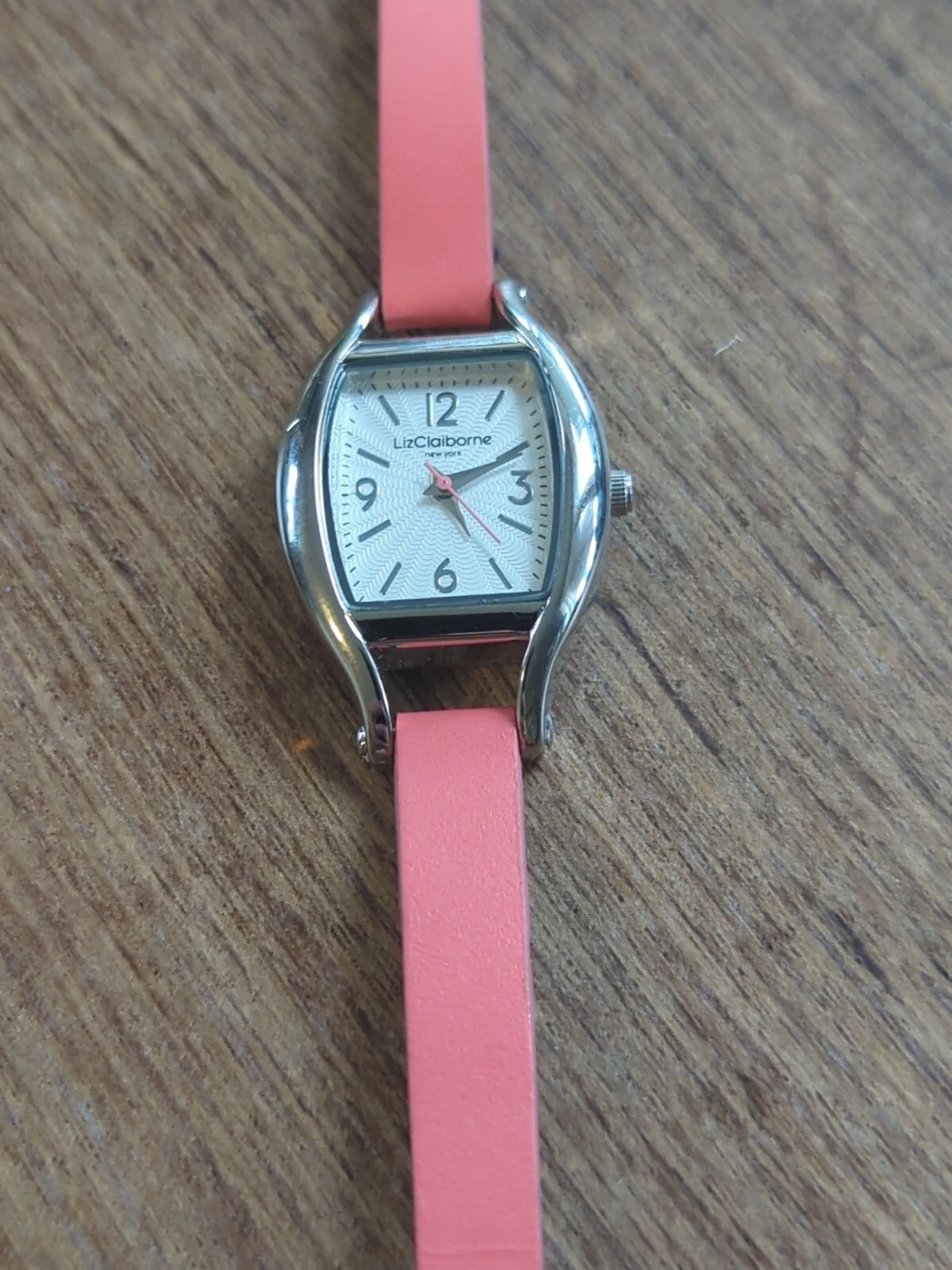 Liz Claiborne Pink thin Leather Strap Silvertone Watch New Unworn EUC
