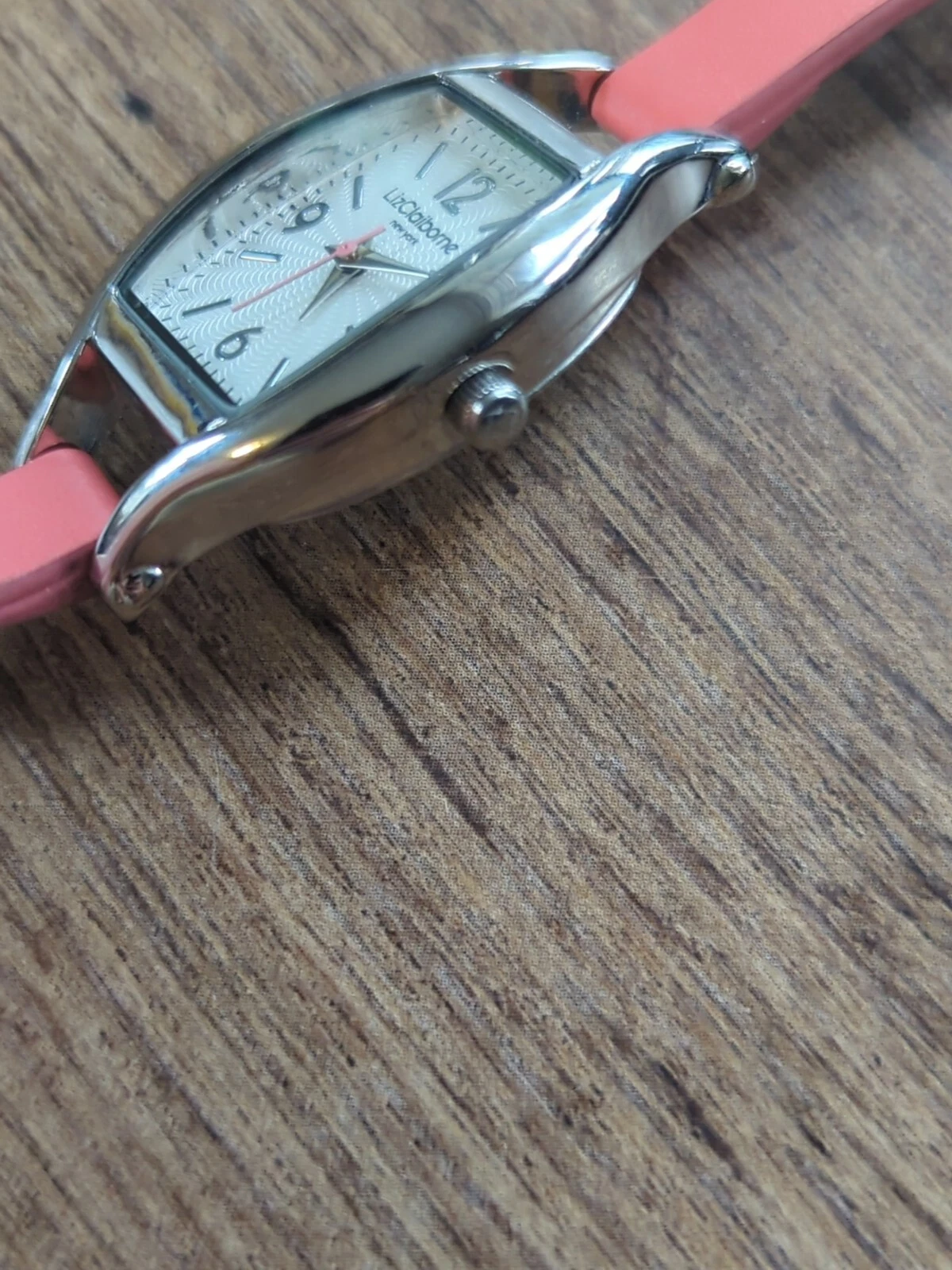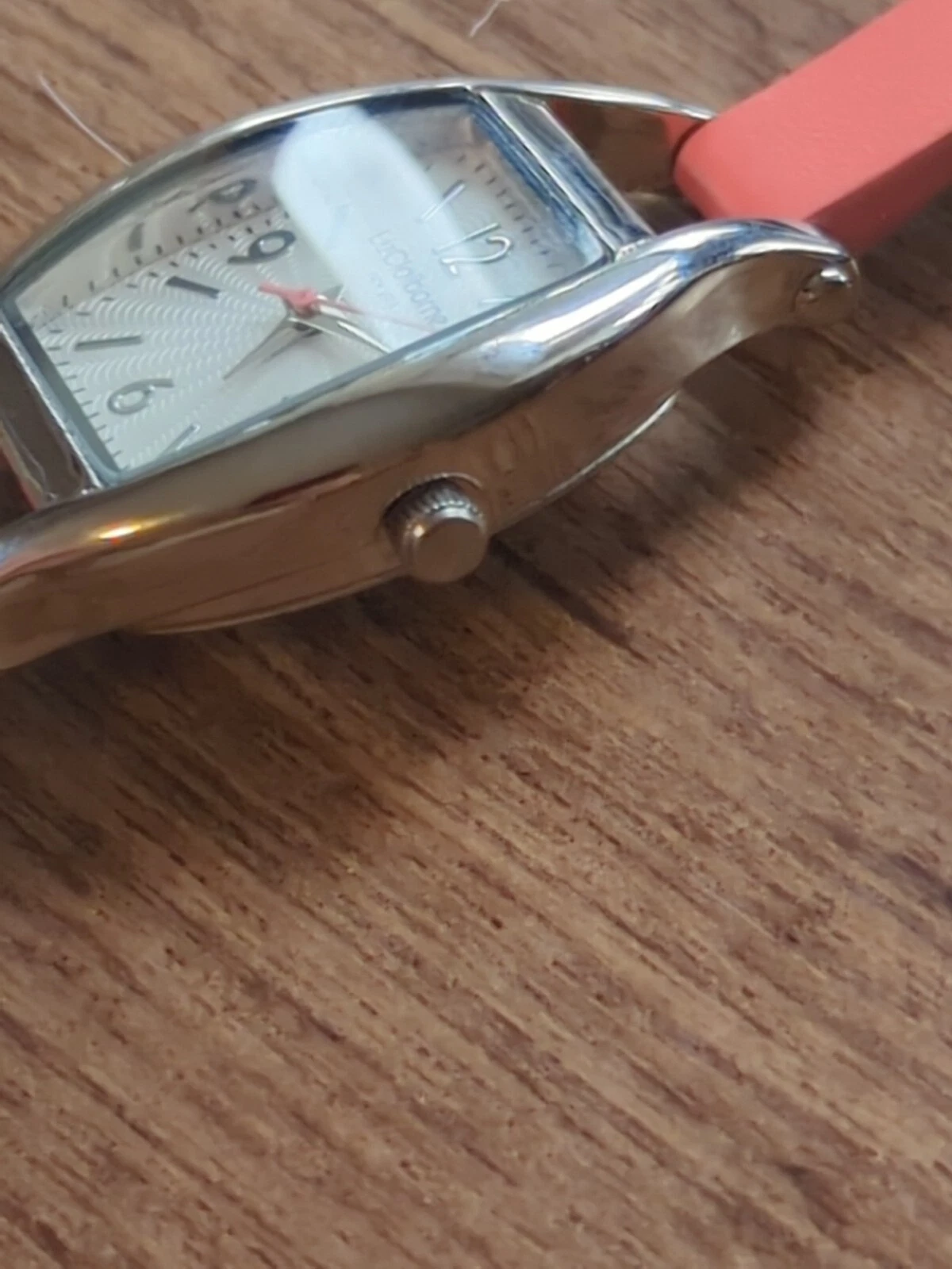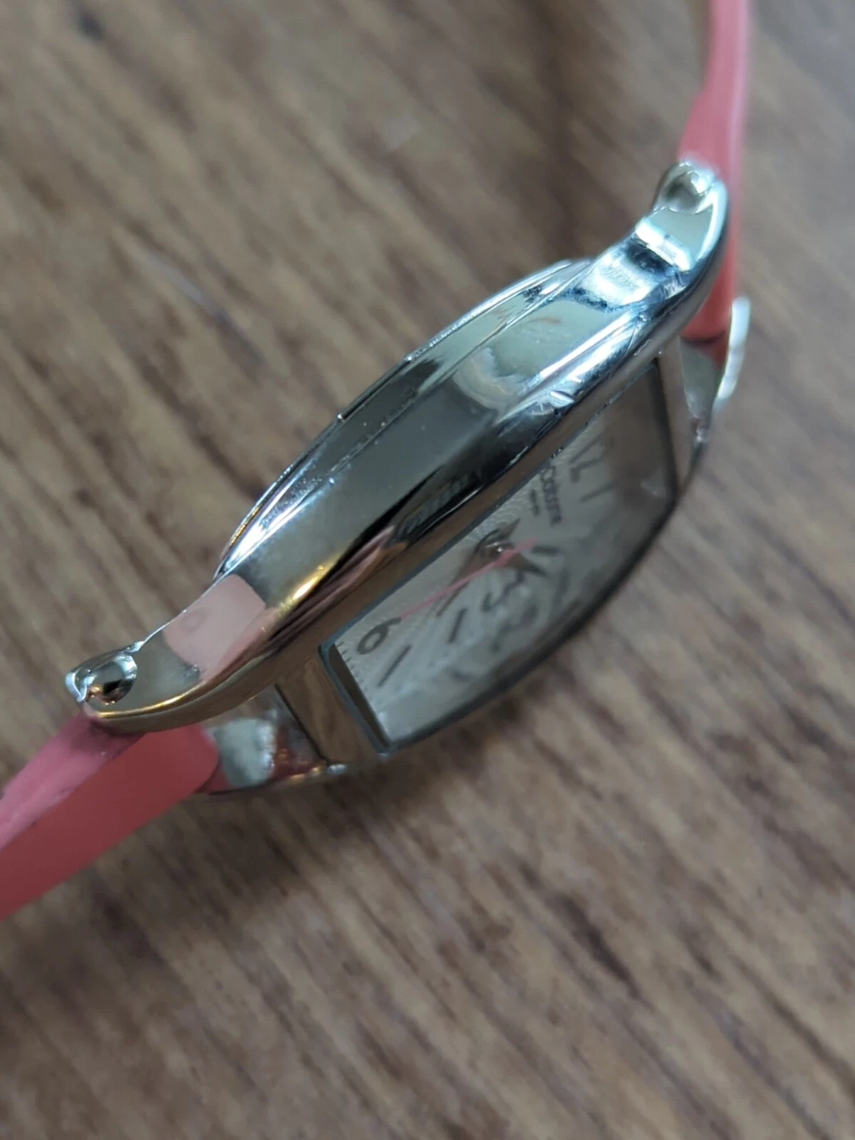 Liz Claiborne Pink thin Leather Strap Silvertone Watch New Unworn EUC