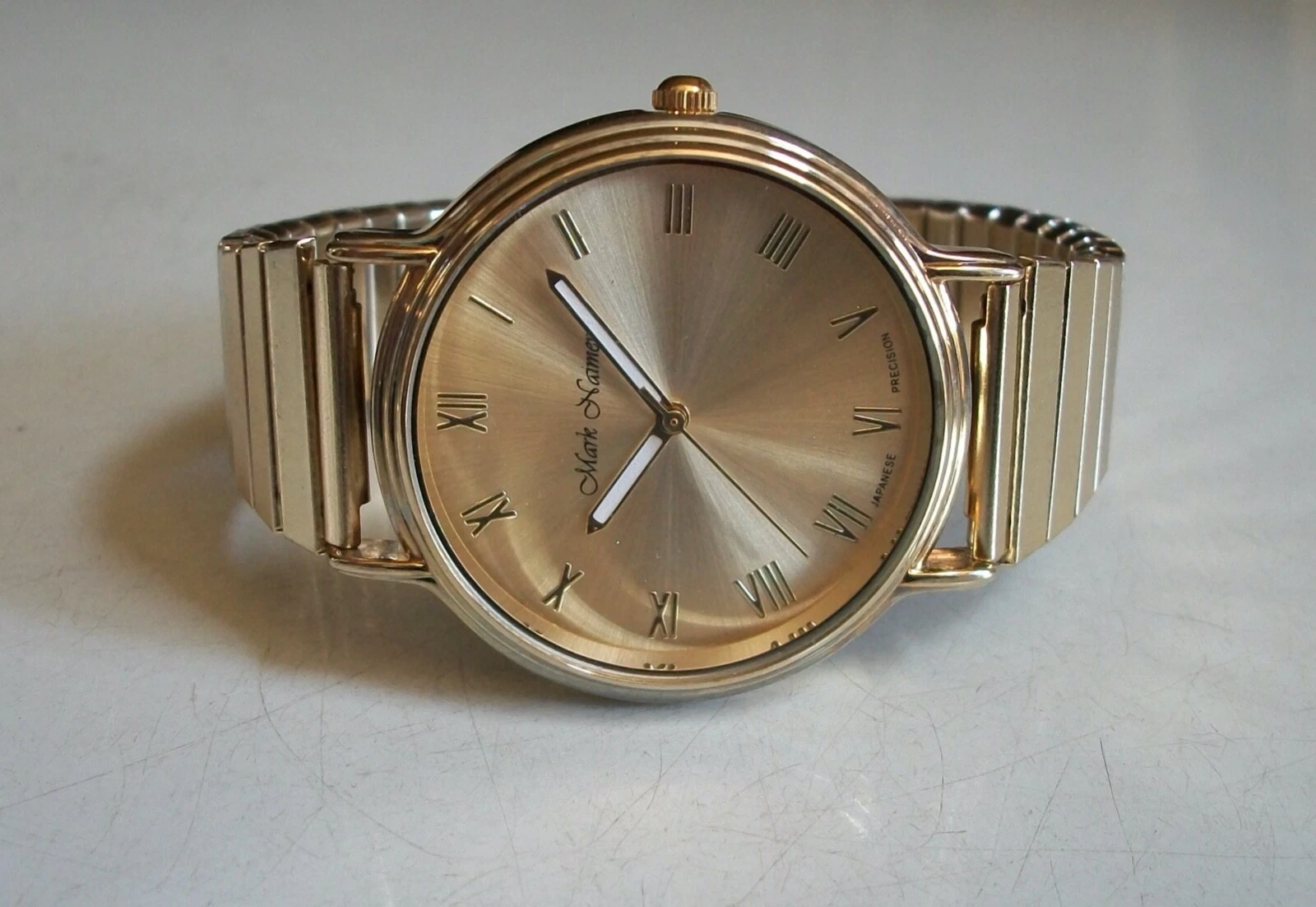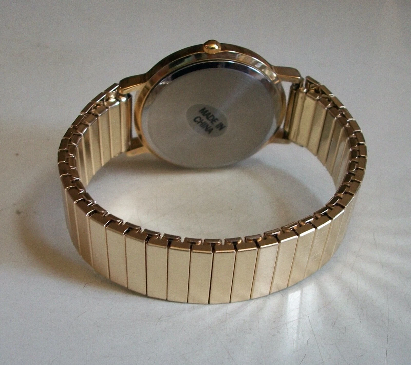 Men's Dressy Casual Stretch Band Gold Finish Fashion Wrist Watch