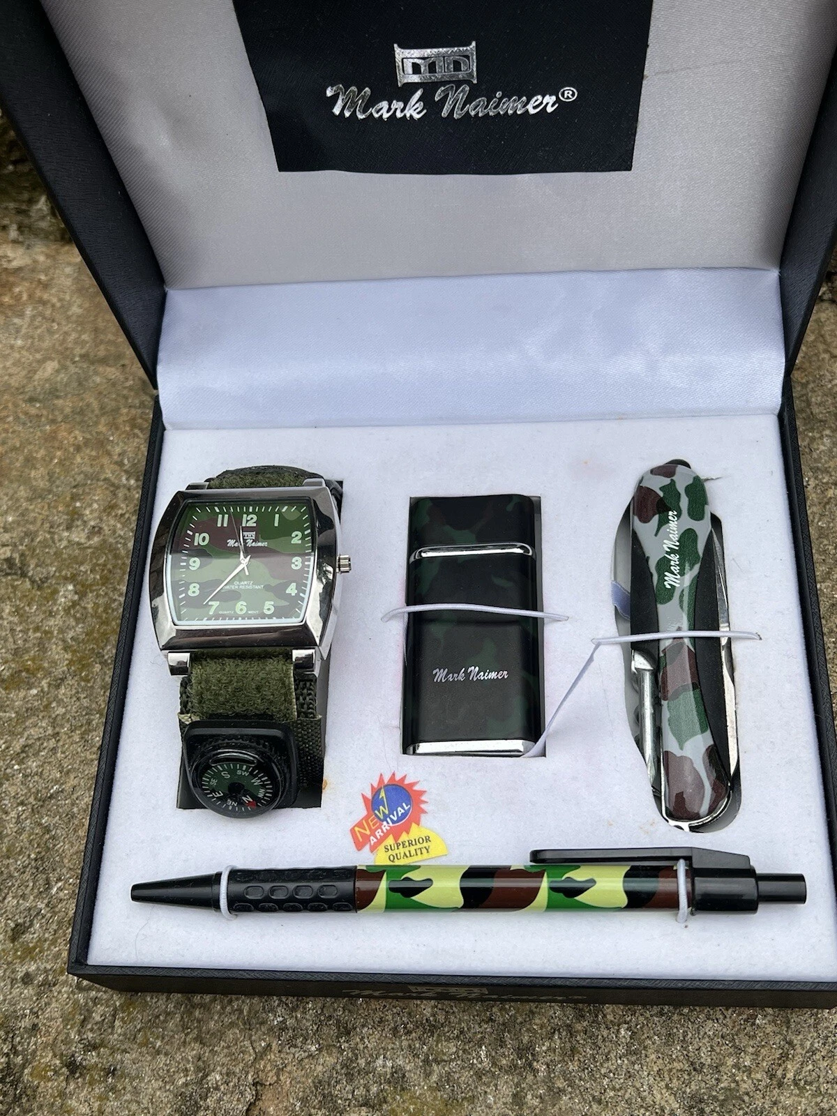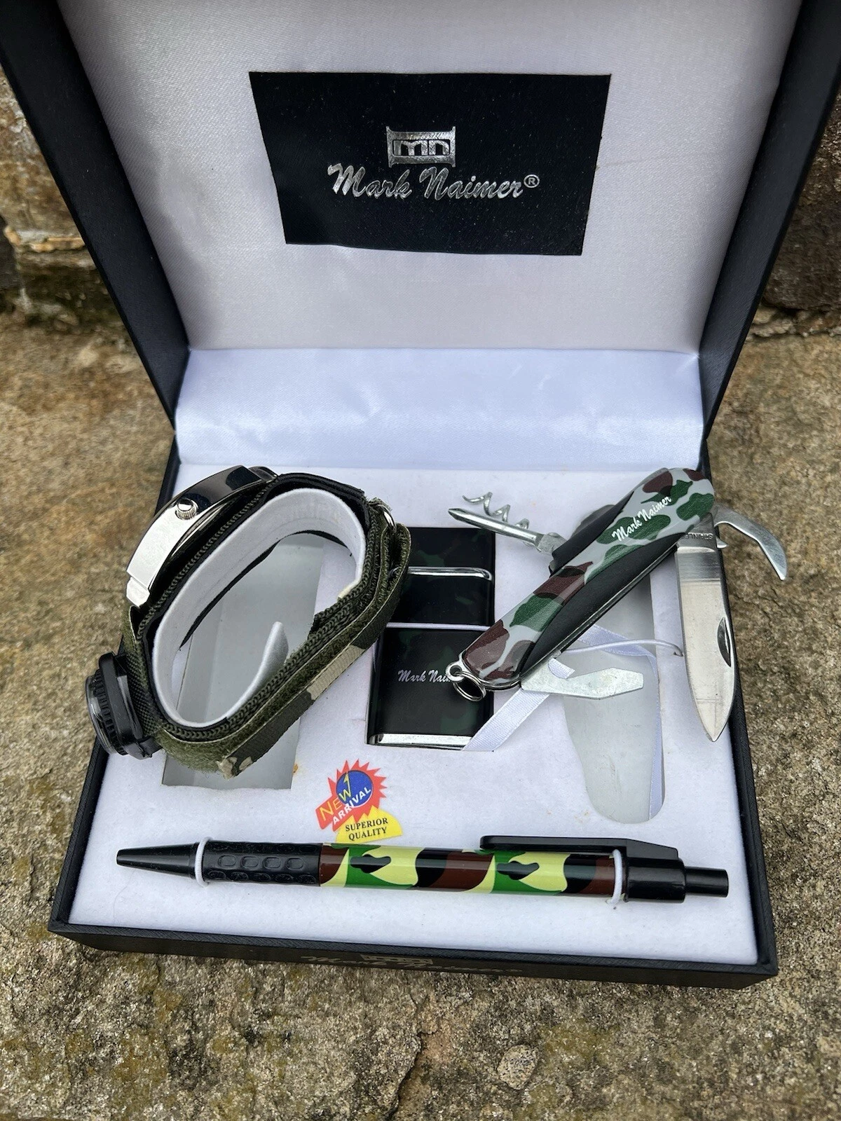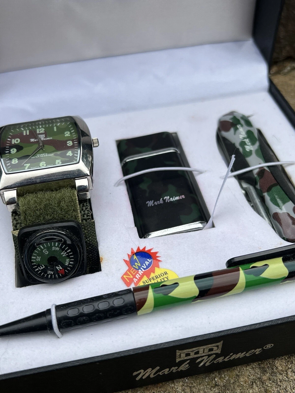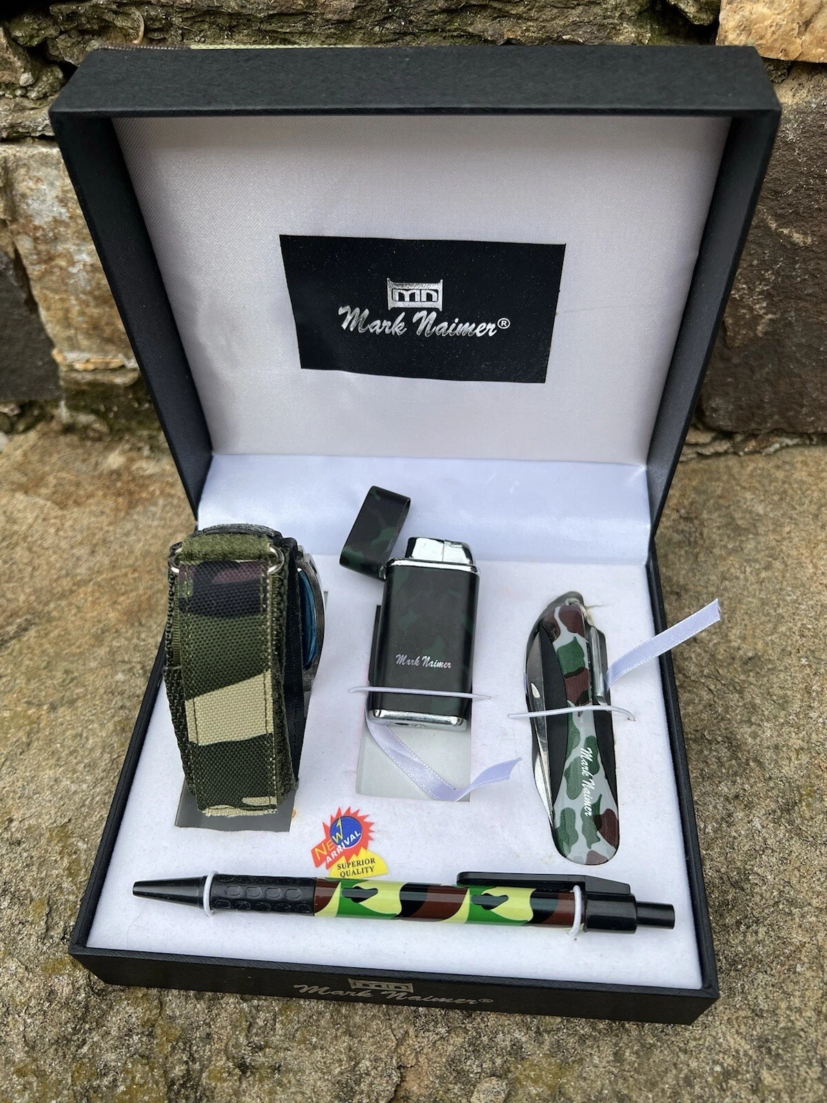 Mark Naimer NIB “Camo” Gift Set Of 4 Watch/Compass Utility Knife Lighter & Pen