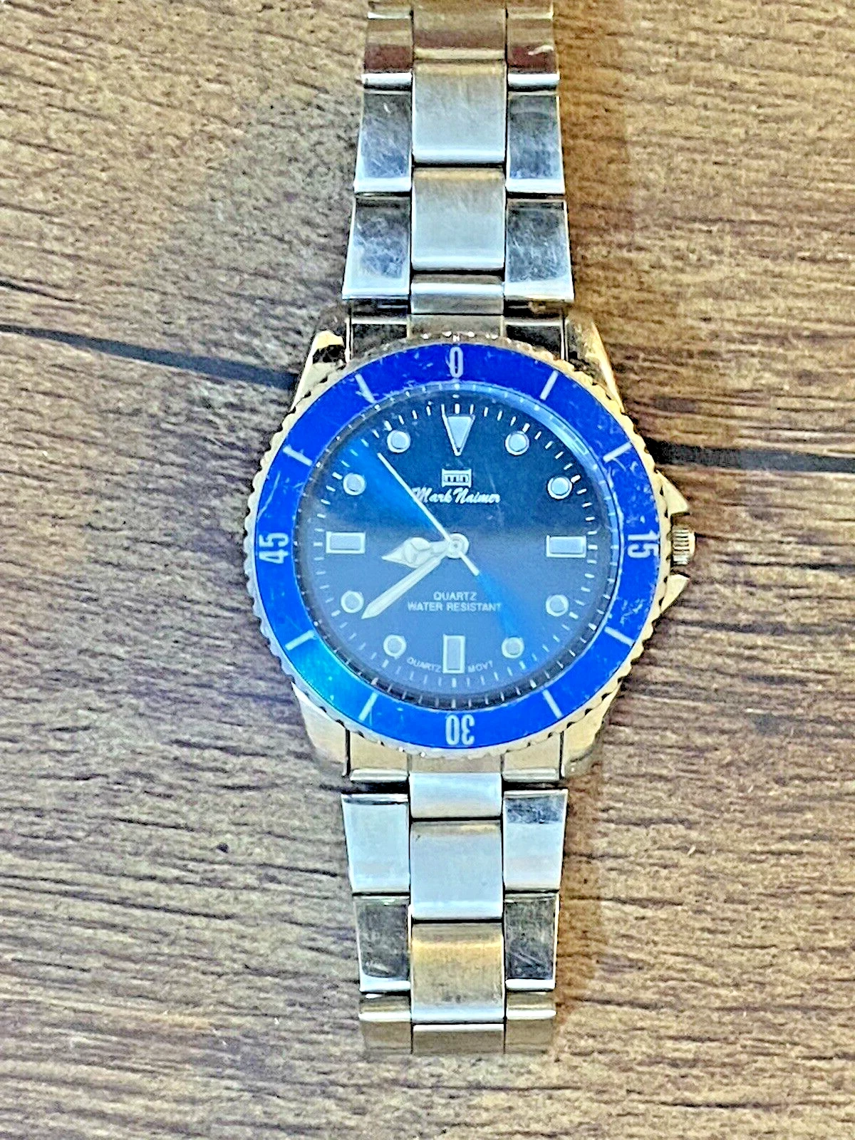 MARK NAIMER Men's Quartz Analog Blue Dial Water Resistant Stainless Steel Band