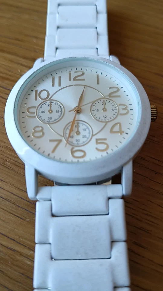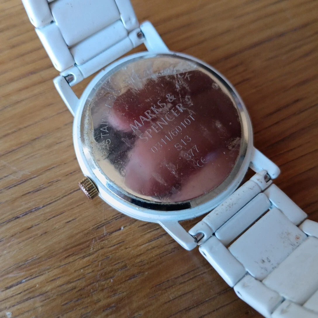 M&S Marks and Spencer Gold & White Wristwatch Accessory Time Stainless Steel