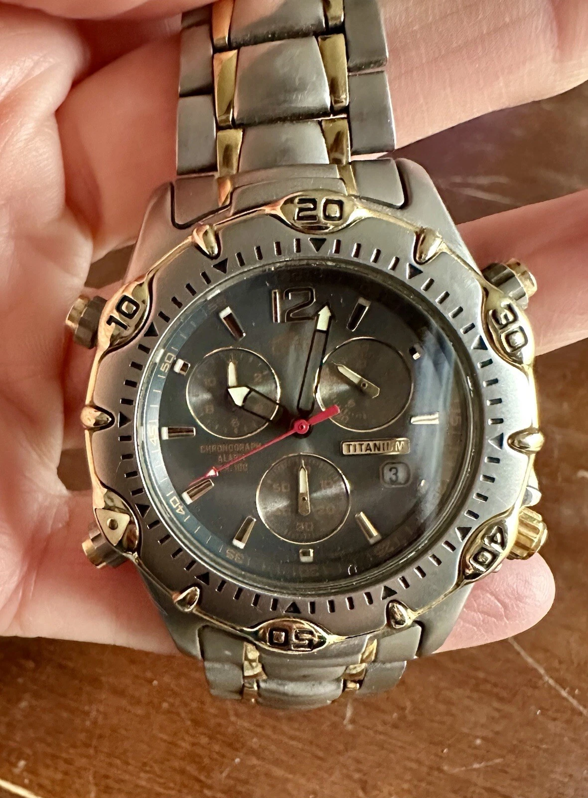 LOTUS Titanium 9665 Chronograph 10ATM Date Quartz Men’s Wrist Watch RARE 1990's