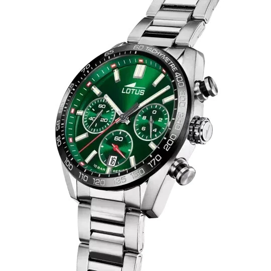 Lotus Chrono 189165 Mens Stainless Steel Green Tachymeter Dial Quartz Wristwatch
