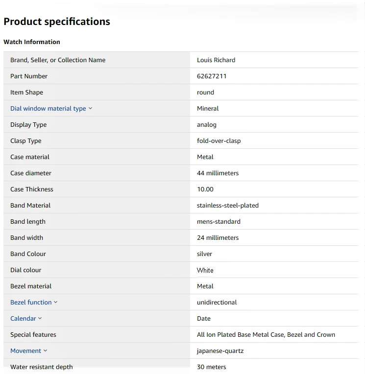 Louis Richard 15099 Quartz Men's Watch White Dial Stanless steel plated Bracelet