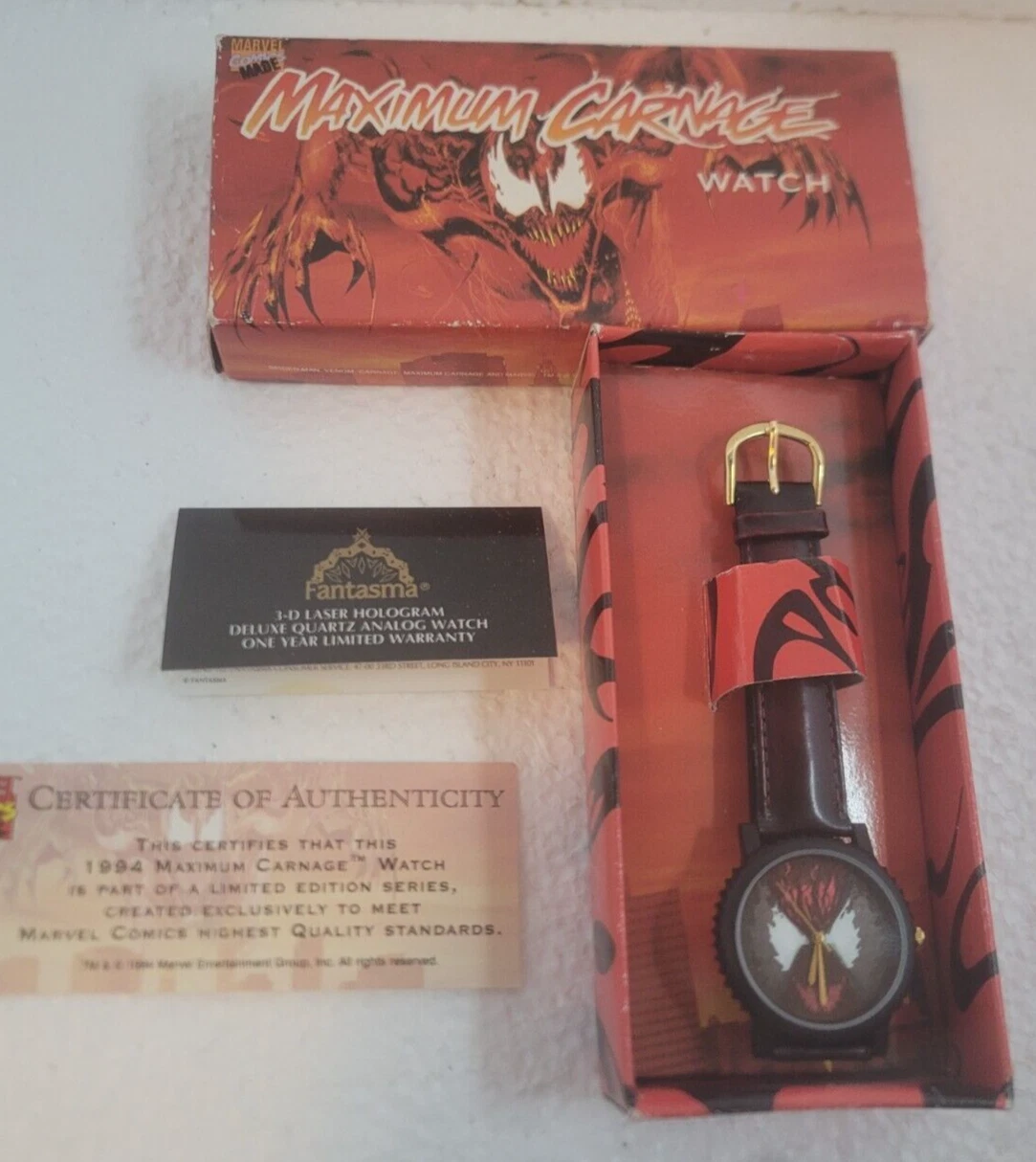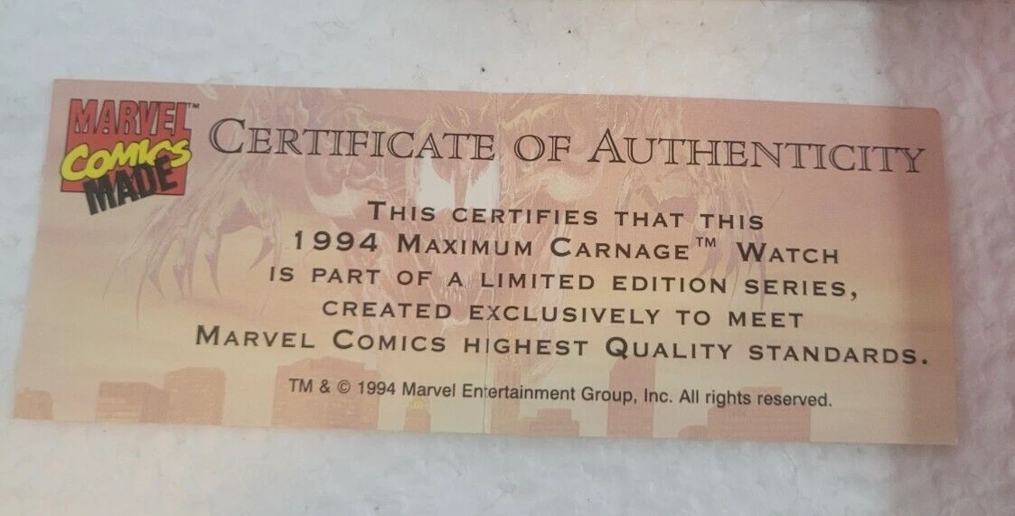 Maximum Carnage Watch 1994 NEW IN BOX, COA* (MARVEL, Spider-Man. Box not perfect