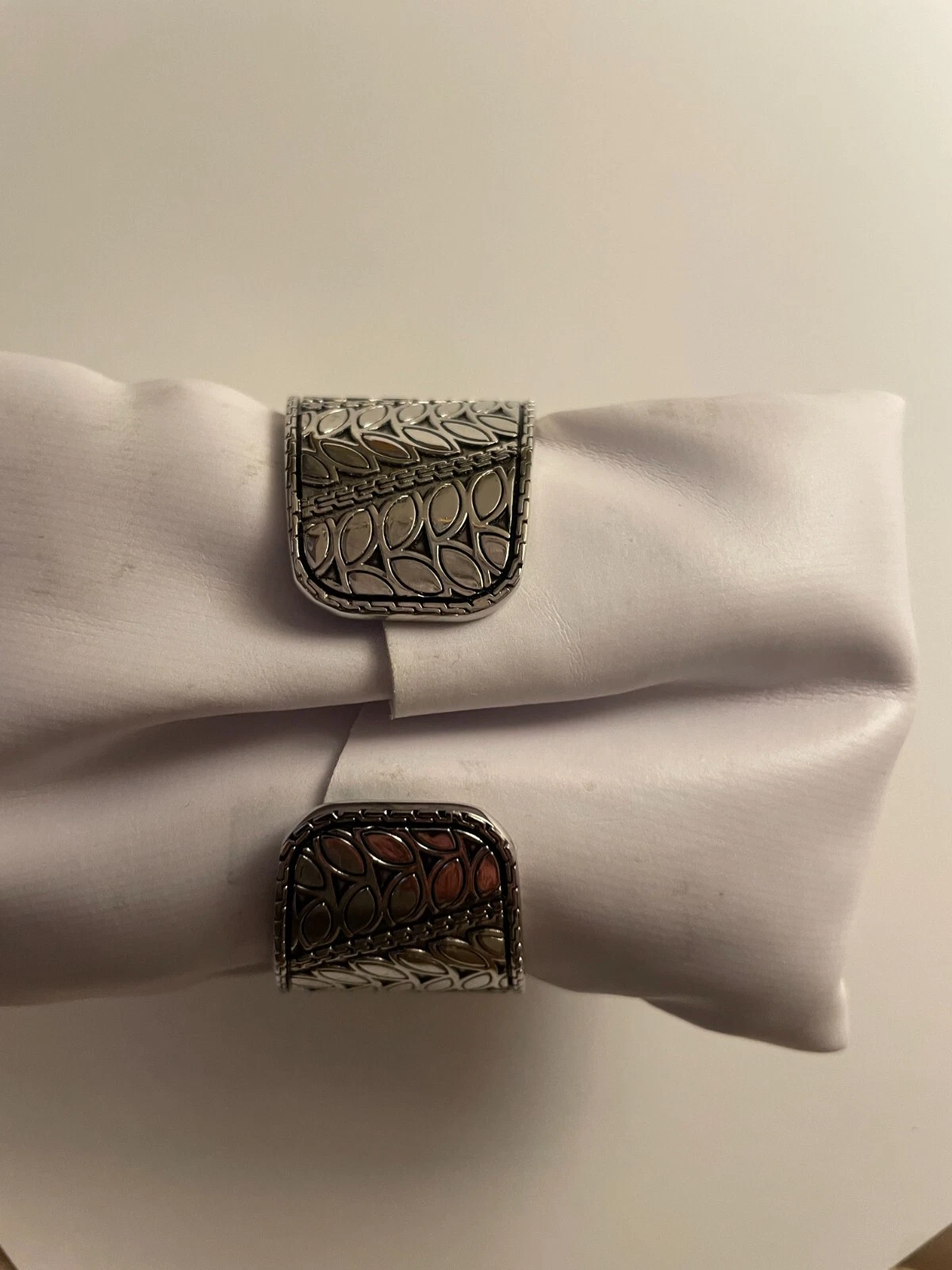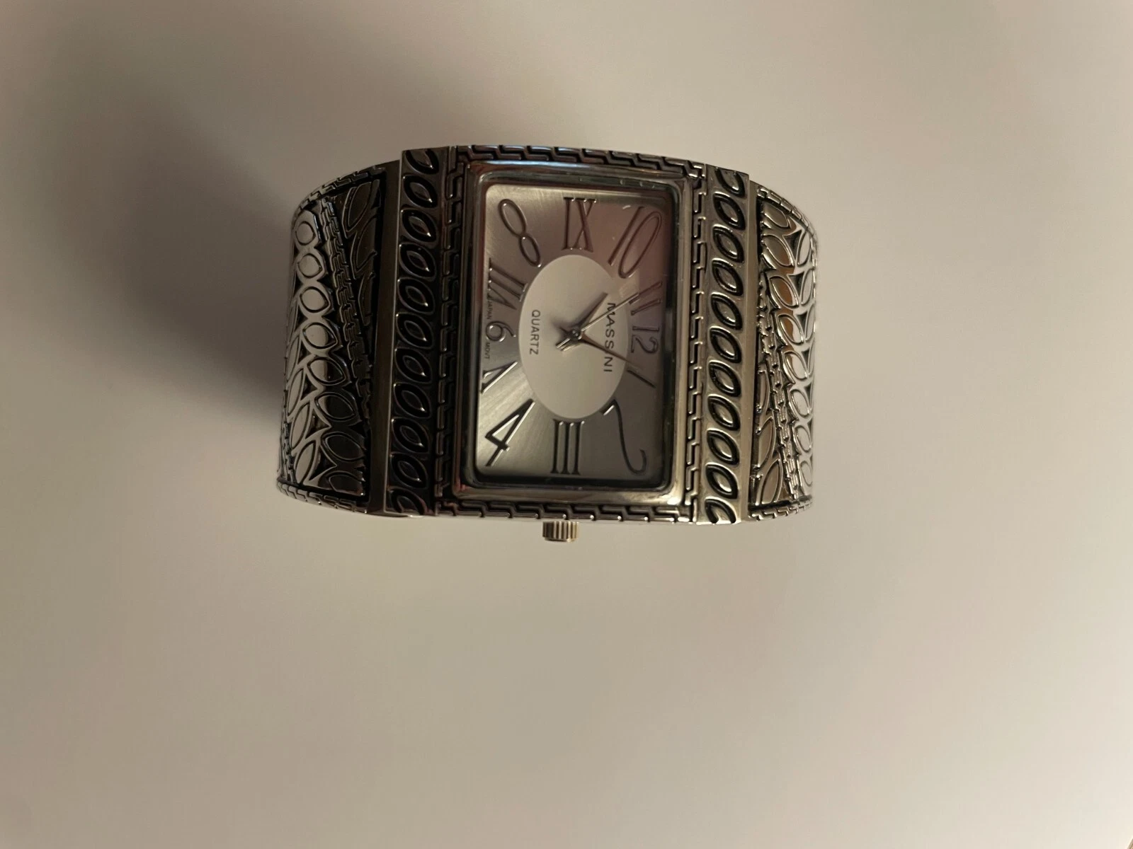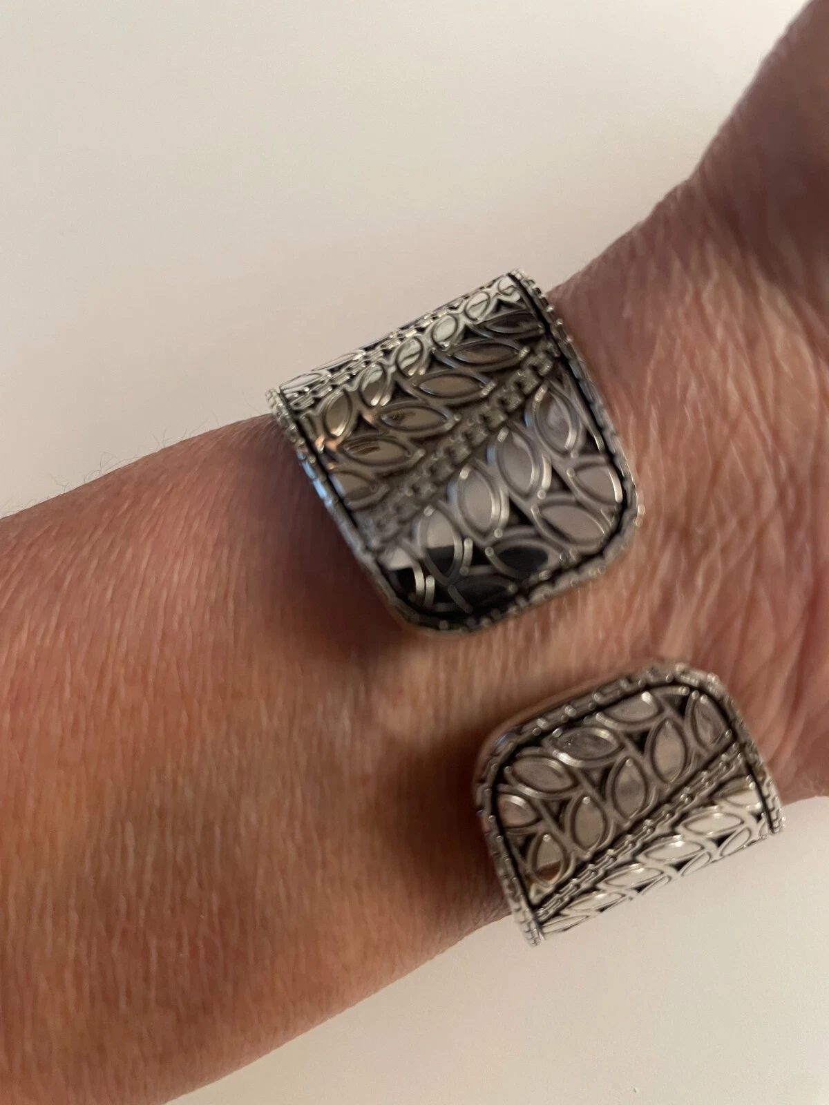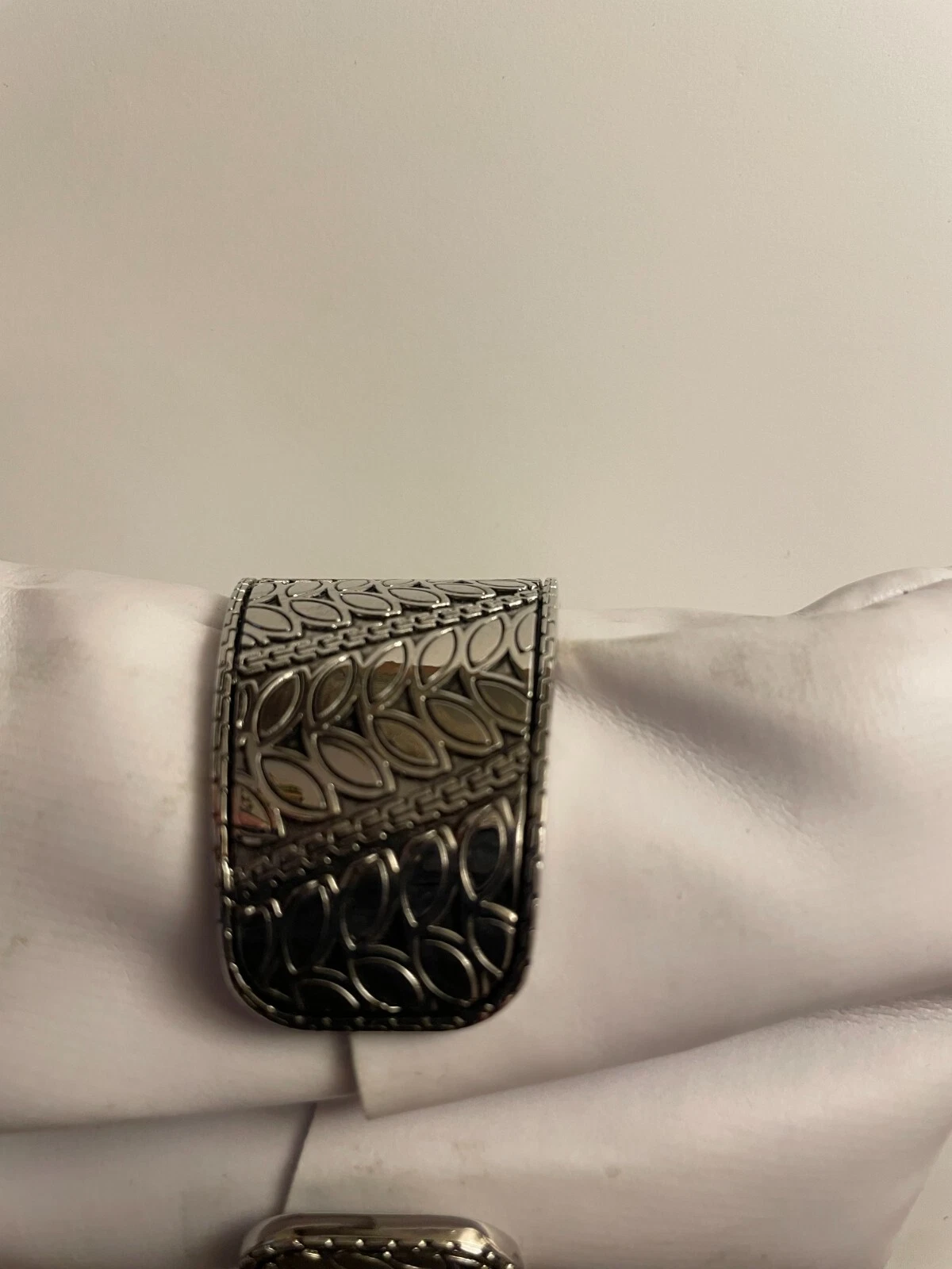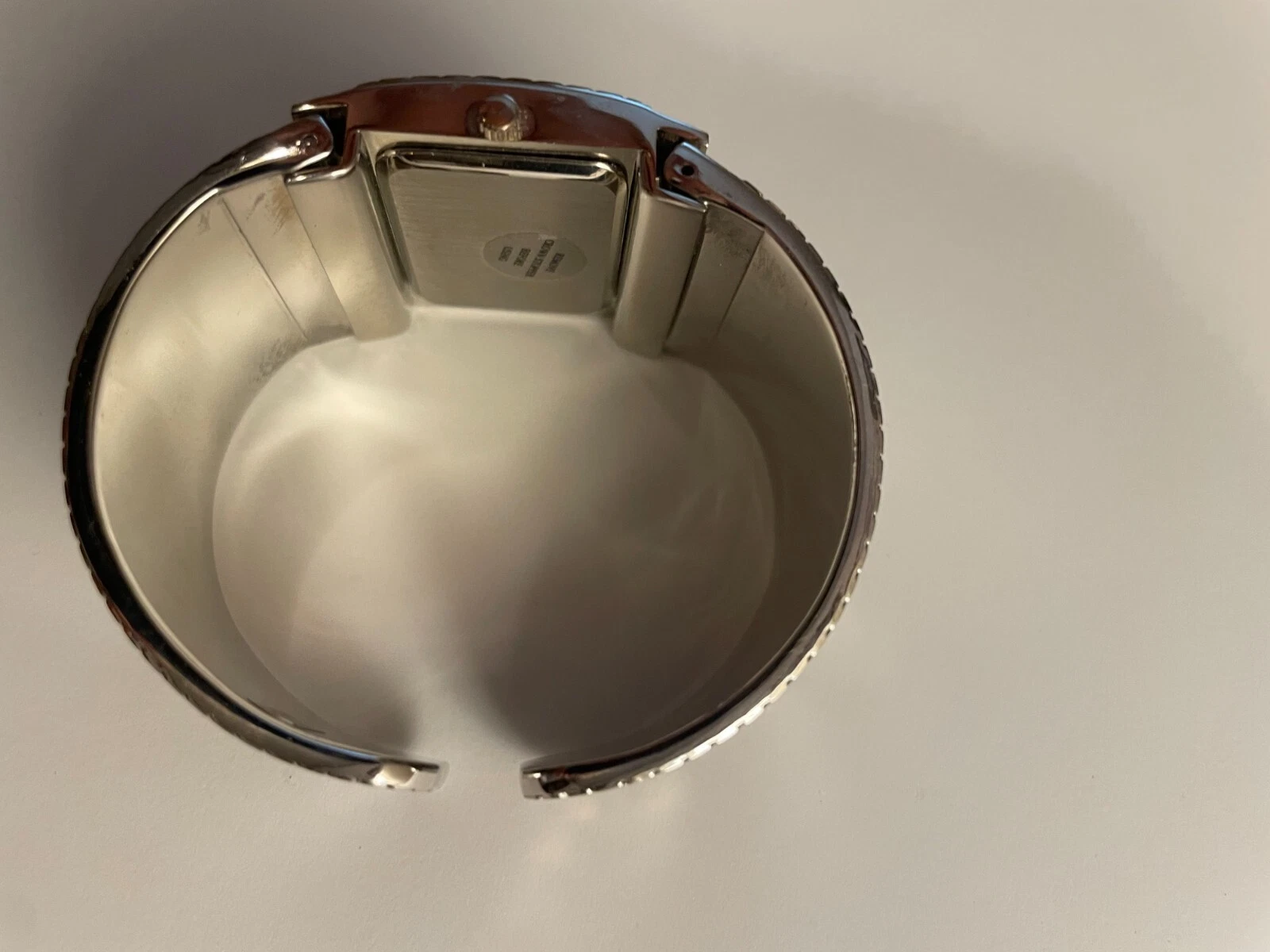 Massini Silvertone Wide Cuff Watch Pretty Design Fit 7"-7-3/4" Wrist Preowned