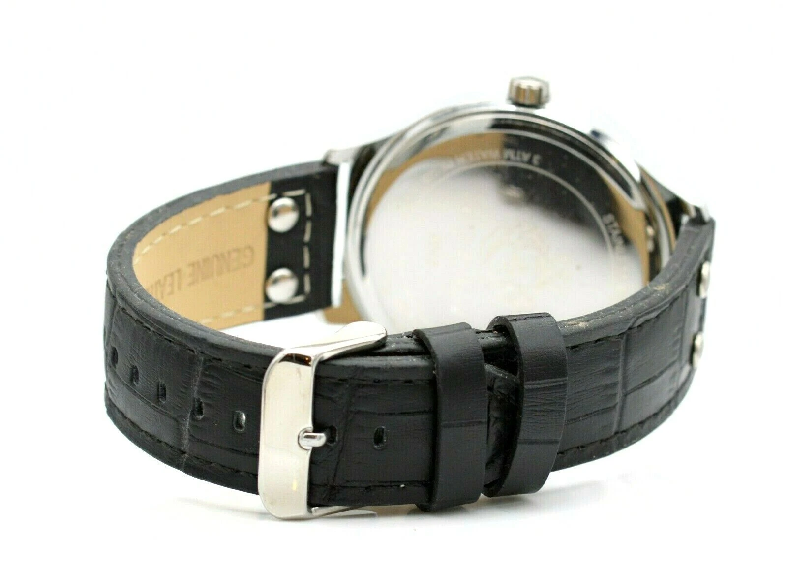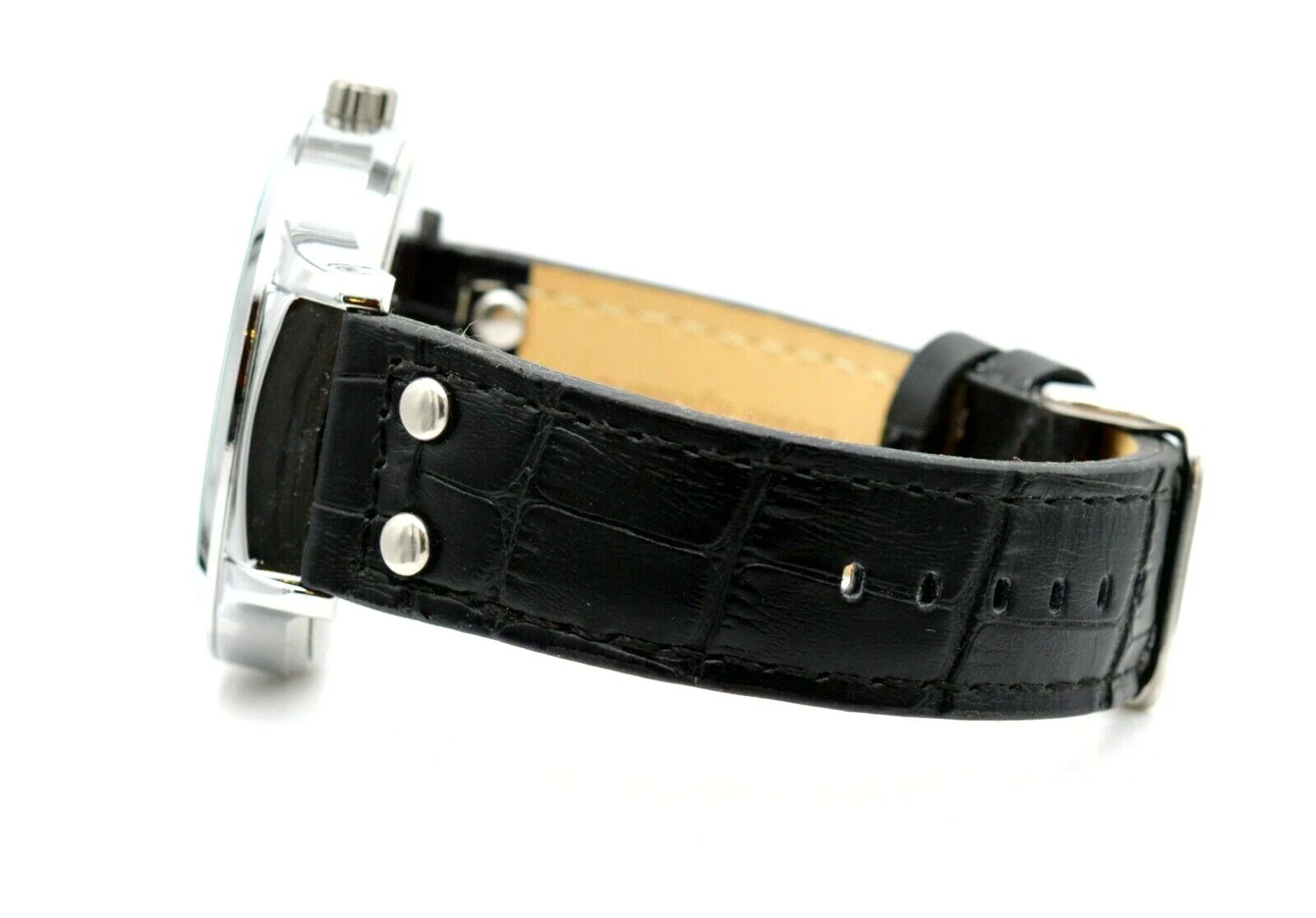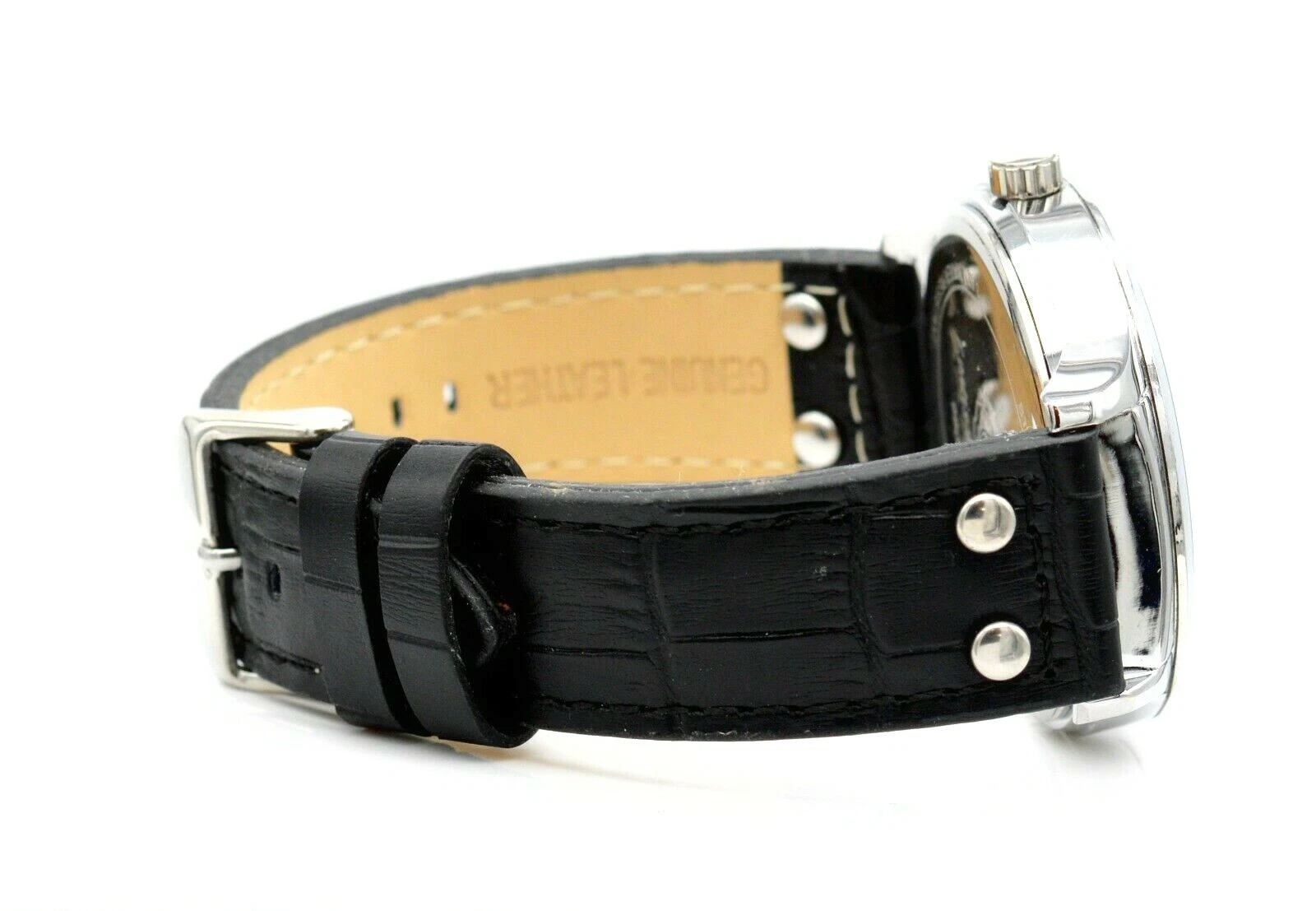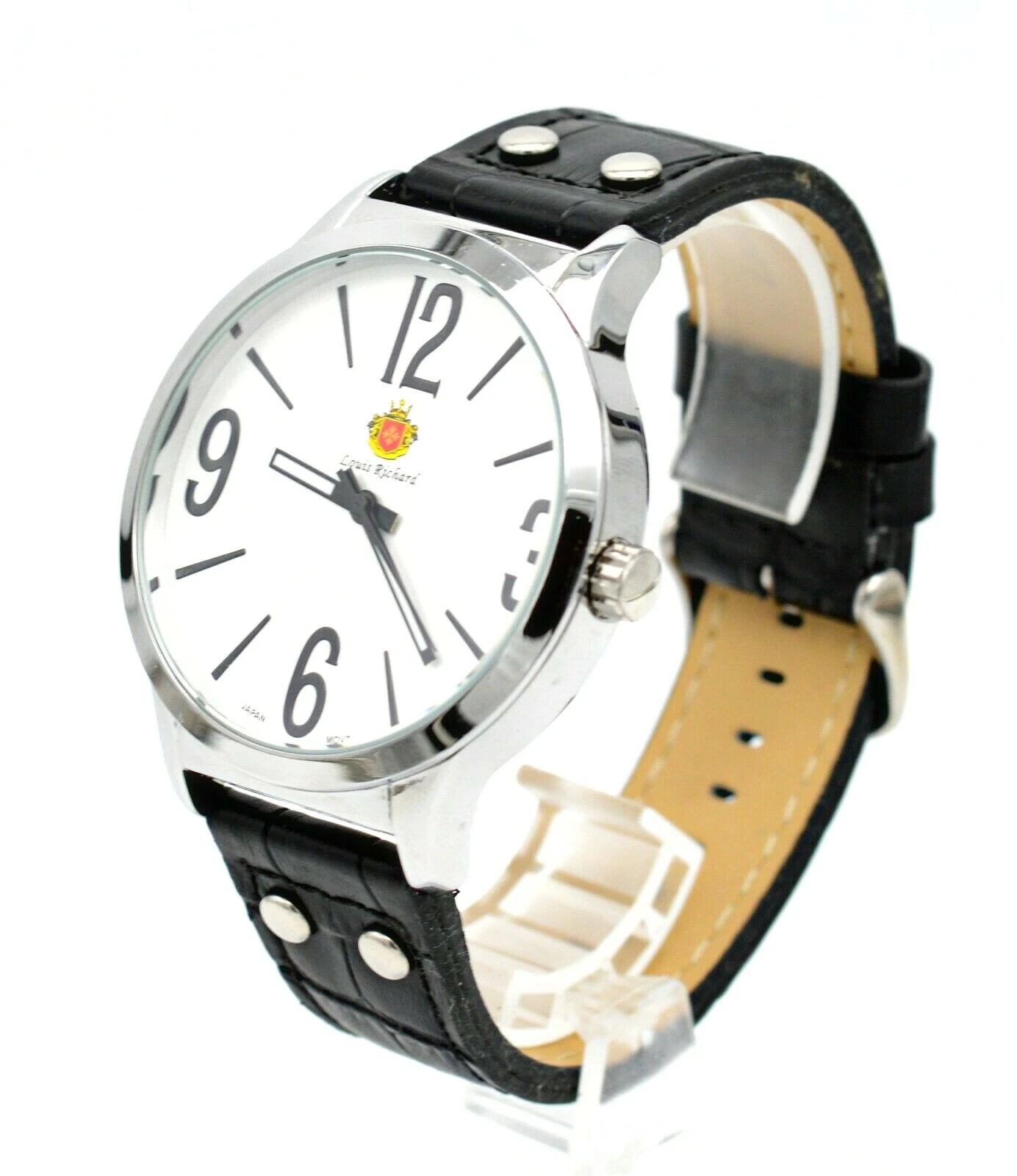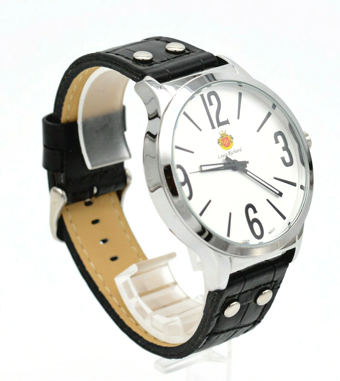LOUIS RICHARD 46MM STAINLESS BLACK LEATHER BAND MEN'S WRIST WATCH