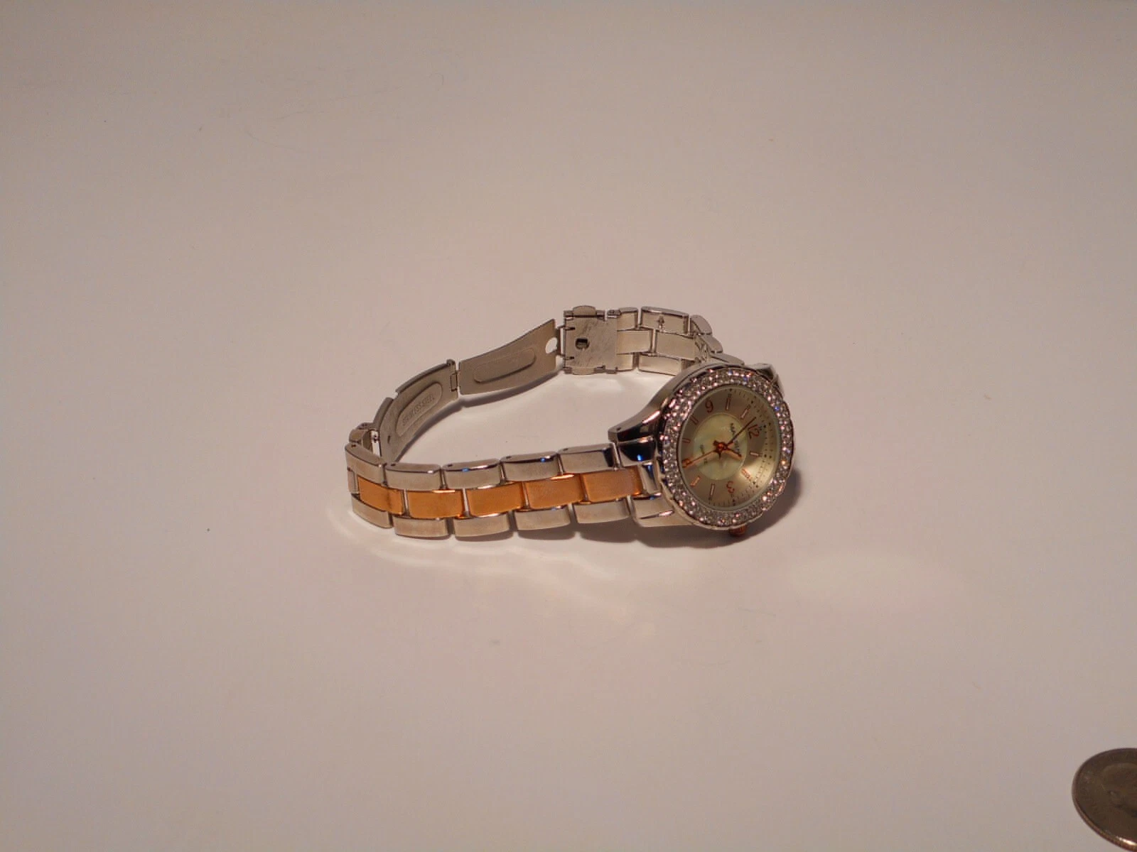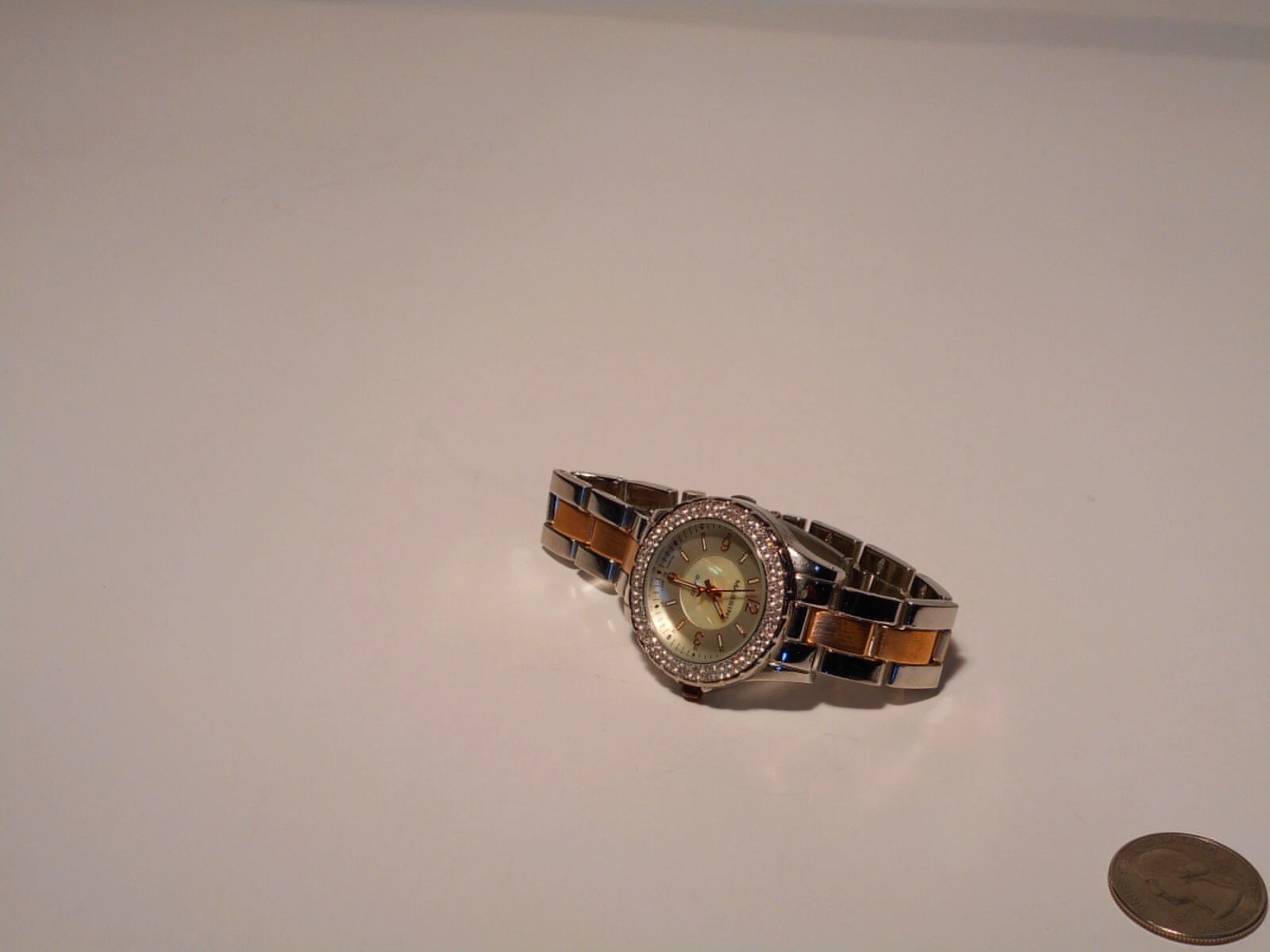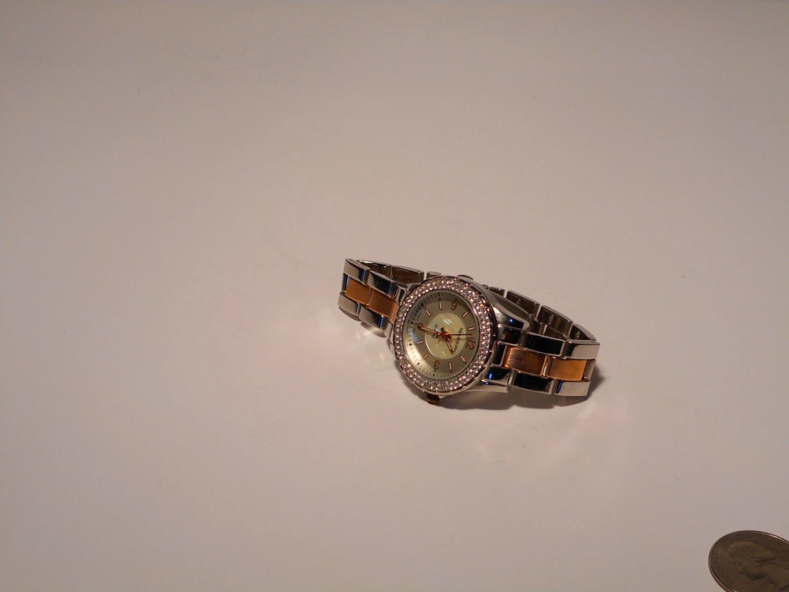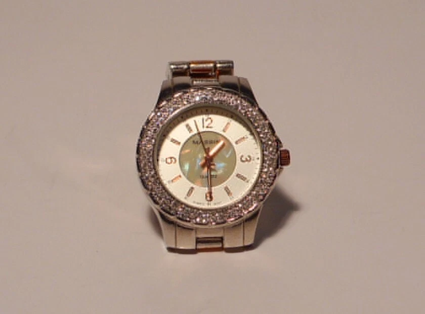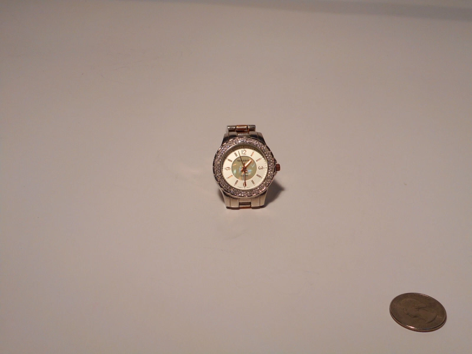 Massini Women's Quartz Wrist Watch Mother of Pearl Face Double Rhinestone Bezel