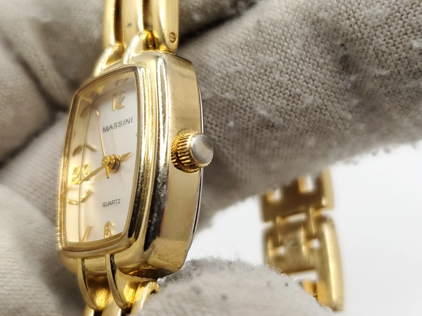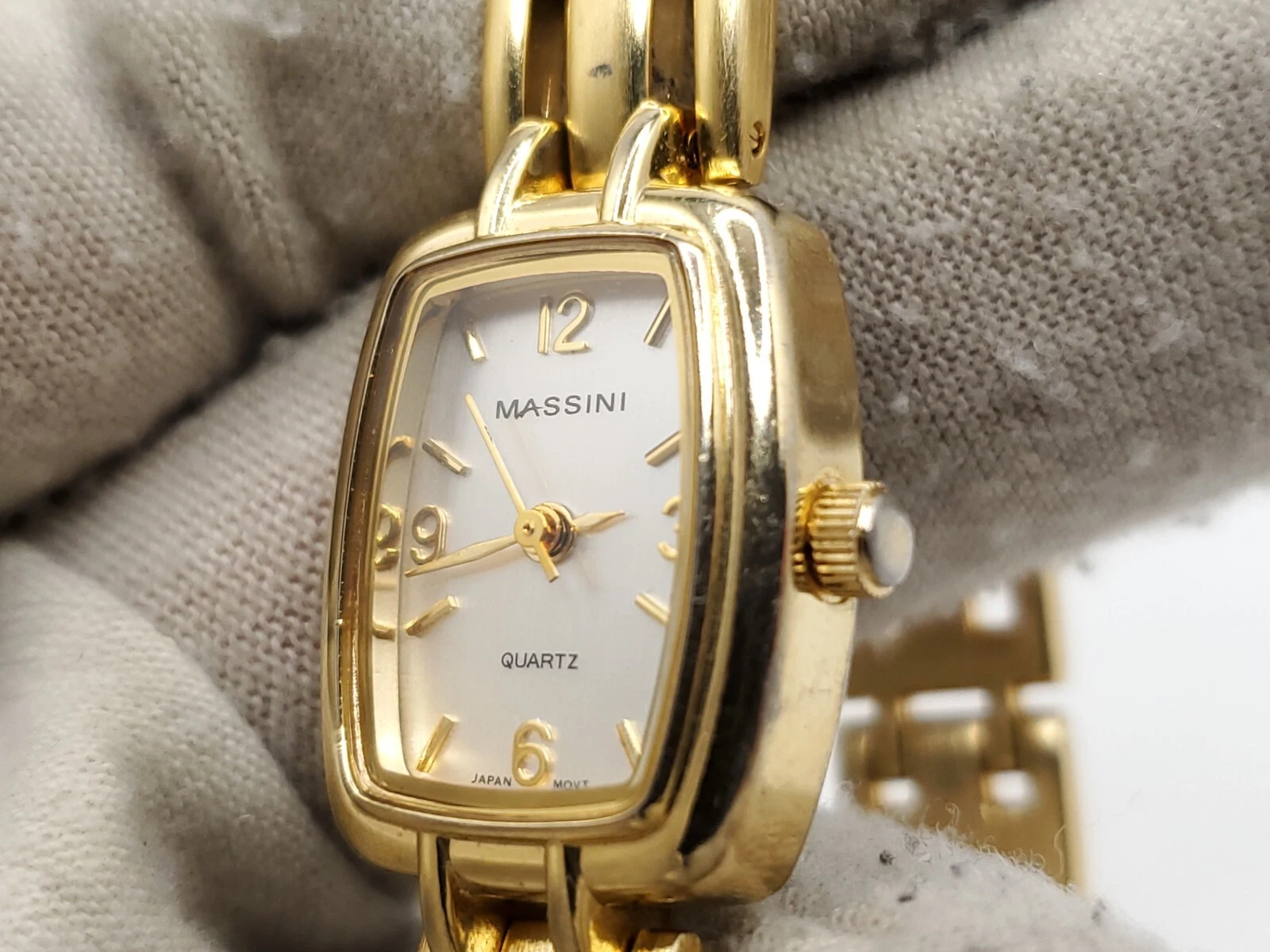 Massini Quartz Watch Women Gold Tone Silver Dial Rectangle 18mm