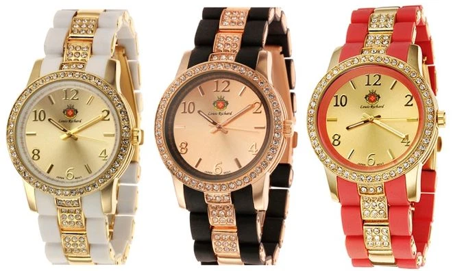 Louis Richard Women's Vida Swarovski Crystal Quartz Watch Pink/Black/White