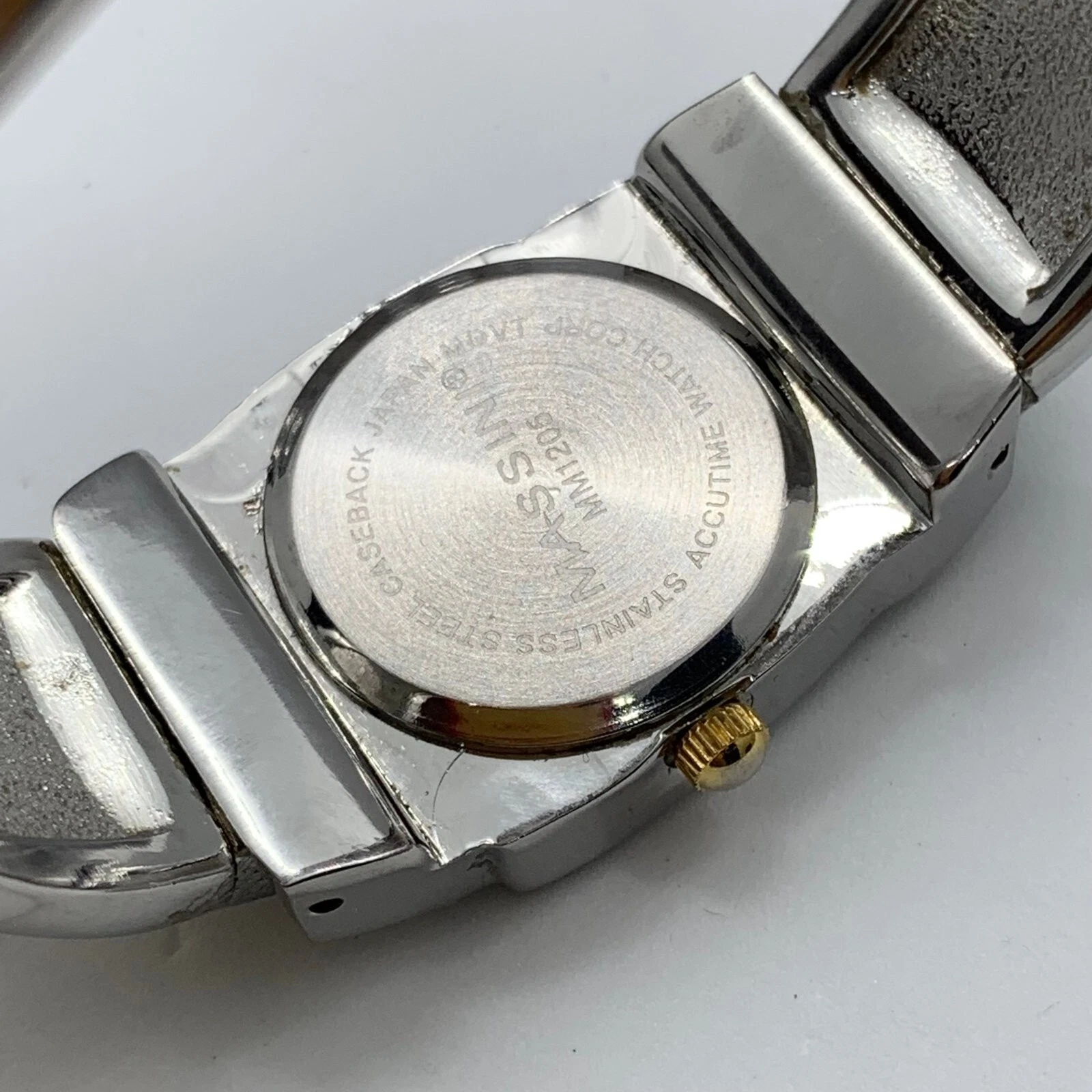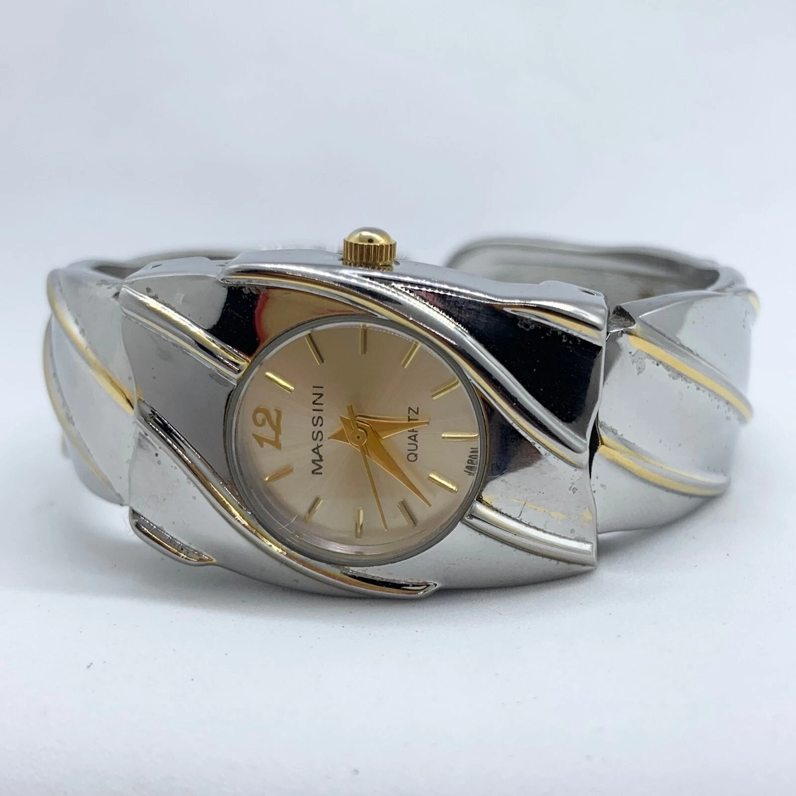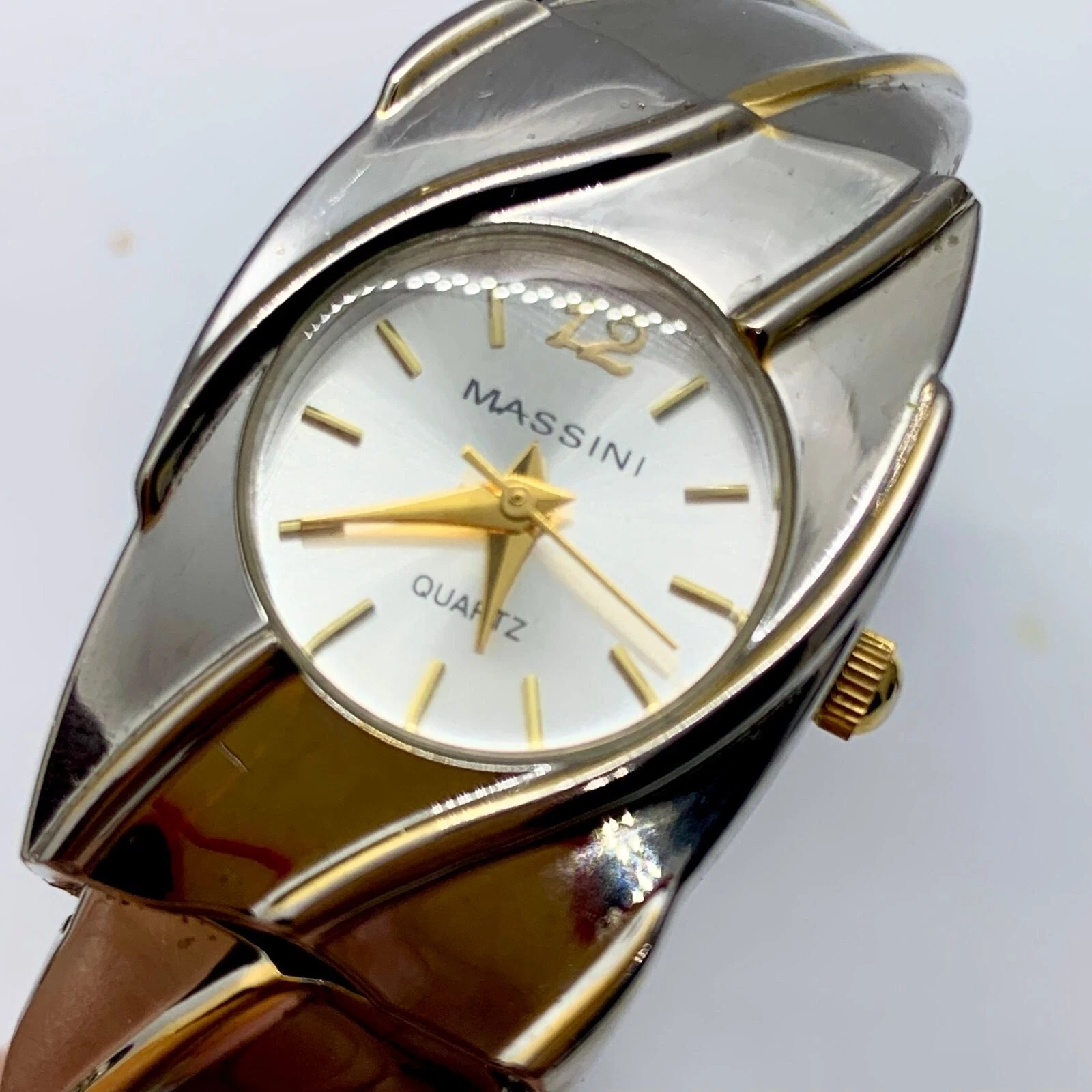 Massini womens Quartz analog watch 22mm cuff bracelet silver gold tone size 6”