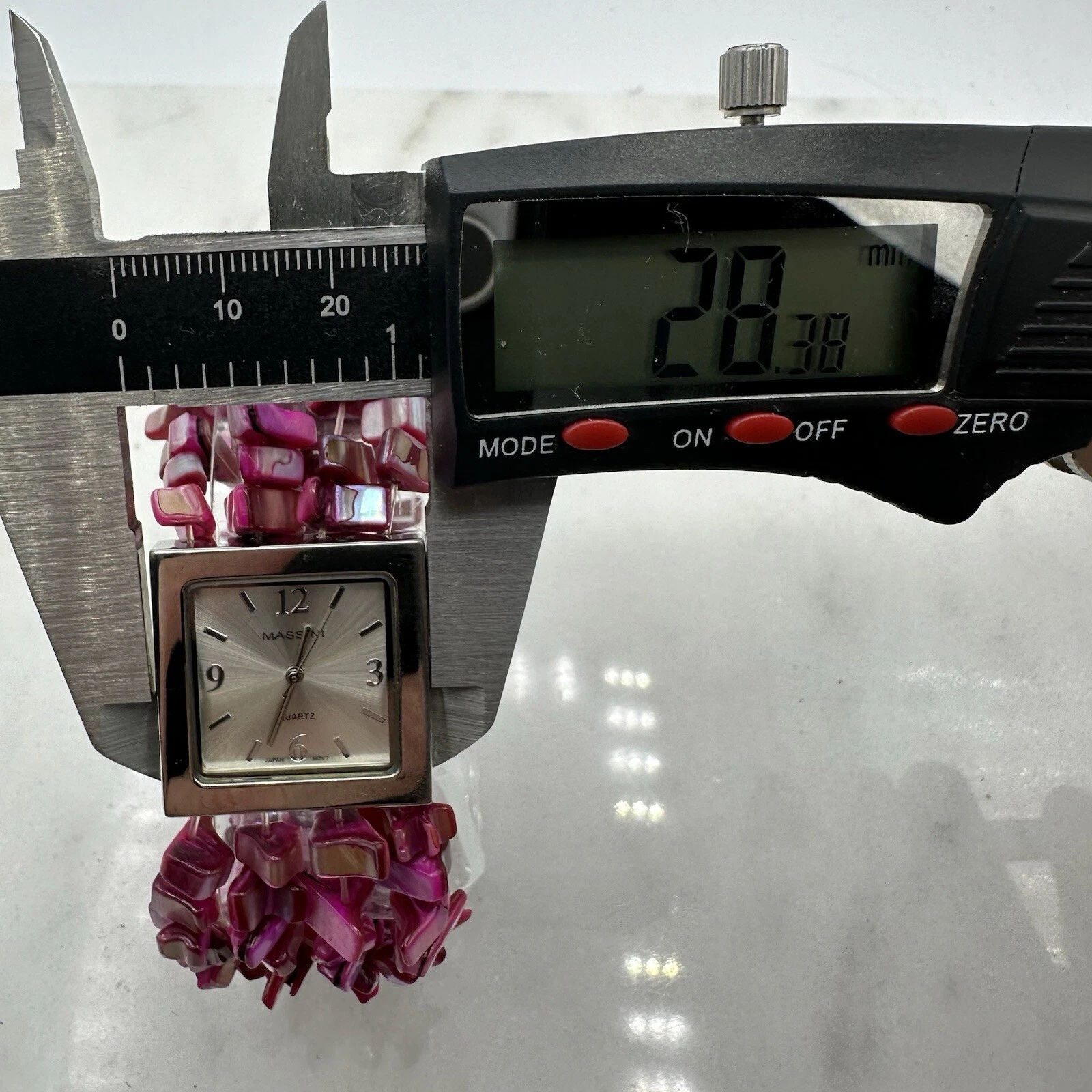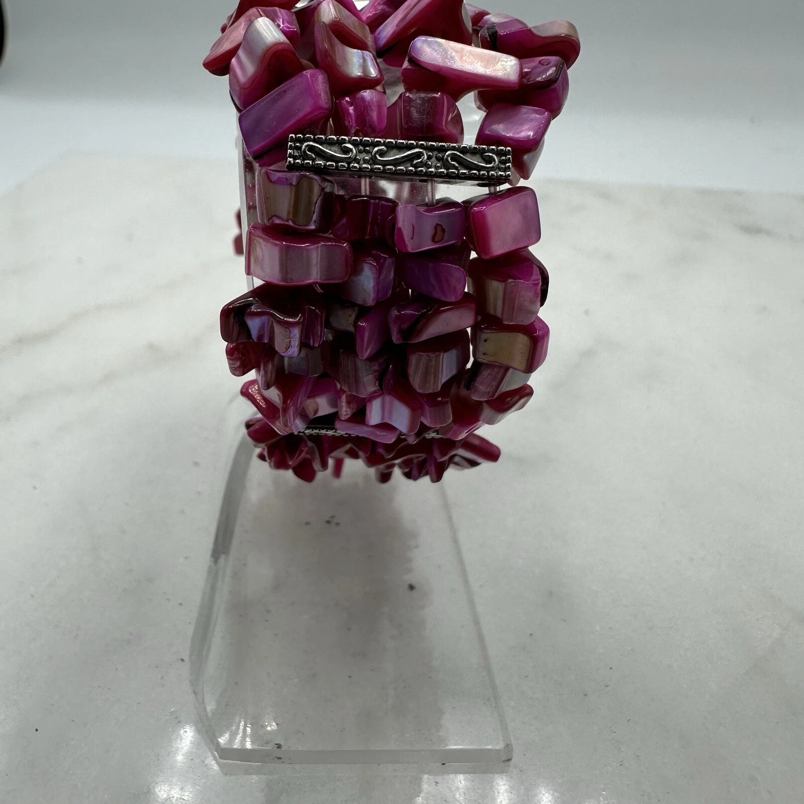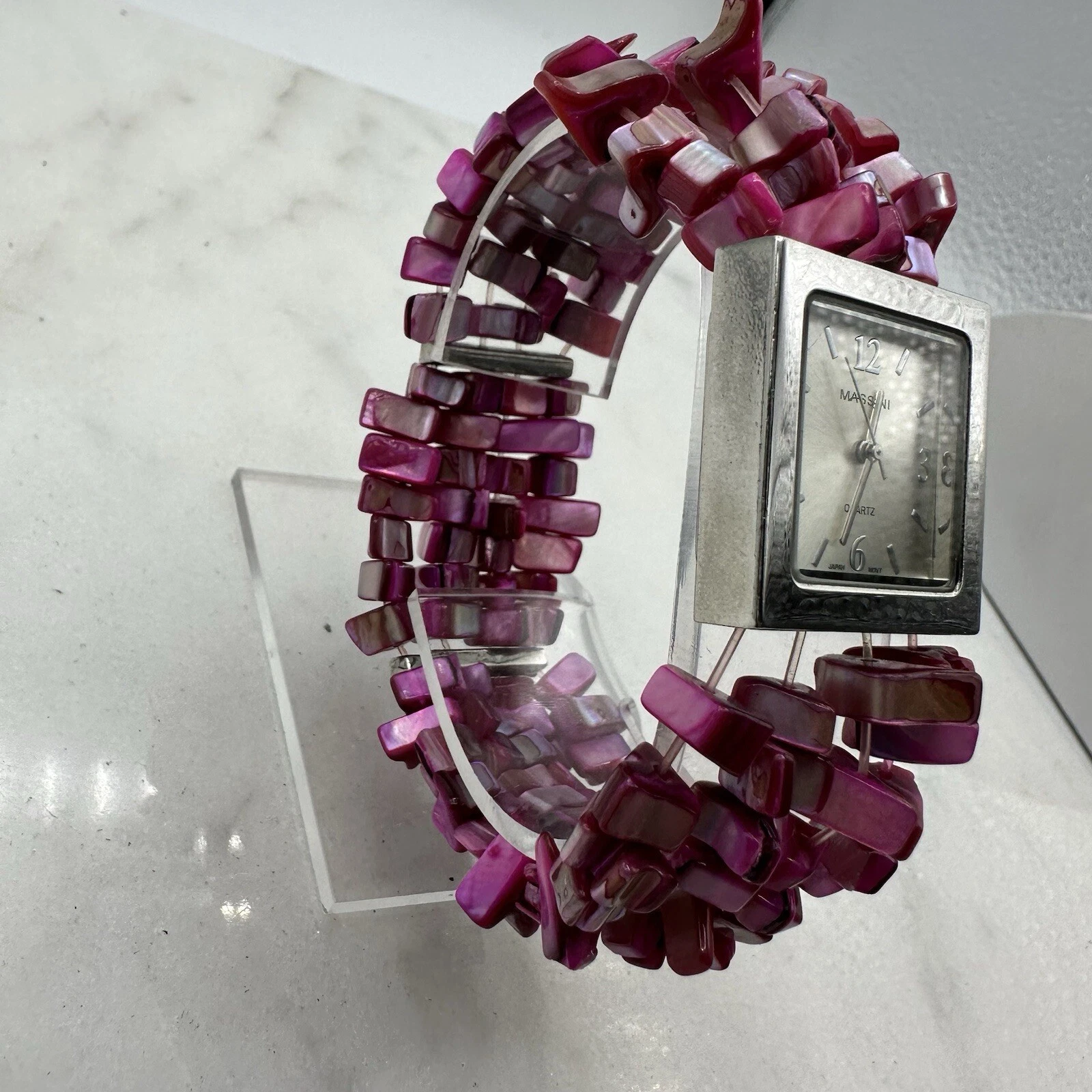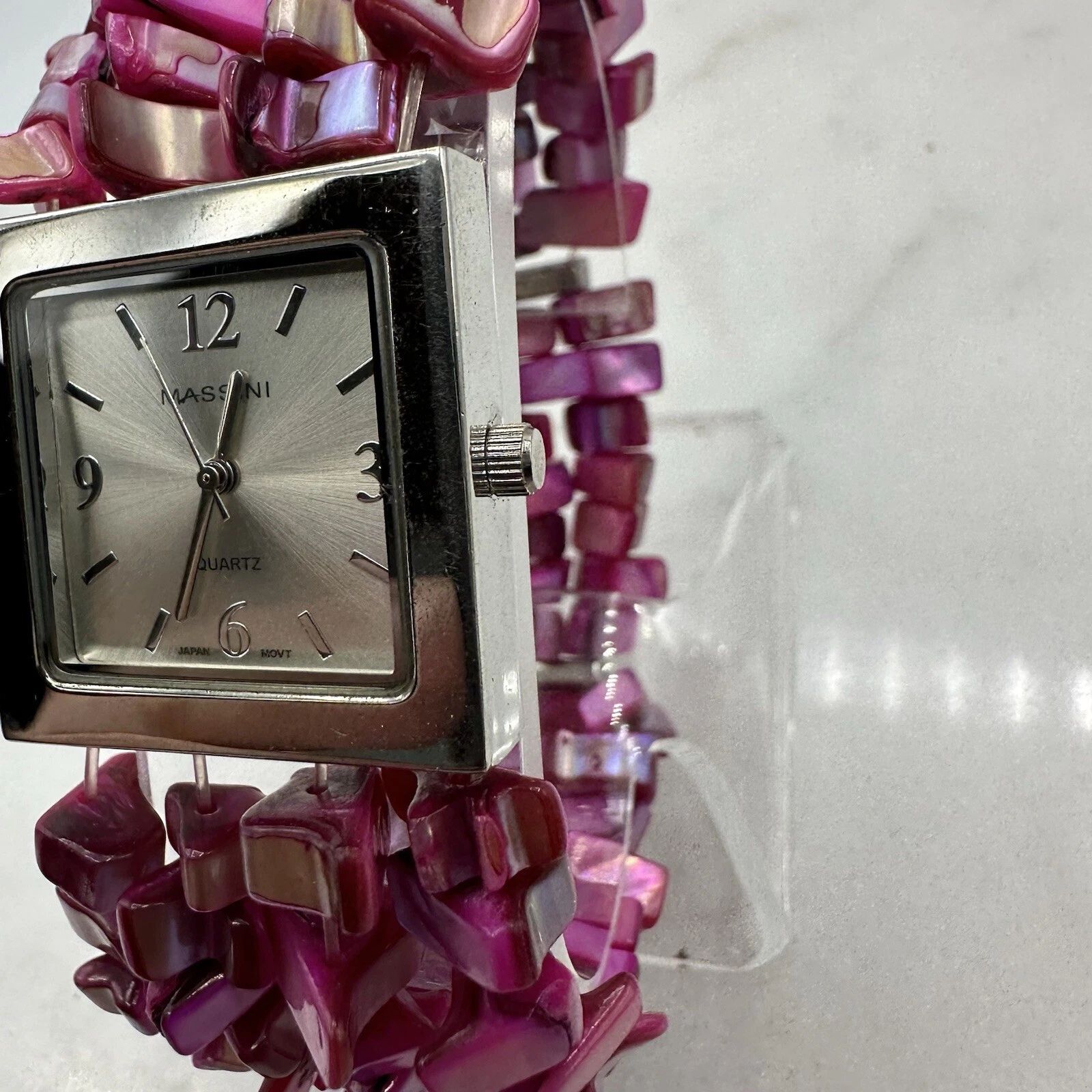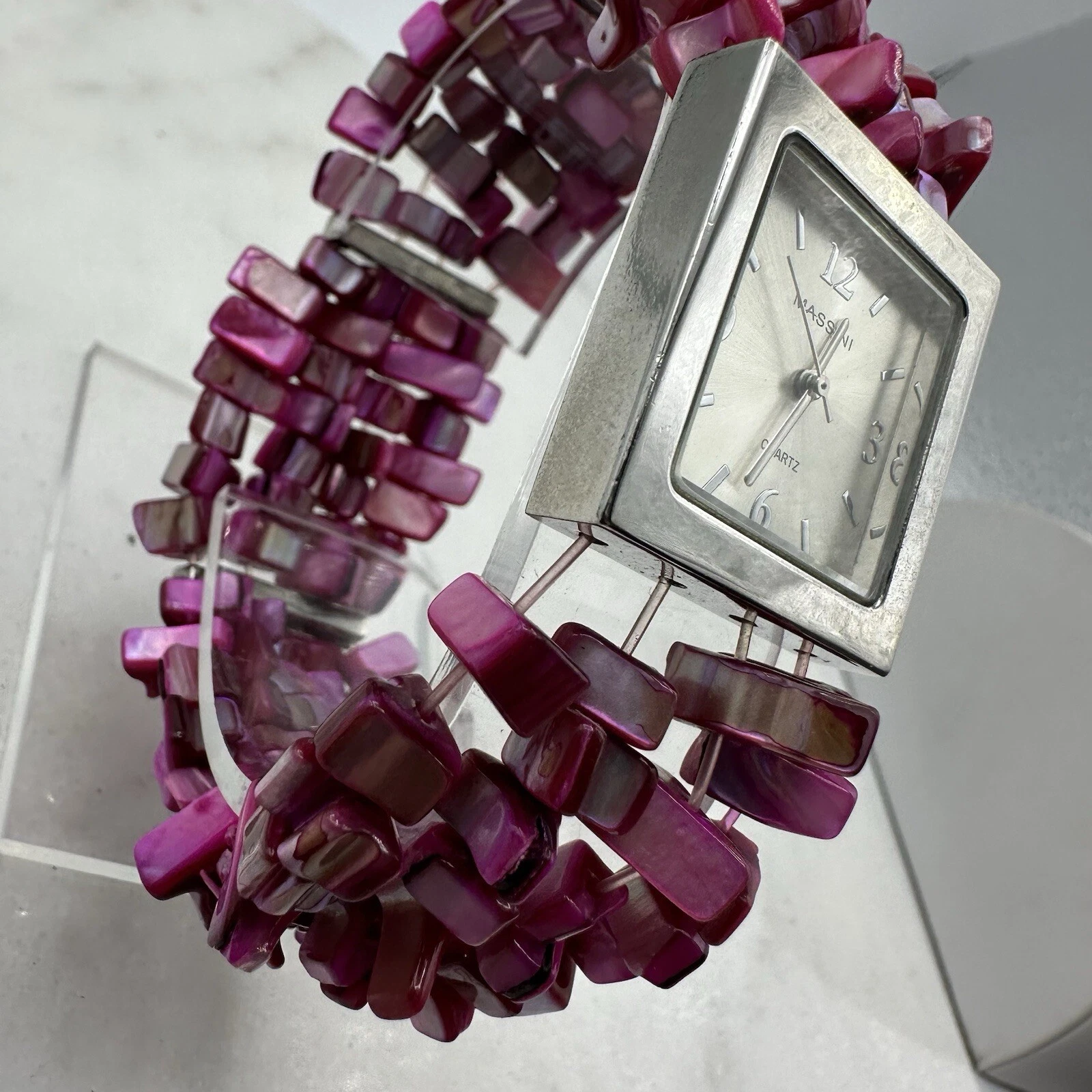 Massini Pink Stranded Bead Women’s 28mm Watch, Silver Tone, New Battery, Sz 7”