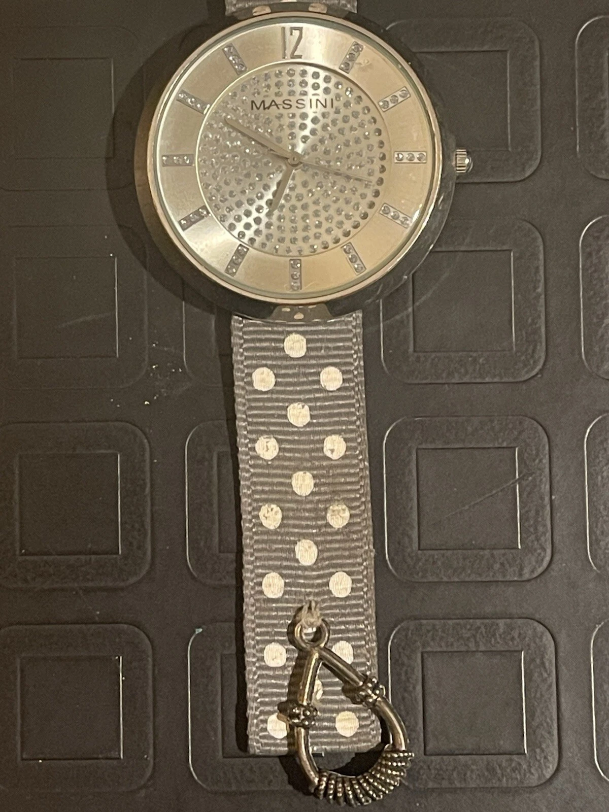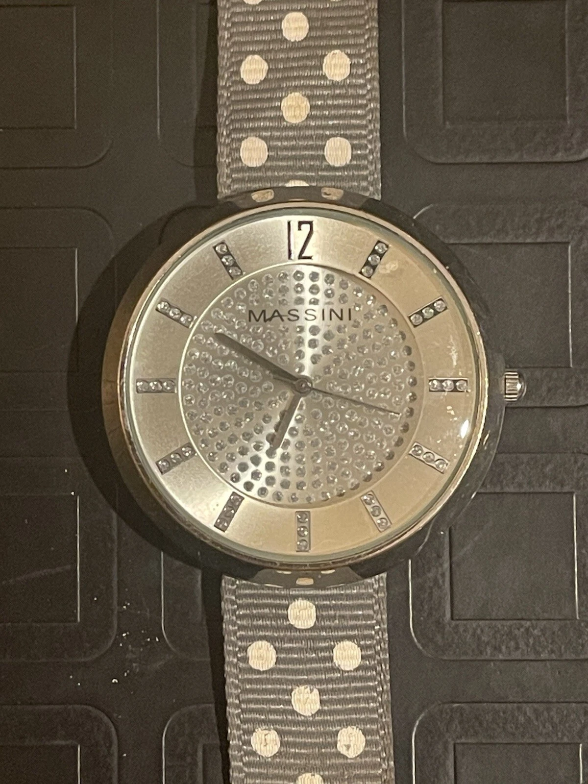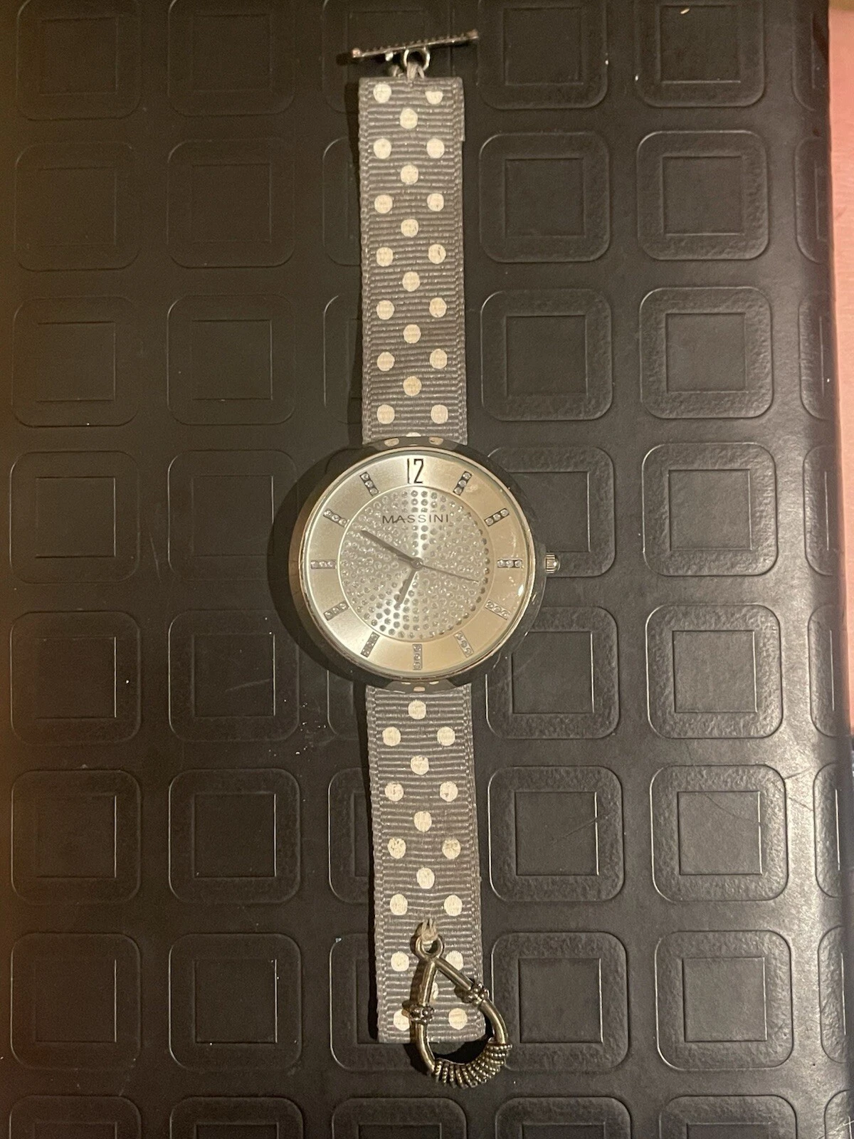 Massini Women’s Grey Fabric Band Crystal Accent Watch