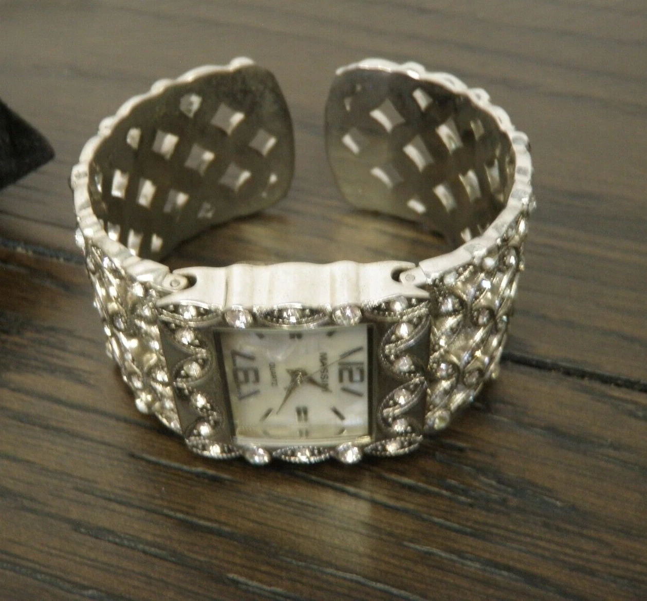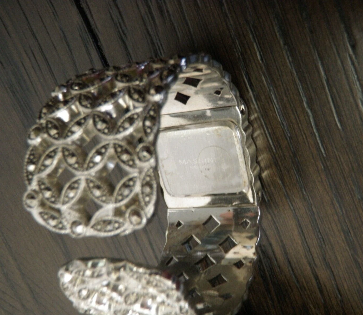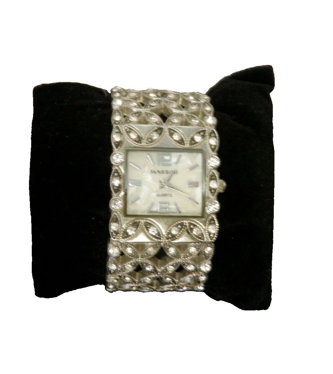 Massini Women's Vintage Watch Silver-Tone Tiny Stones Embossed Bracelet