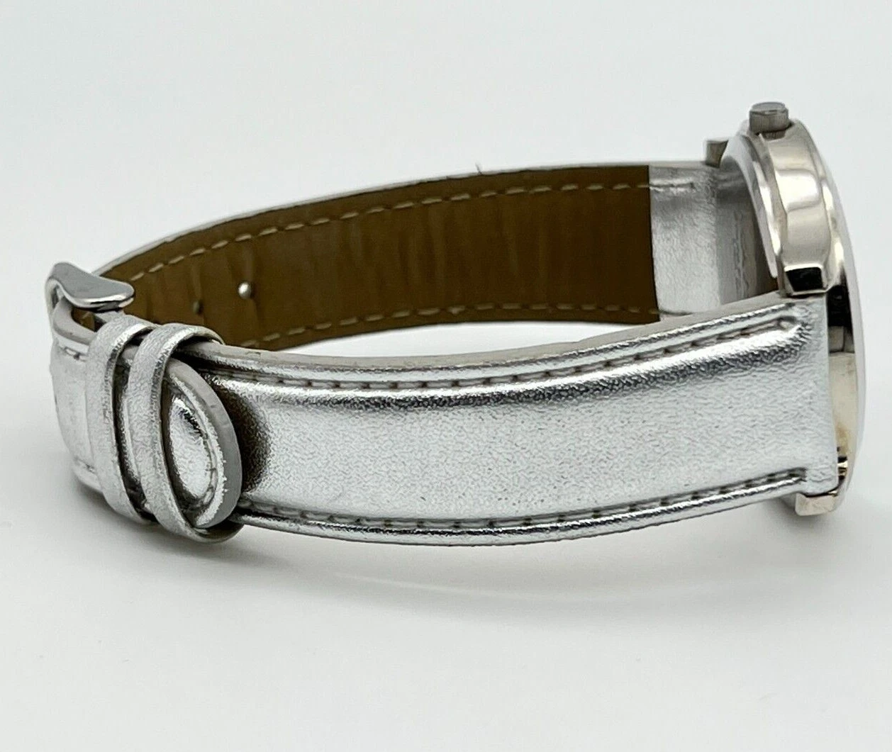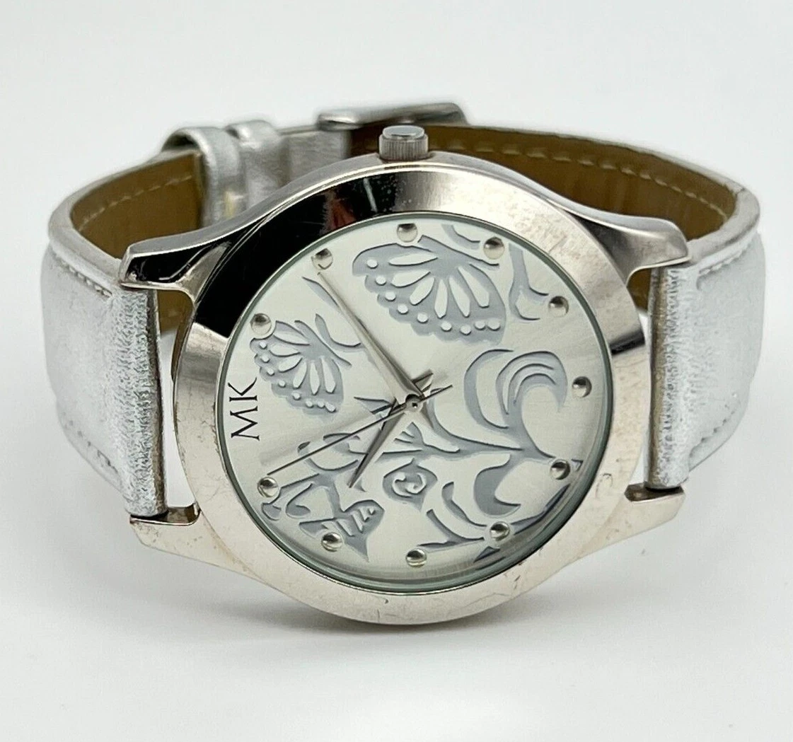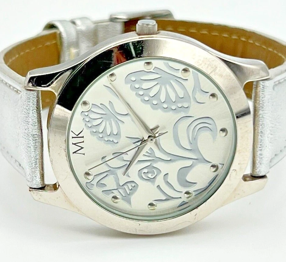 Women's MARY KAY Silver Tone Floral/Butterfly Dial Watch, Leather Band, 36mm
