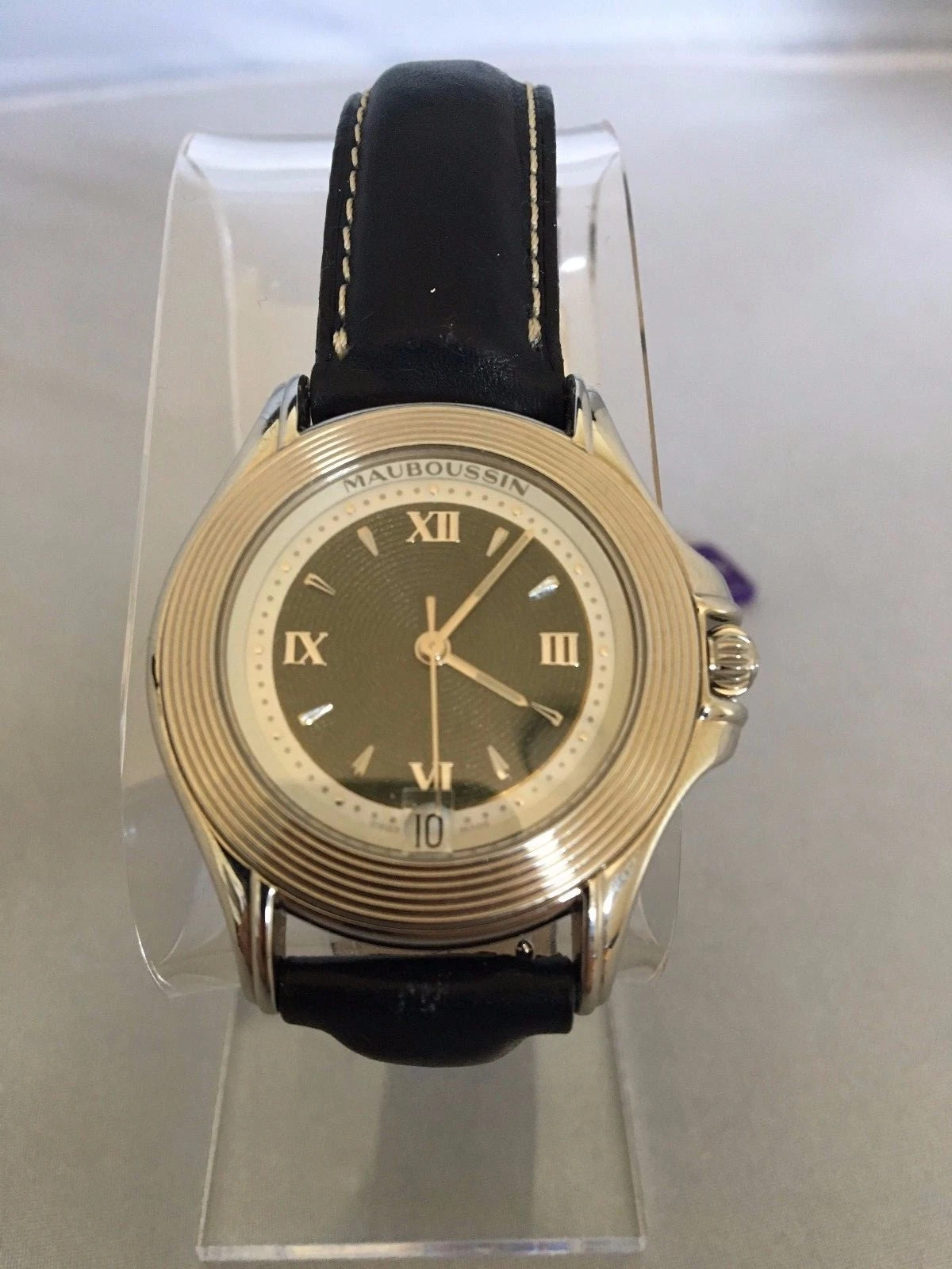 Rare Mauboussin Navy Blue Leather Automatic Men's Watch With Date