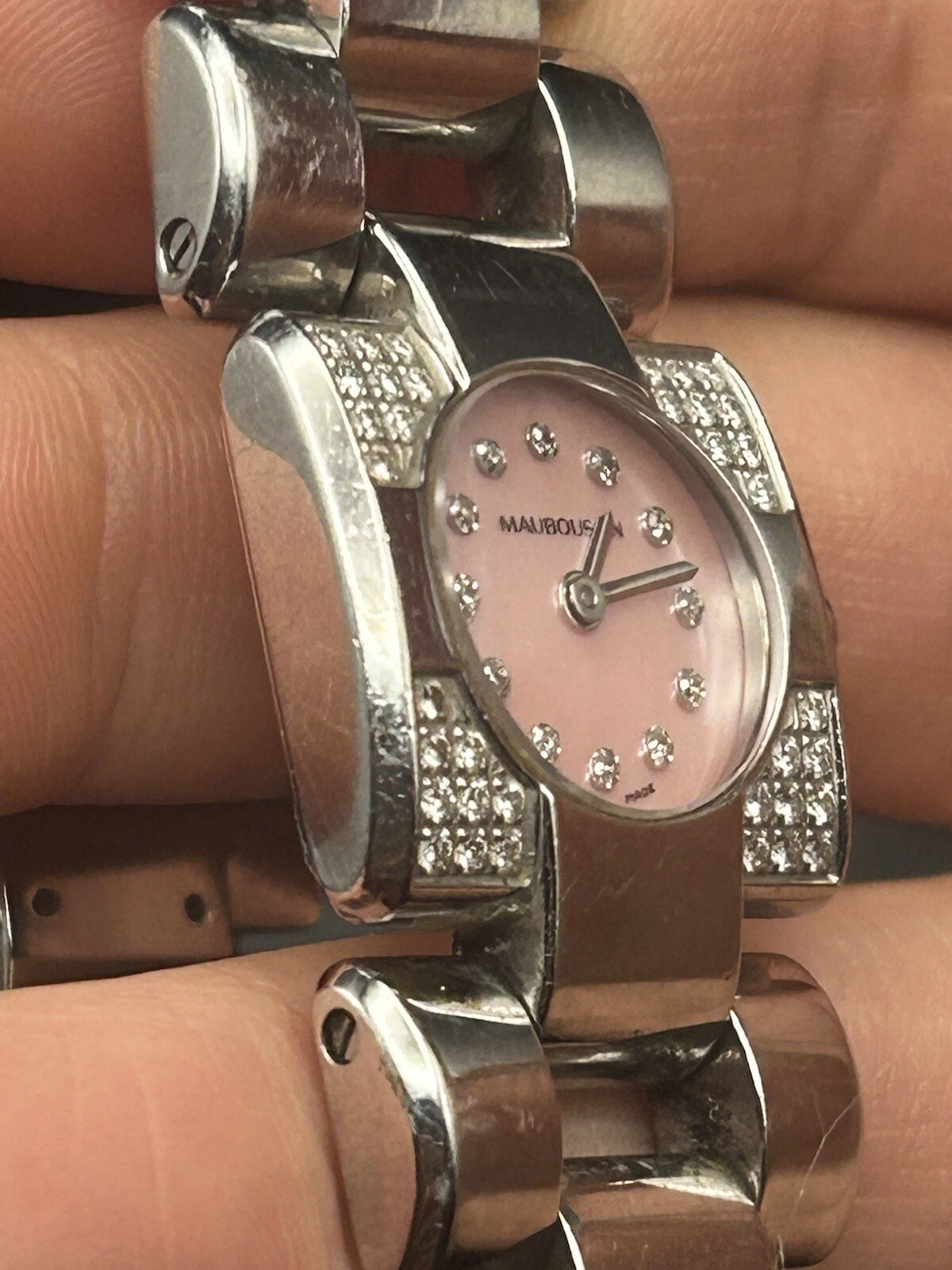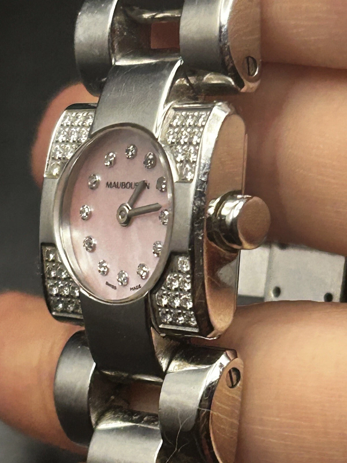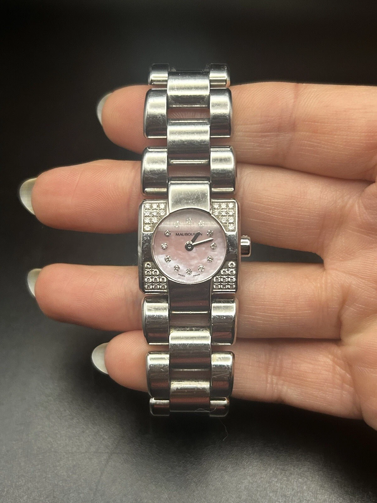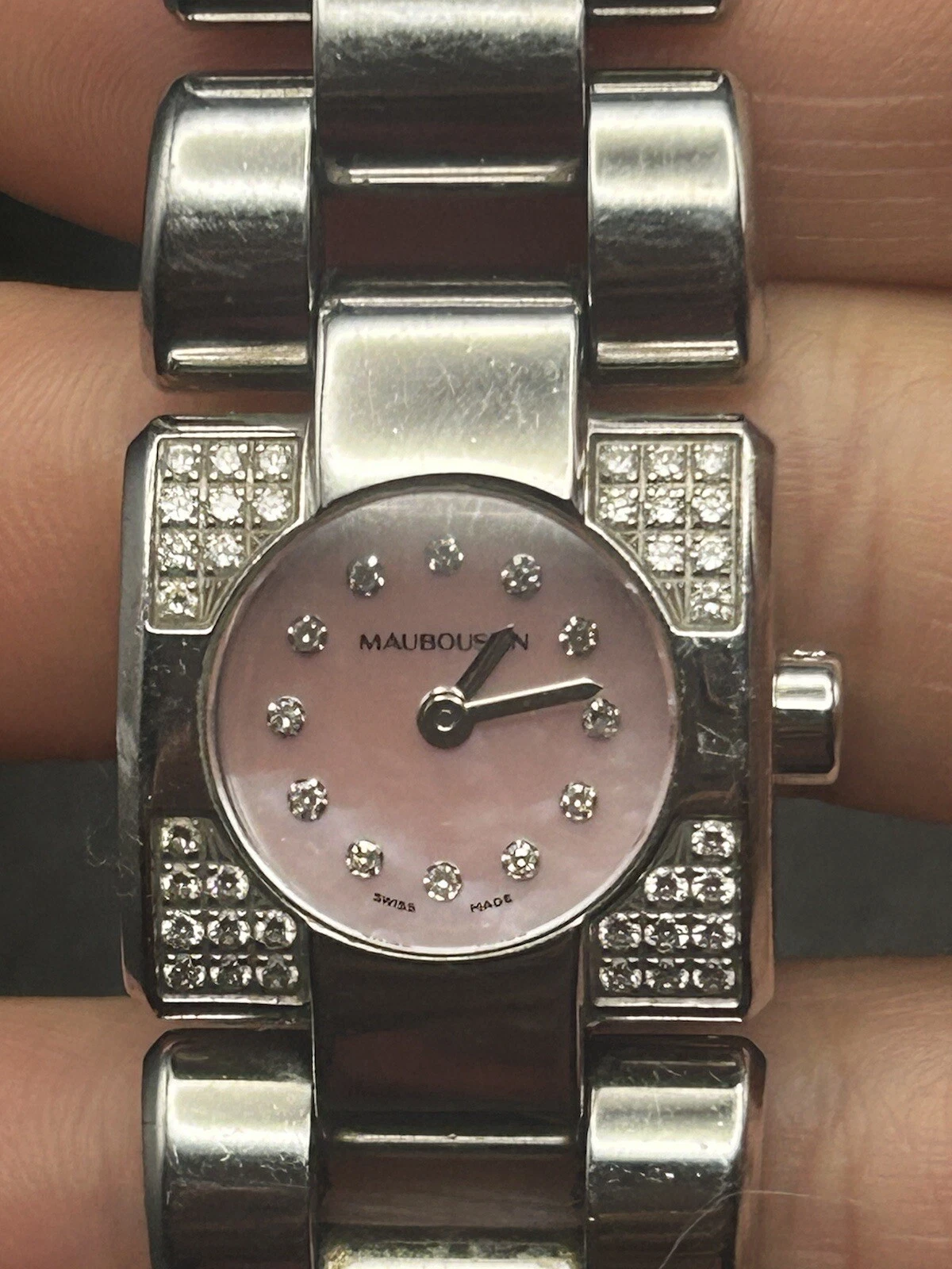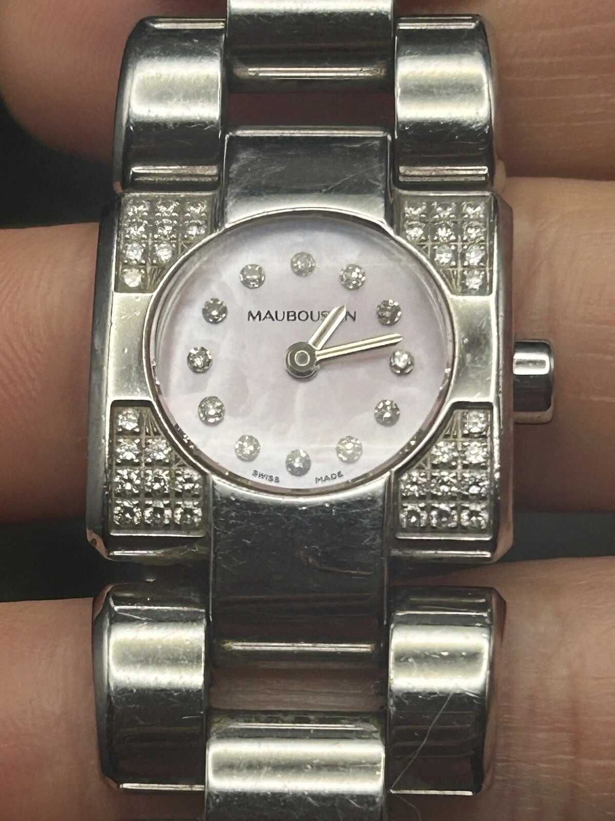 MAUBOUSSIN Mini Carre Lady's Stainless Steel Diamond Mother Of Pearl Wrist Watch