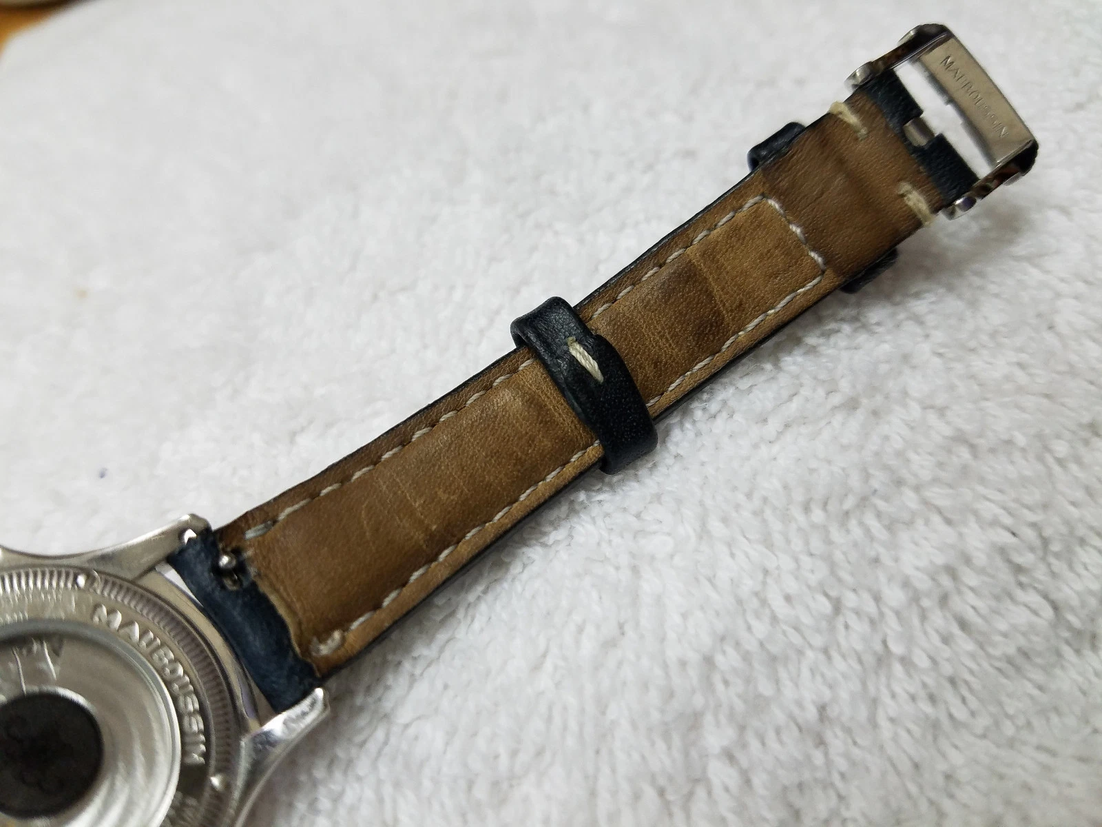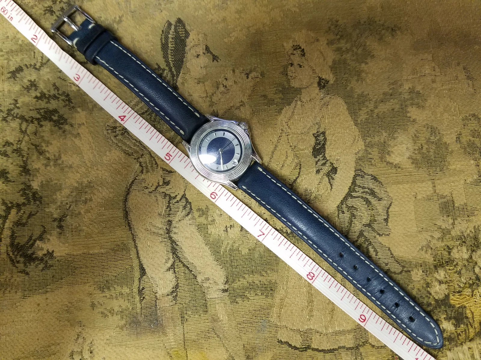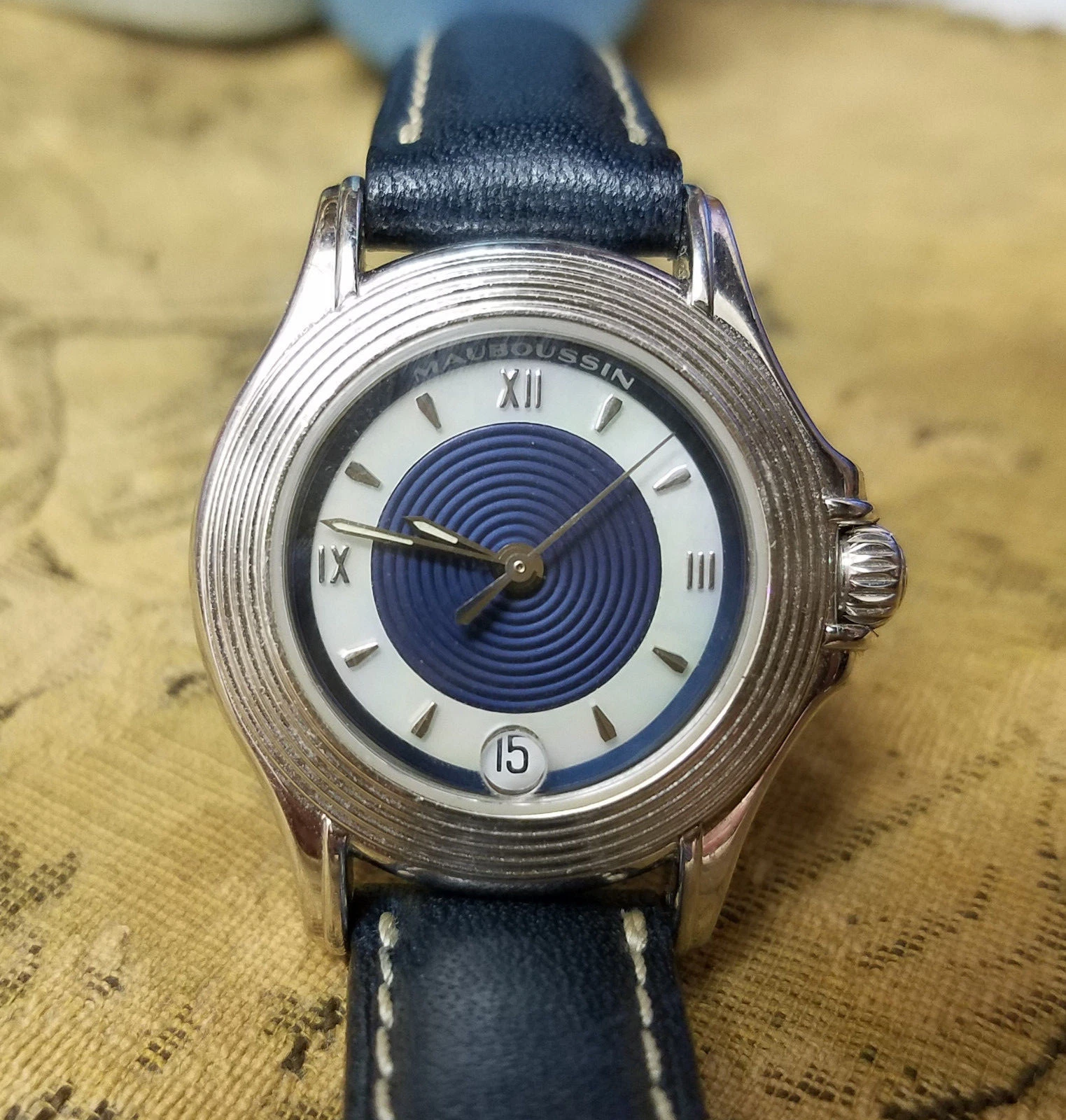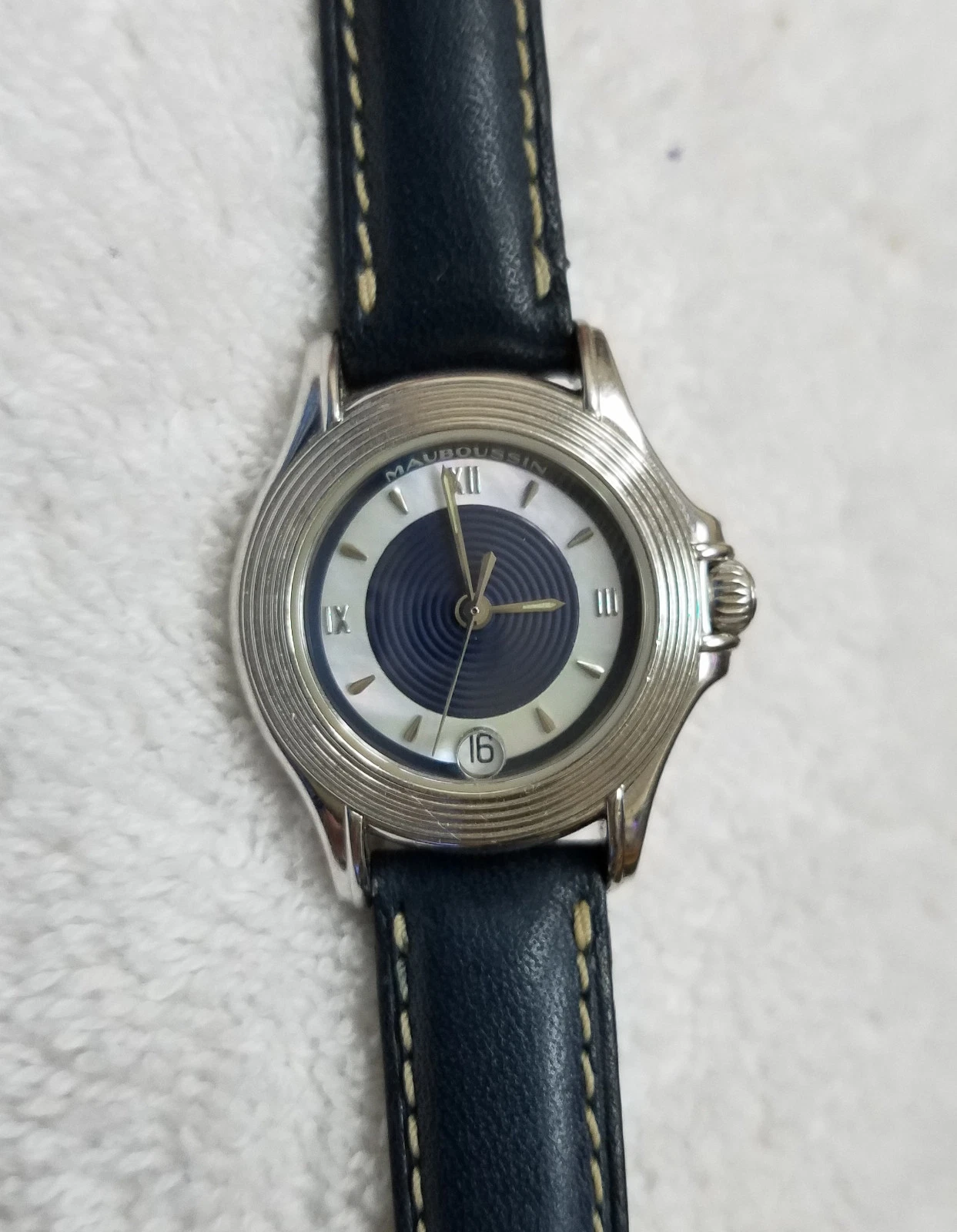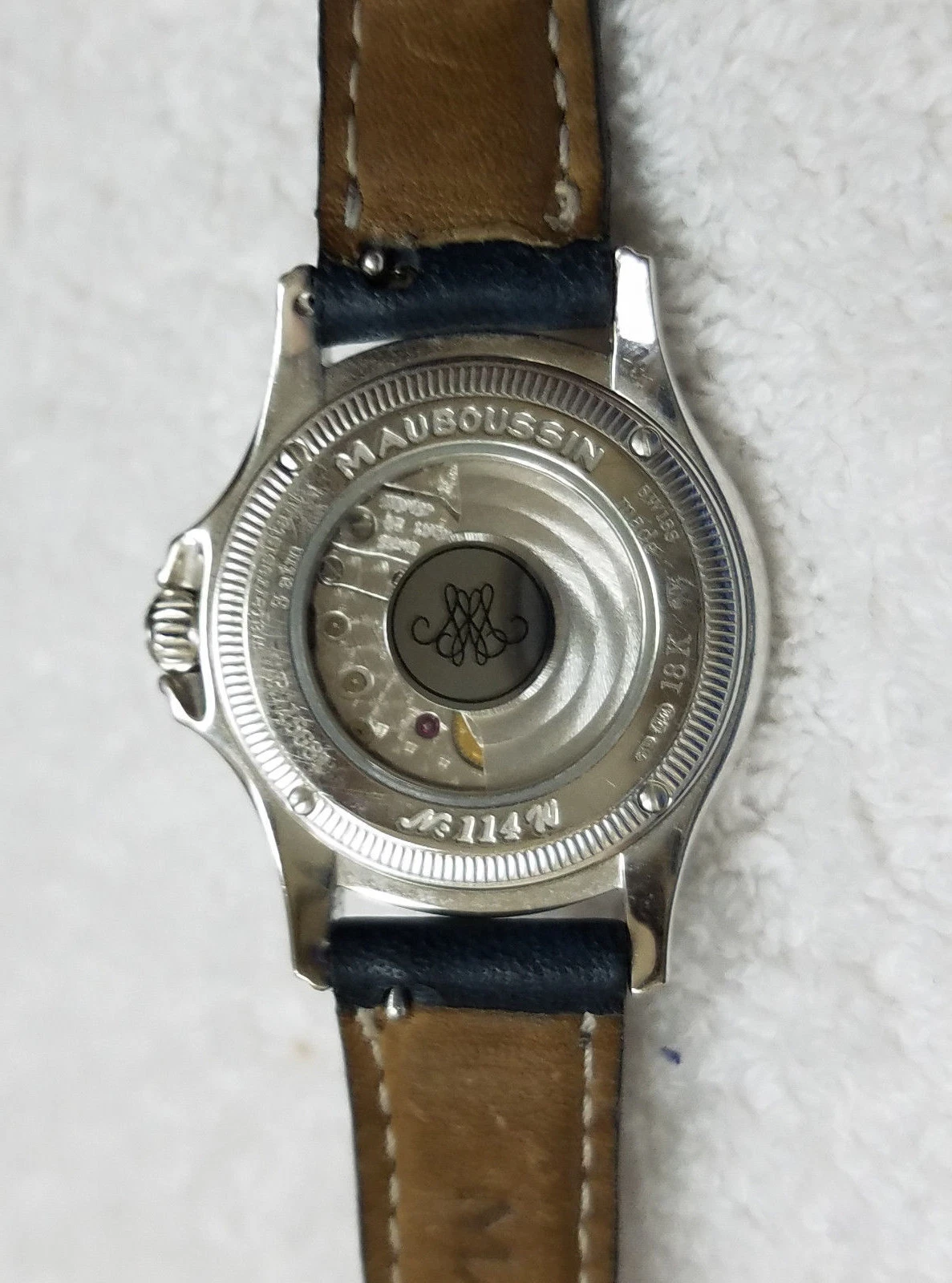 RARE! Mauboussin Automatic 18K Solid White Gold Wrist Watch, Blue Leather Band
