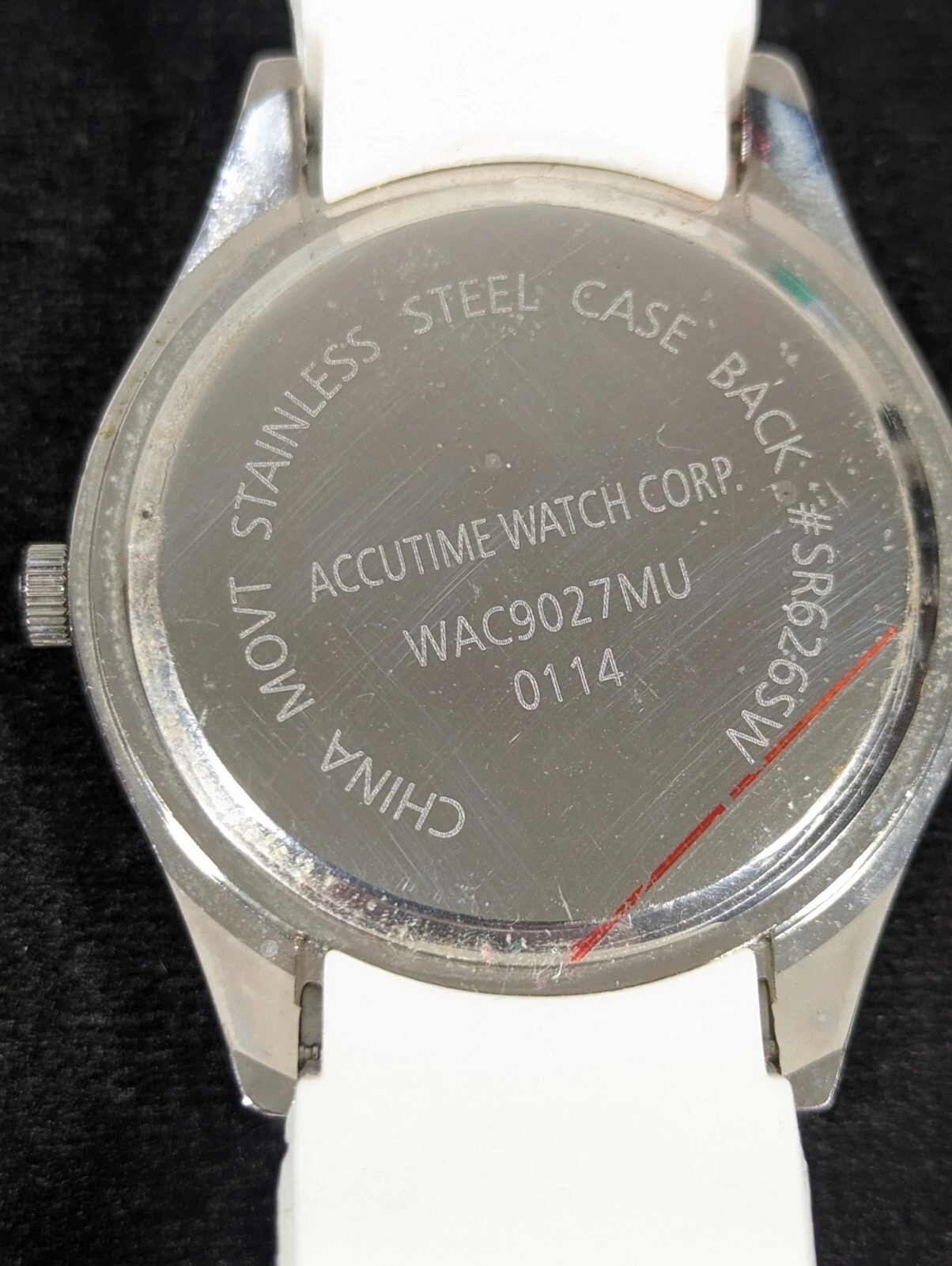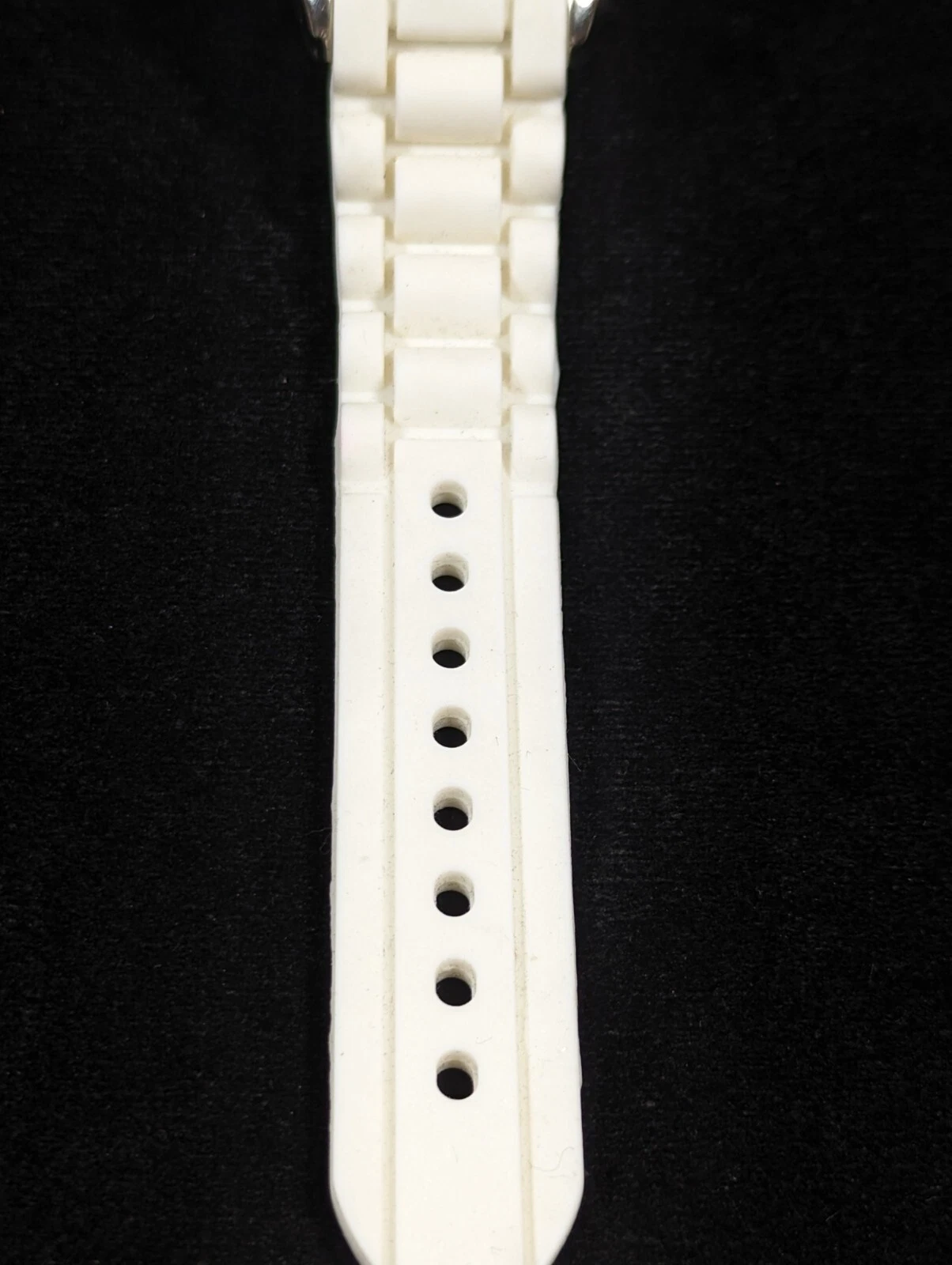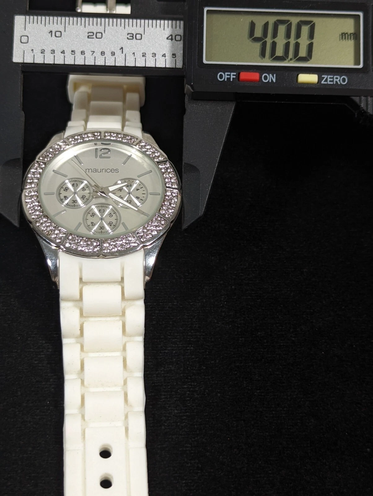 Maurices Womans Silver Tone Dial Crystal Accent White Silicone Band Watch 8.5 in