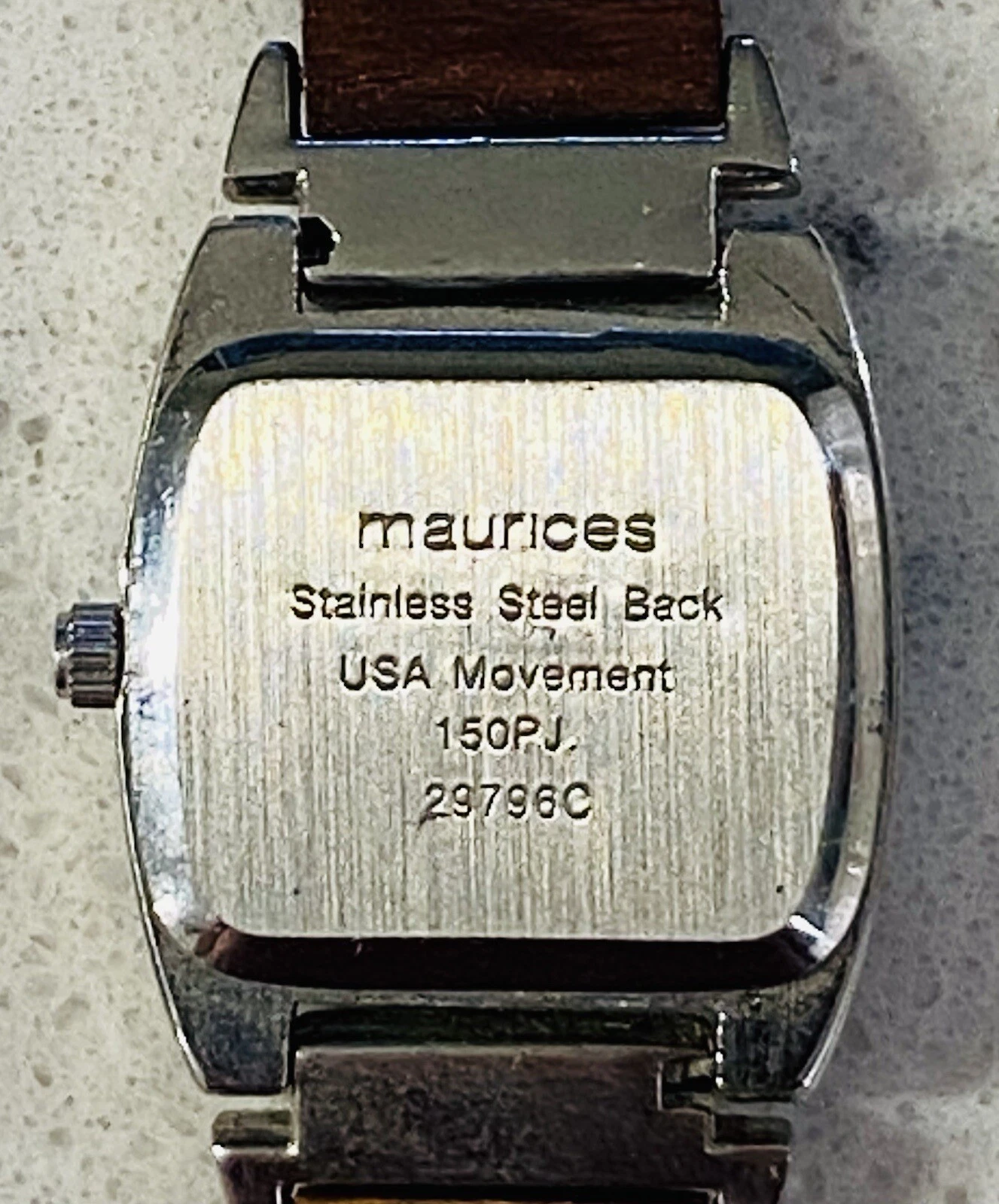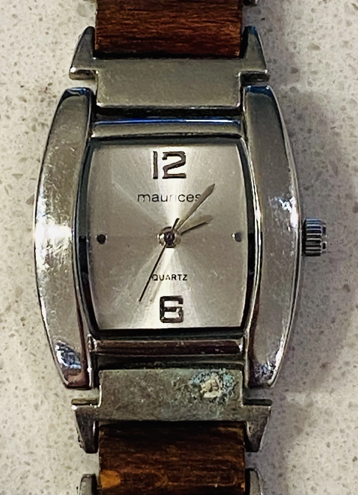 Maurices Modernist Styled Women's Silver Tone Quartz Watch Wood Accents