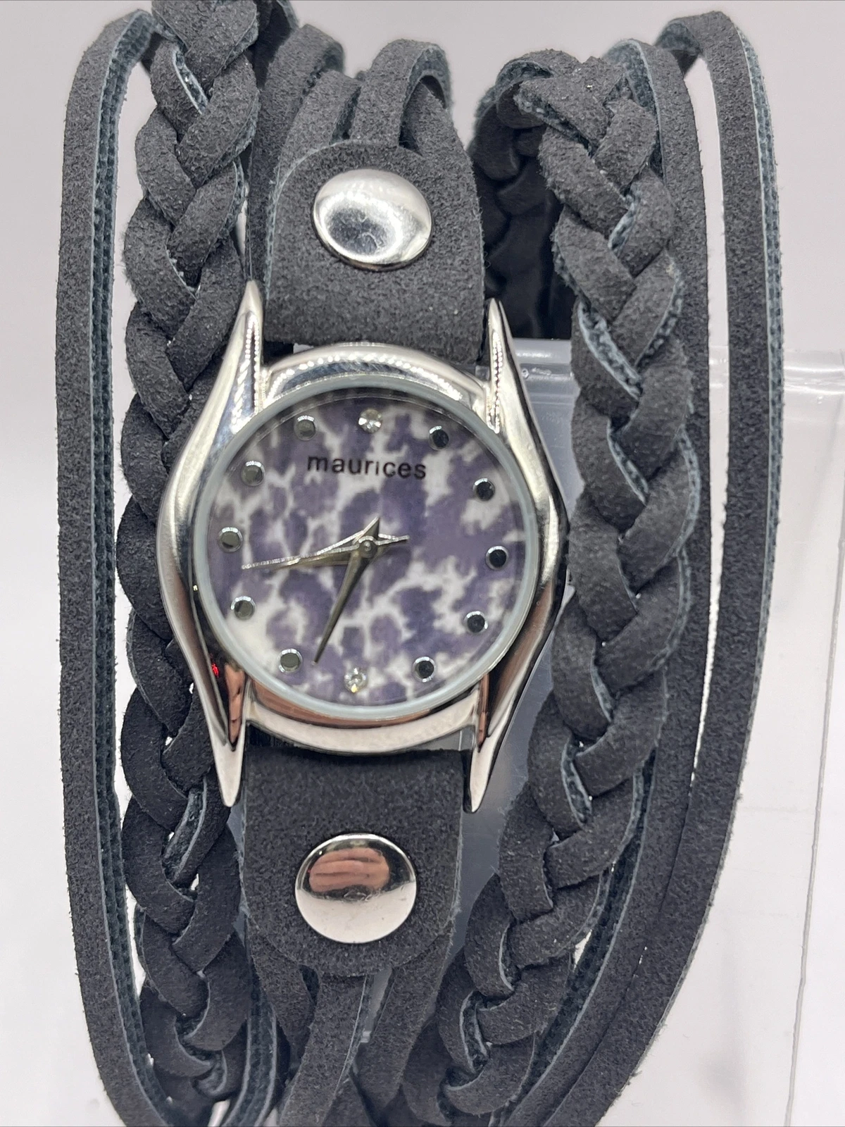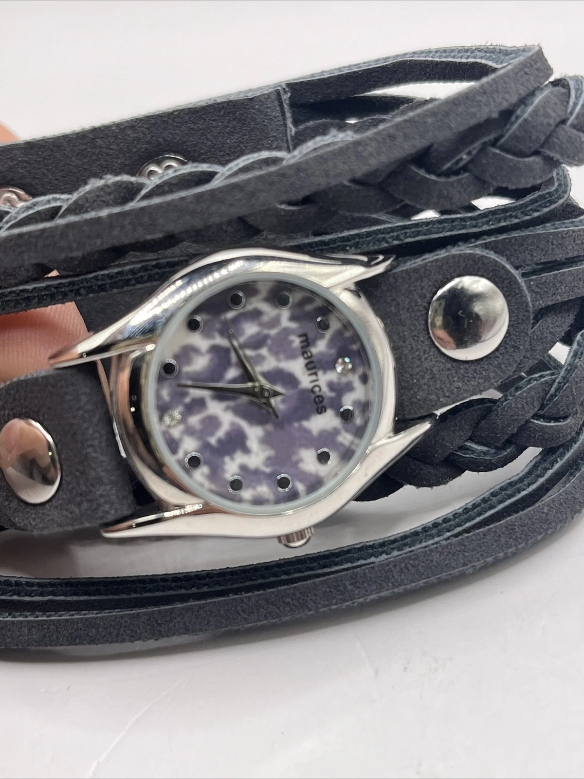 Maurices Women's Quartz Watch Faux Suede Snap Bracelet- New Battery
