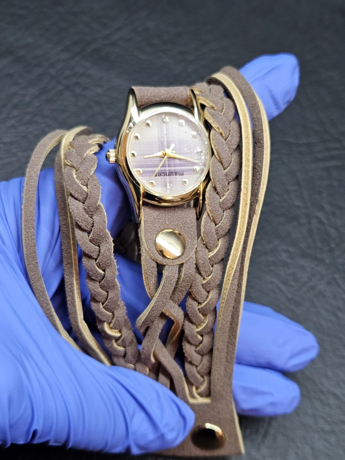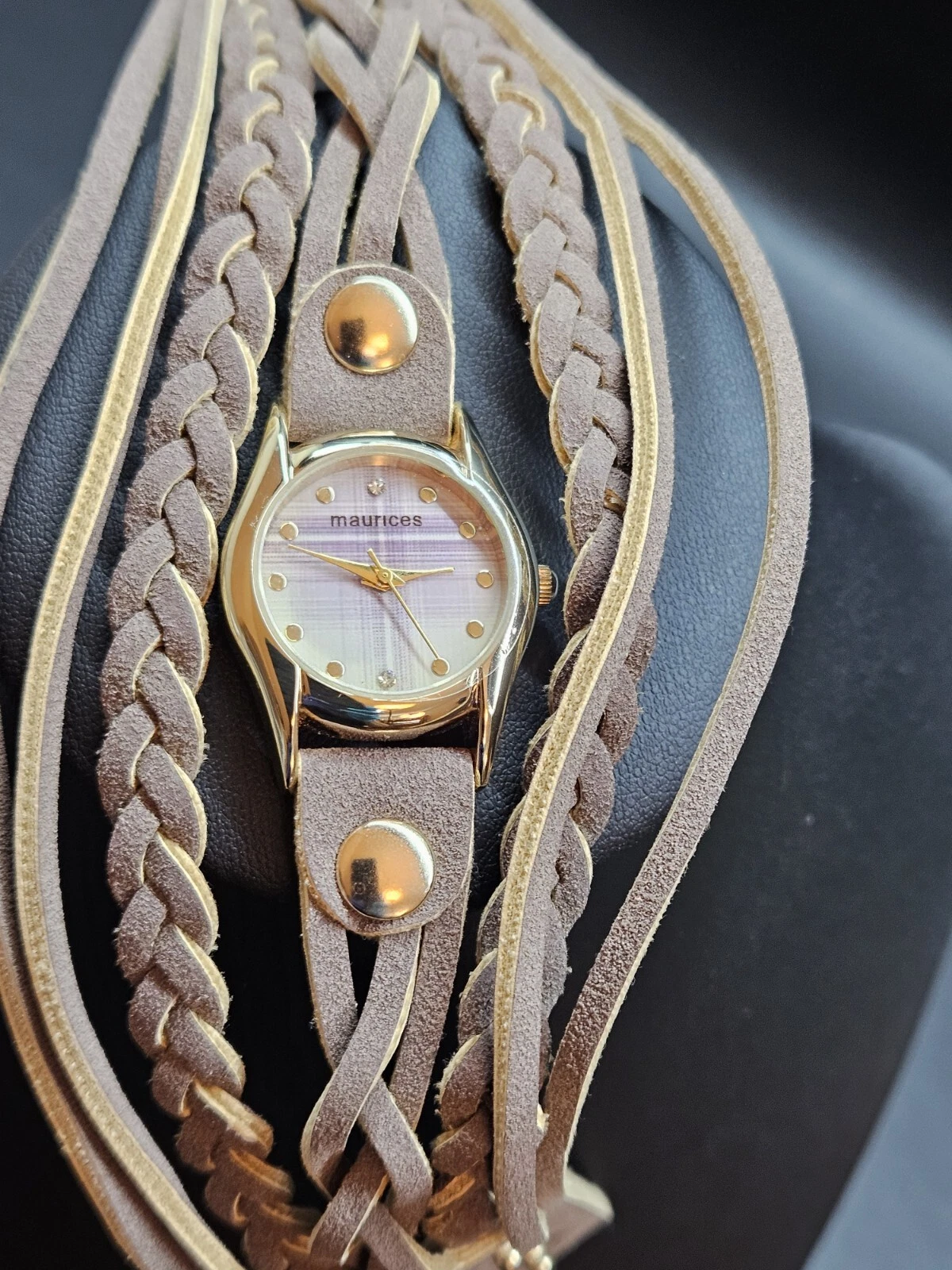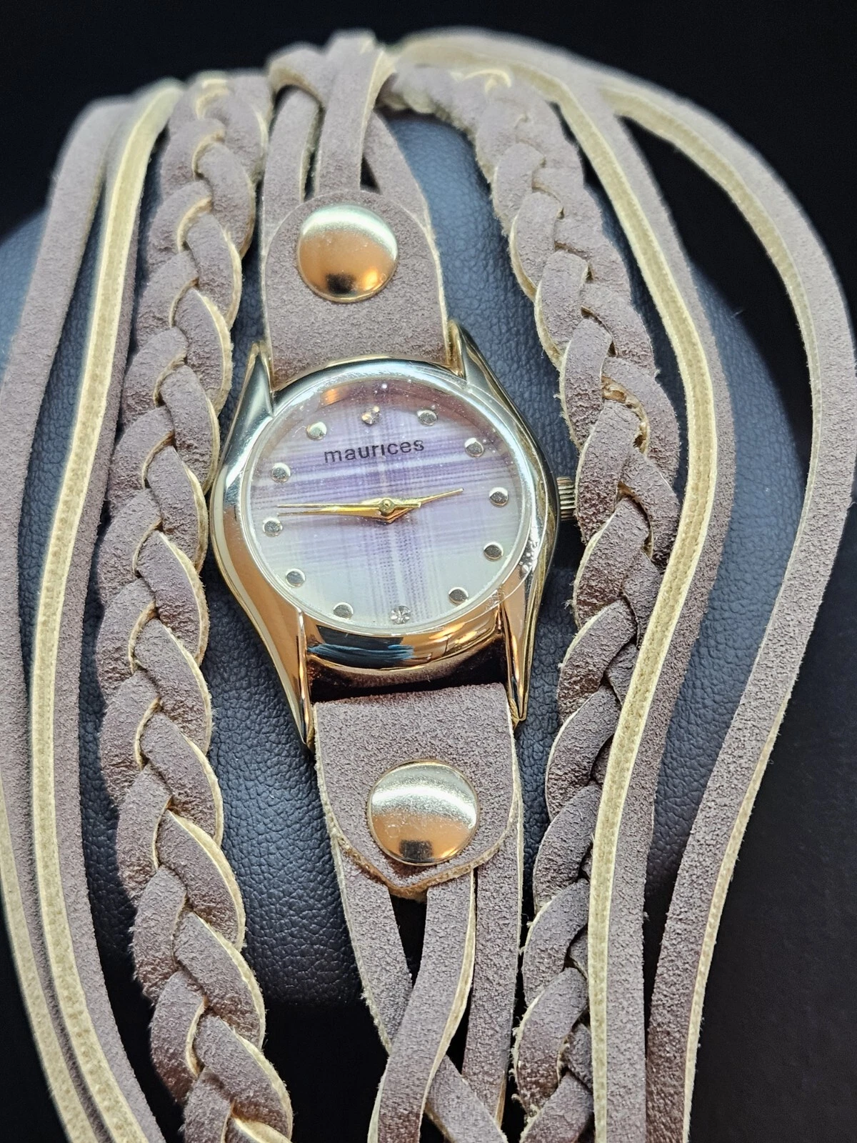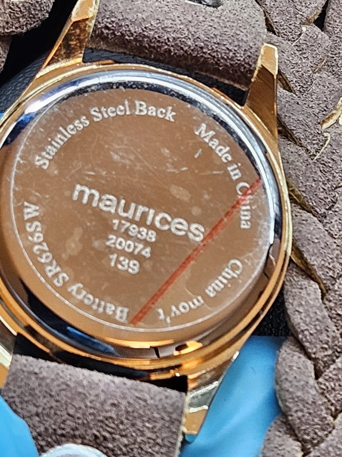 New! Maurices Gold Tone Leather Strand Bracelet Watch, It Works Great!!